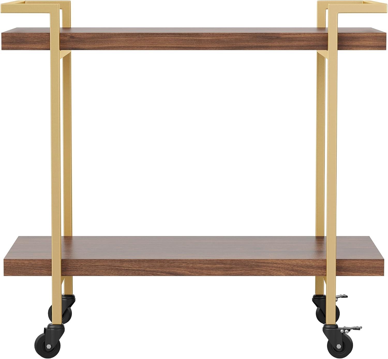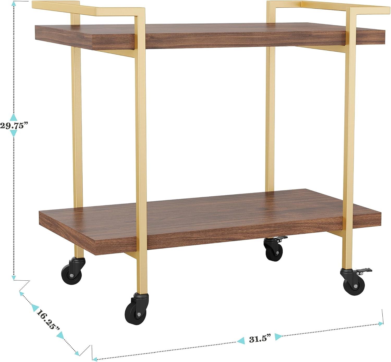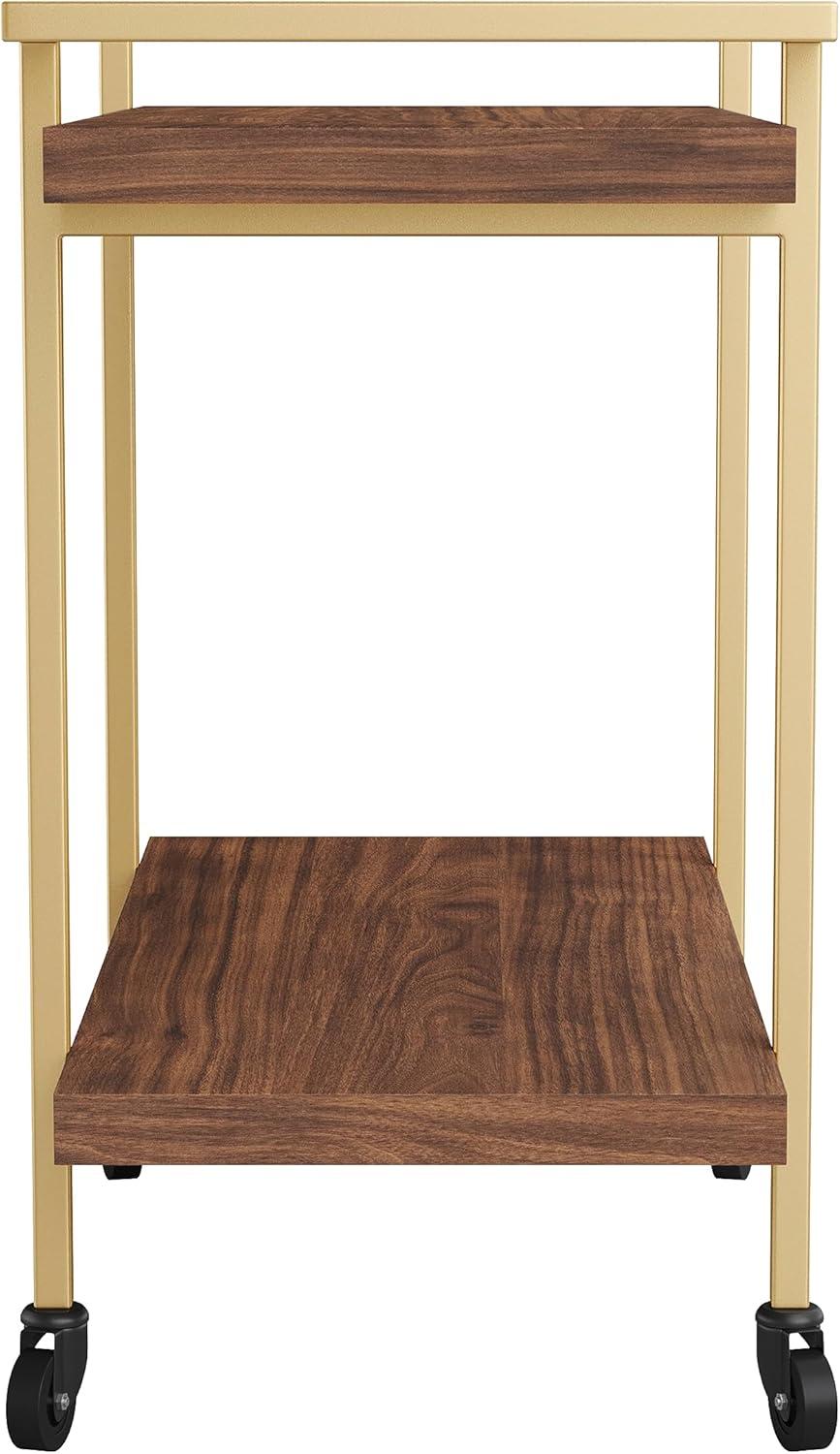 Martha Stewart Liam 2-Tier Mobile Office Storage and Printer Cart in Gray with Brushed Nickel Frame(Walnut/Polished Brass Frame)