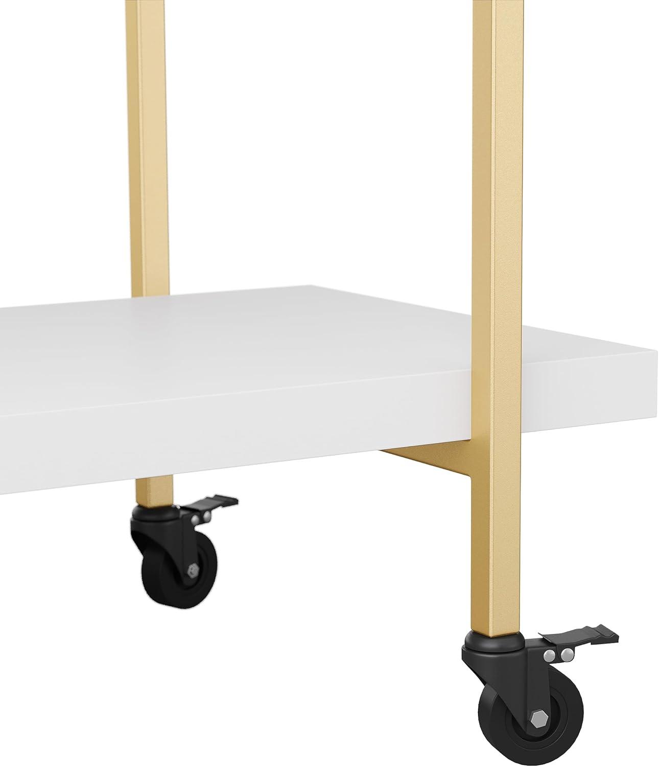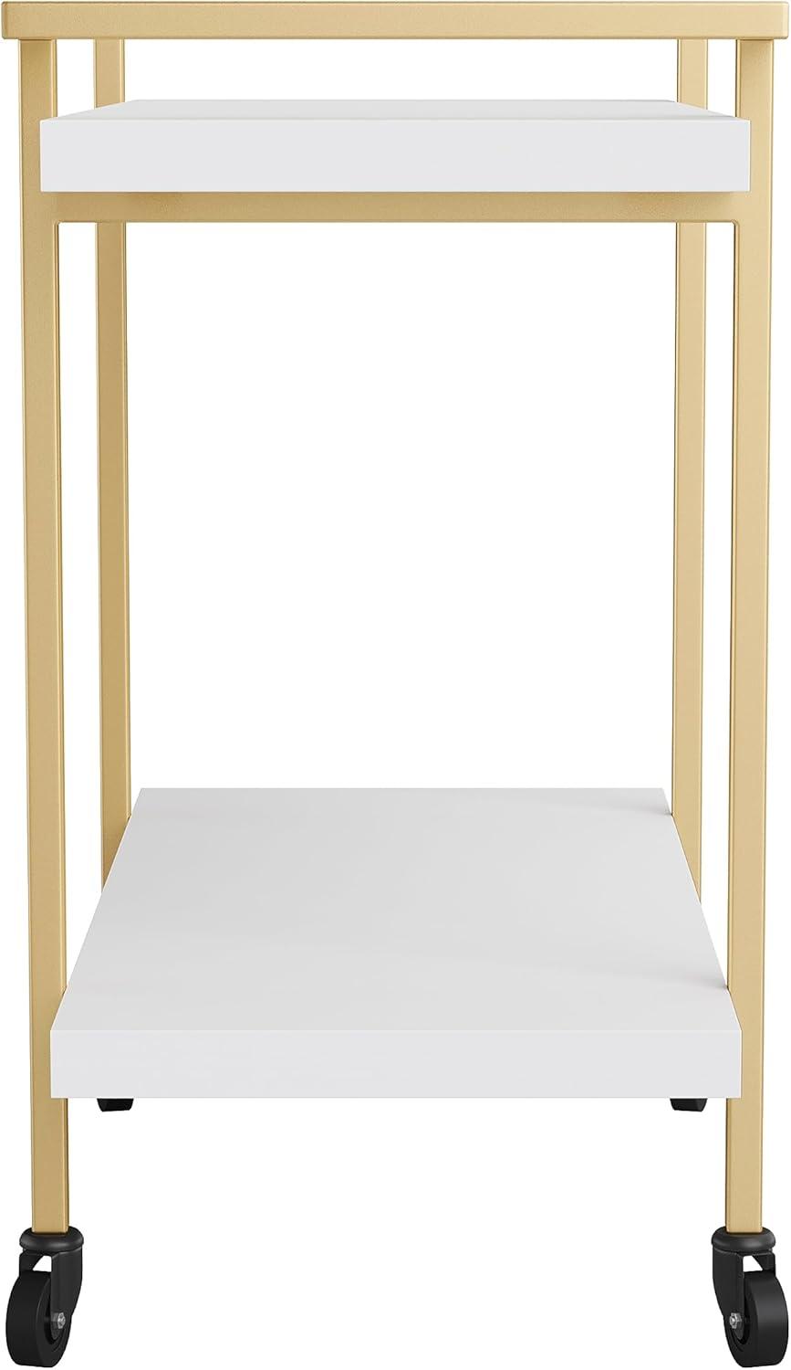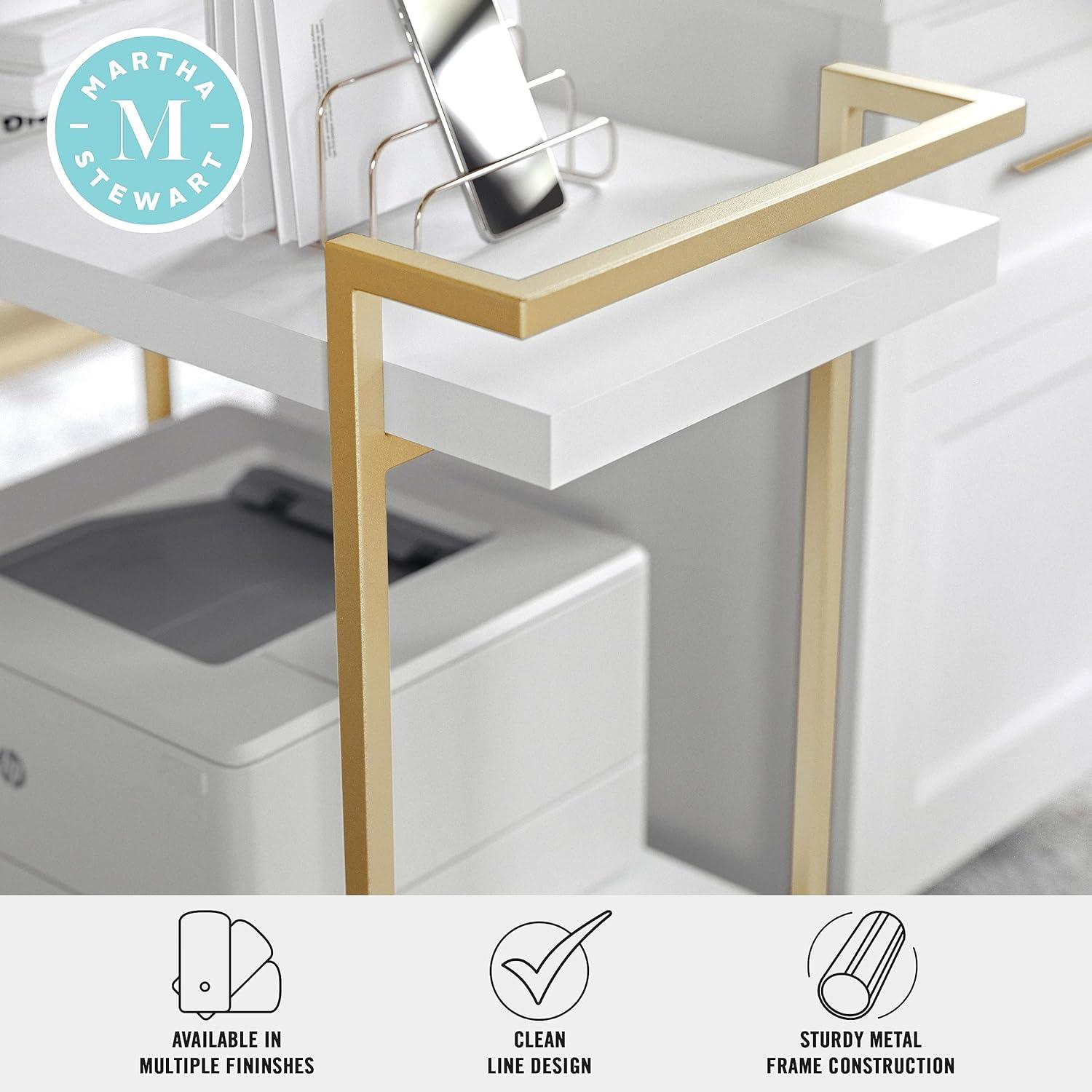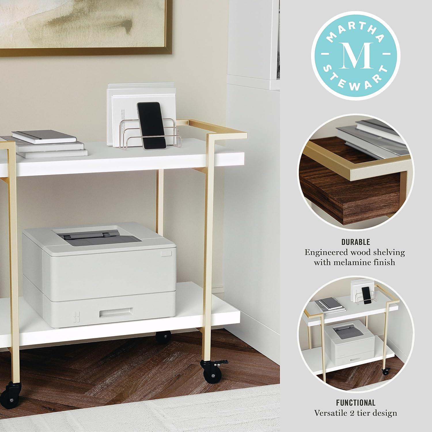 Martha Stewart Liam 2-Tier Mobile Office Storage and Printer Cart in Gray with Brushed Nickel Frame(White/Polished Brass Frame)