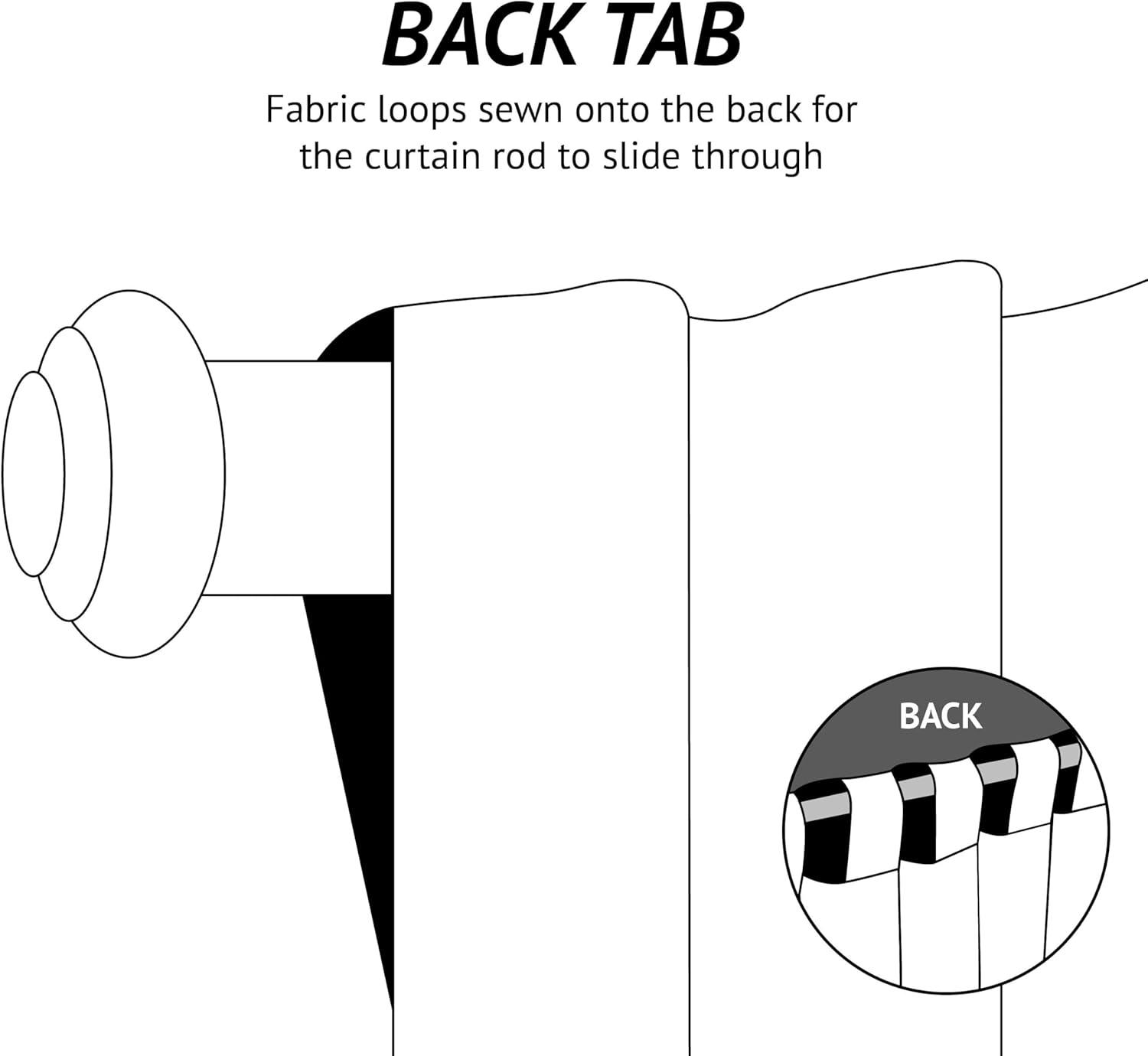 - The 3 inch rod pocket lends a casual chic appearance. To keep it sleek and tailored, install this pair using the back tabs on a standard curtain rod.