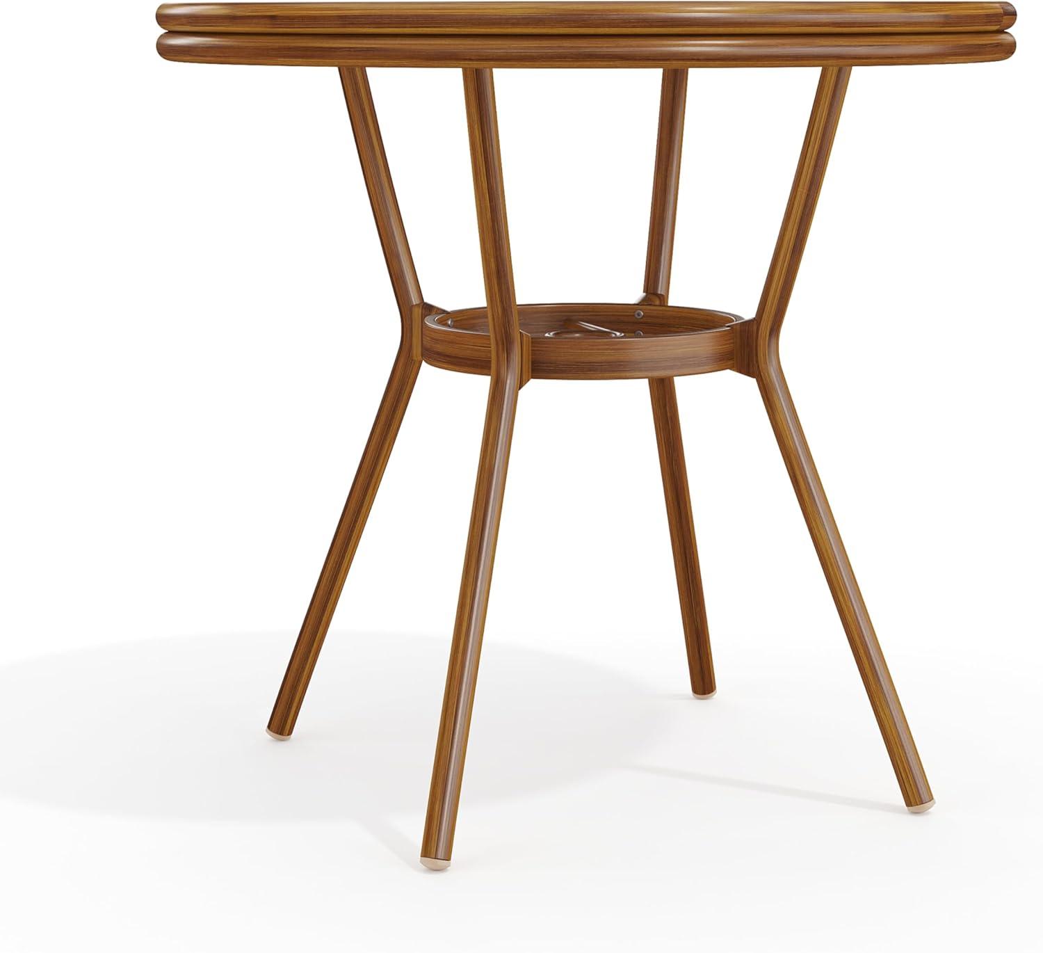 Upgrade your homes indoor-outdoor retreat with the refreshing style of this Martha Stewart Lily Pond Bistro Dining Table for two. An elegant, hand-brushed, woodgrain finish is complemented by a tabletop with a chic, woven rattan pattern and a tempered glass top. The all-weather construction grants durability and peace of mind, while an umbrella hole with a removable cap makes it easy to realize your alfresco design dream with your favorite patio umbrella (umbrella not included). Part of our Lily Pond collection, this piece pairs wonderfully with the coordinating dining chairs, counter stools, and barstools, crafting a custom collection that fits your entertaining needs. Setup is simple with tools included and step-by-step instructions. This piece requires only minimal, hassle-free maintenance, making this eye-catching bistro dining table a seamless addition to any indoor-outdoor space for everyday use and special occasions.