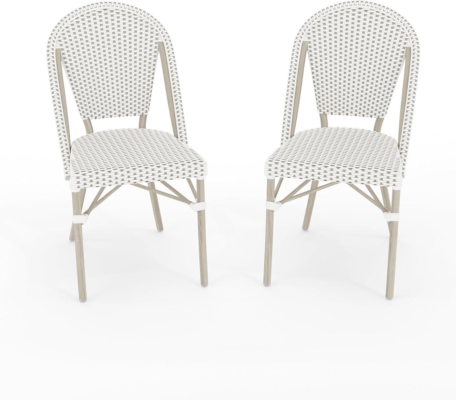 Martha Stewart Lily Pond Indoor-Outdoor Stackable Aluminum Bistro Chair with Gray Woodgrain Frame Finish and White/Gray Woven Rattan Backrest and Seat(Gray & White/Gray Frame)
