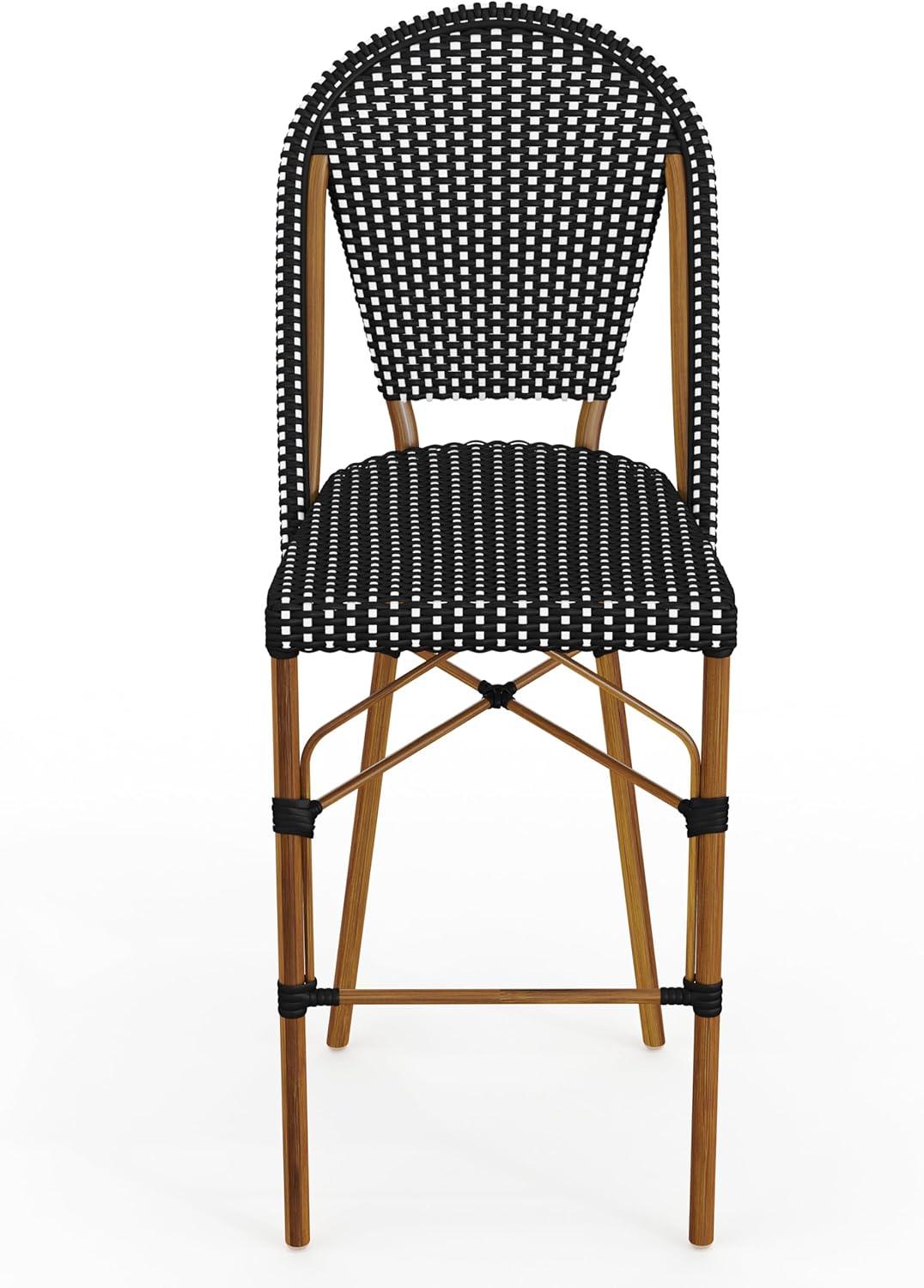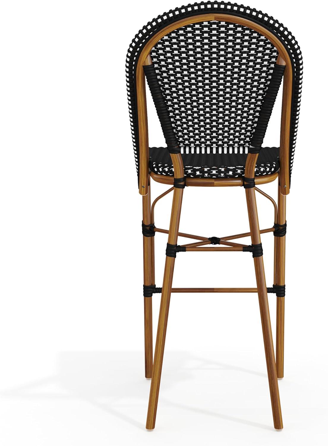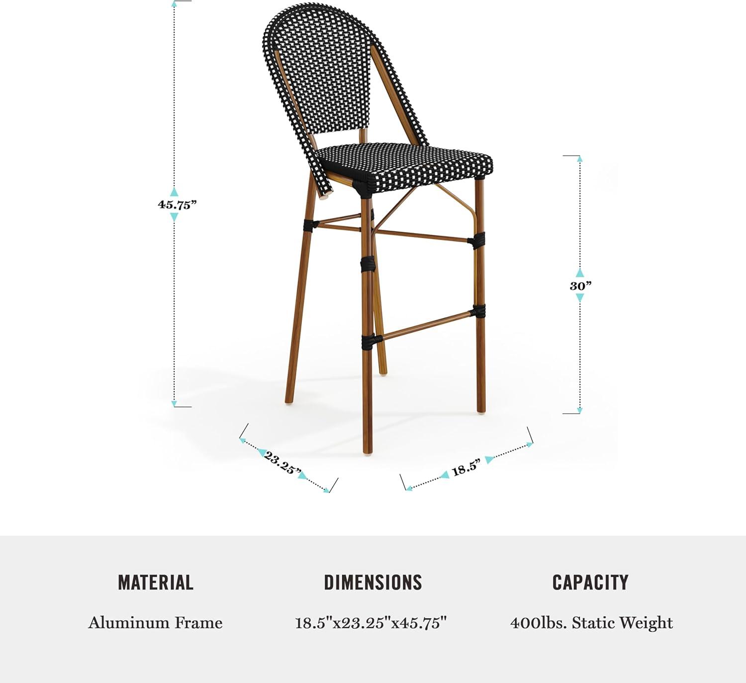 Martha Stewart Lily Pond Indoor-Outdoor Stackable Bar Stools with Gray Woodgrain Aluminum Frame Finish, White/Gray Woven Rattan Backrests and Seats, Set of 2(Black & White/Natural Frame)