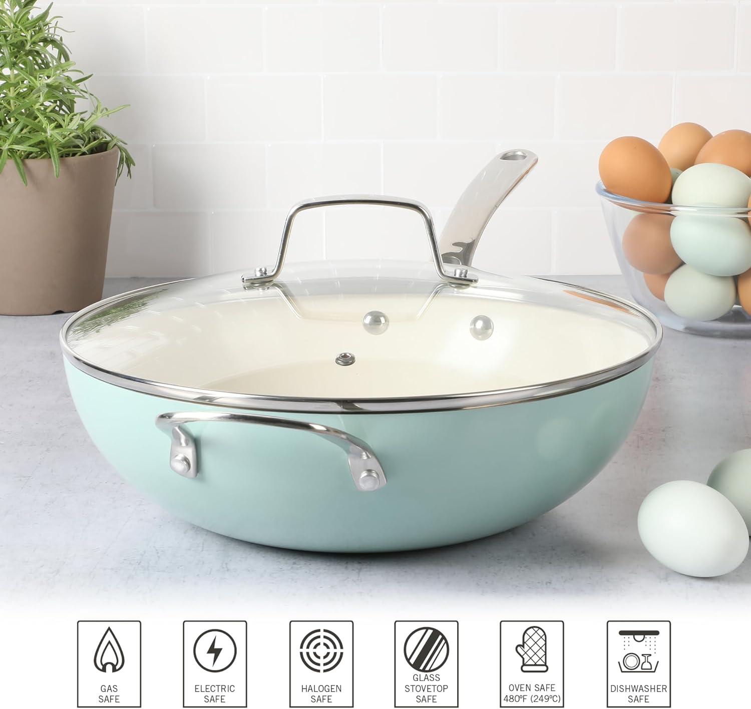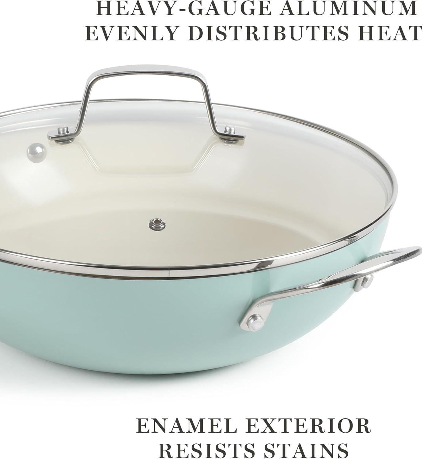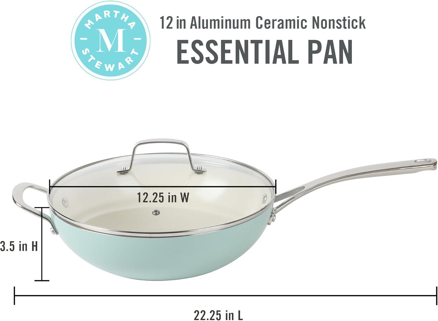 Martha Stewart Lockton 12″ Essential Multipurpose Heavy Gauge Aluminum Frypan/Wok Pan w/PFA Free Premium Ceramic Nonstick Interior- Grey(Martha Blue (Essential Pan))