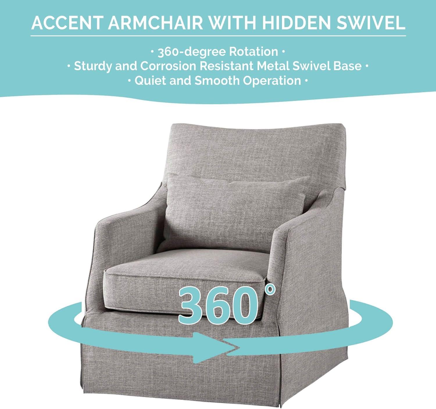 Created exclusively for the Martha Stewart Bedford furniture collection that embodies country farmhouse living, the London Skirted Swivel Chair introduces a simple comfort to your living room decor. This swivel chair is upholstered in a soft fabric with a removable seat cushion that provides exceptional comfort. The metal swivel base allows the chair to fully rotate 360 degrees, while the skirted bottom helps conceal it for a transitional look. A lumbar pillow is also included. At her country farmhouse, Martha enjoys bringing the outdoors in. This functional and practical lifestyle is evidenced in her thoughtfully appointed decor which embraces a neutral color palette that acts as a perfect backdrop to four seasons of color. Fully assembled.