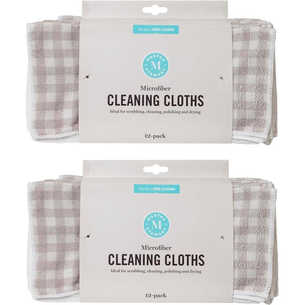 Martha Stewart Microfiber Cleaning Cloths, Ultra-Absorbent, Lint-Free Cleaning Towels for Home & Kitchen, Grey Gingham, 11 Inches, 24 Count(Grey Gingham)