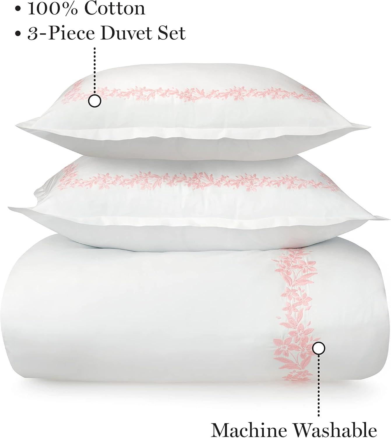MARTHA STEWART Natalie King Size Duvet, 3 Piece Set-1 Duvet Cover, 2 Pillow Shams, Crinkle Velvet Texture, Soft & Royal, Machine Wash, 104″x92″ with Button Closure, Champagne(White & Blush)