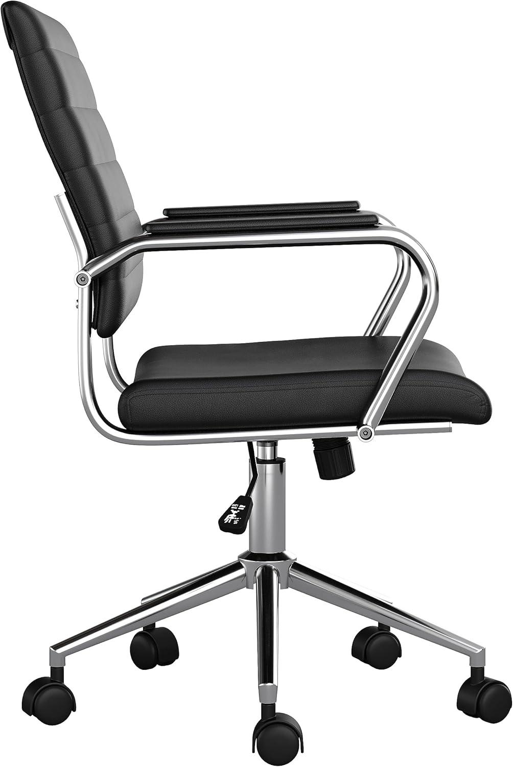 The Martha Stewart Piper Office Chair partners traditional design with clean lines to instantly update your work space. This faux leather desk chair features a polished nickel frame with integrated ergonomic armrests that add elevated sophistication to a classic look. The pneumatic height adjustment lever tucked beneath the 360 swivel seat offers a custom seating experience to keep you comfortable throughout your workday. Assembly is easy with the included tools and step-by-step instructions.