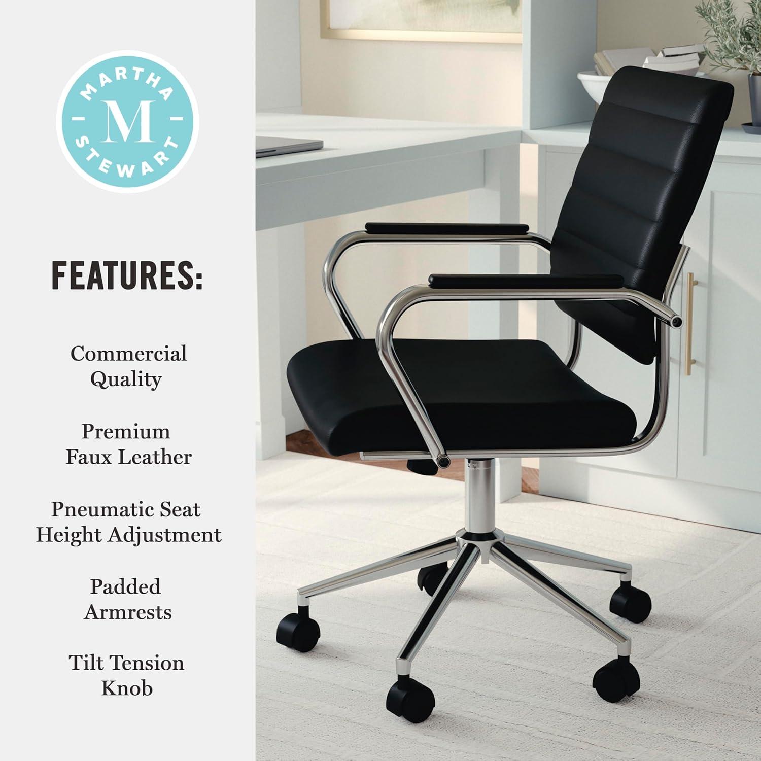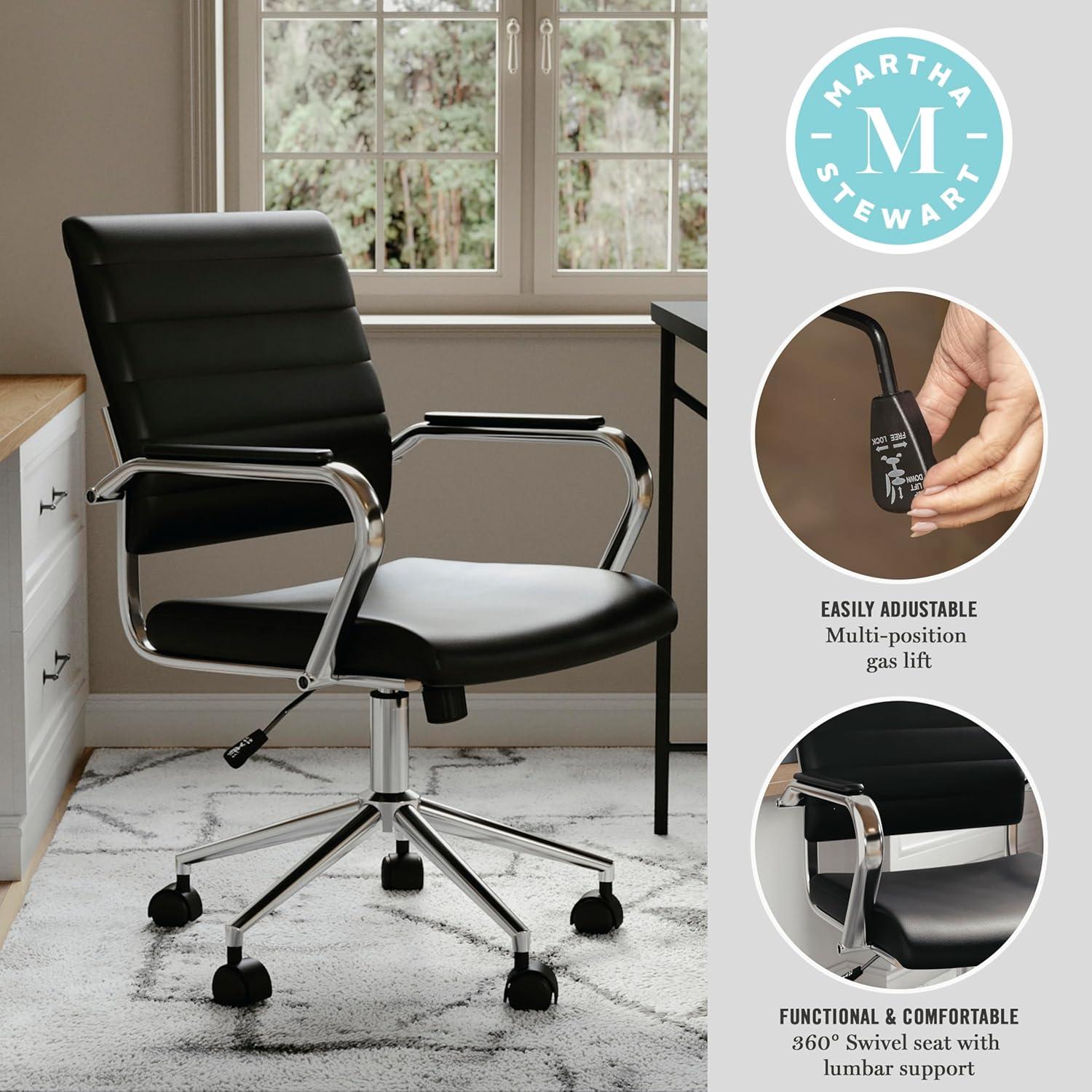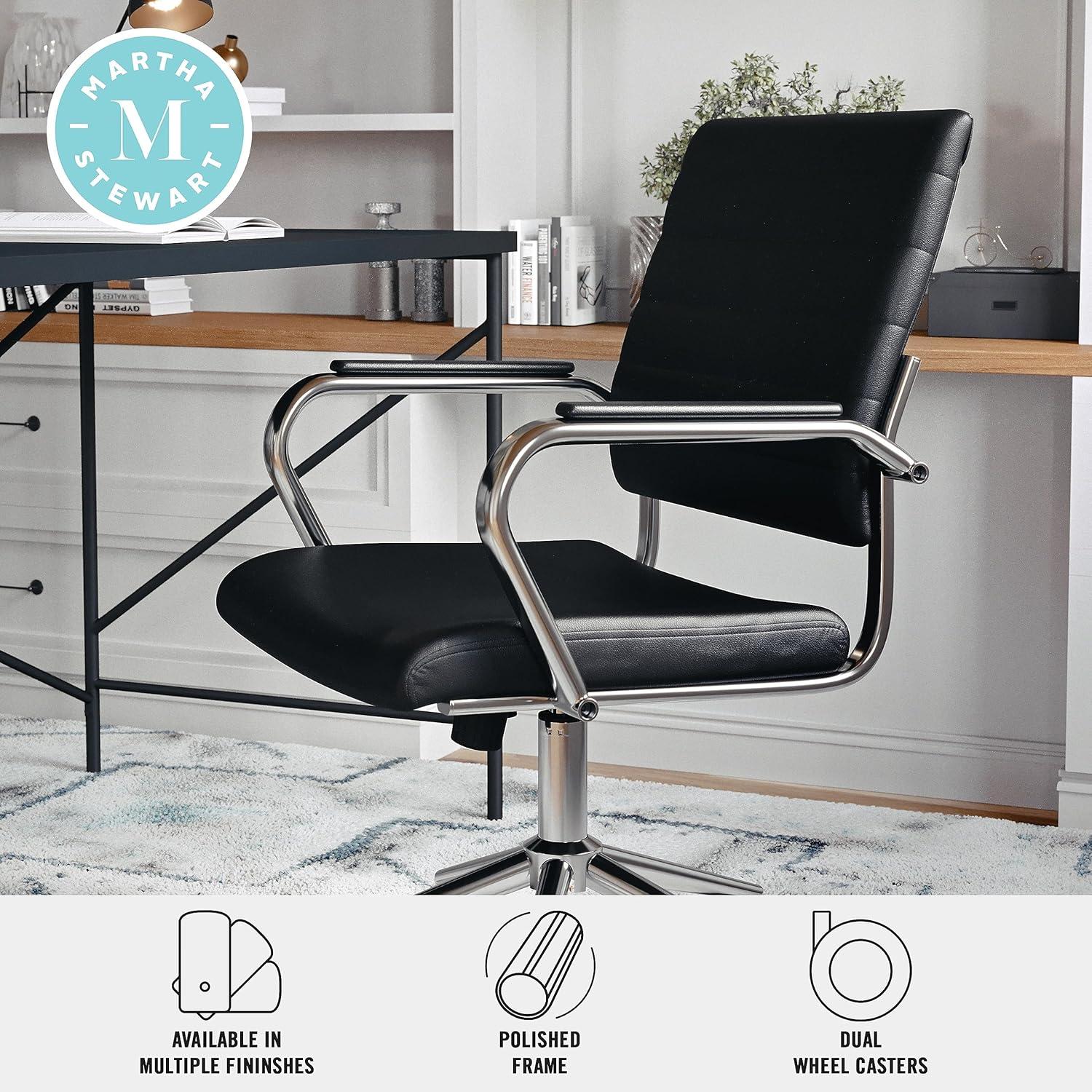Martha Stewart Piper Swivel Task Chair with Armrests for Home Office in Saddle Brown Faux Leather with Polished Nickel Frame(Black Faux Leather/Polished Nickel)