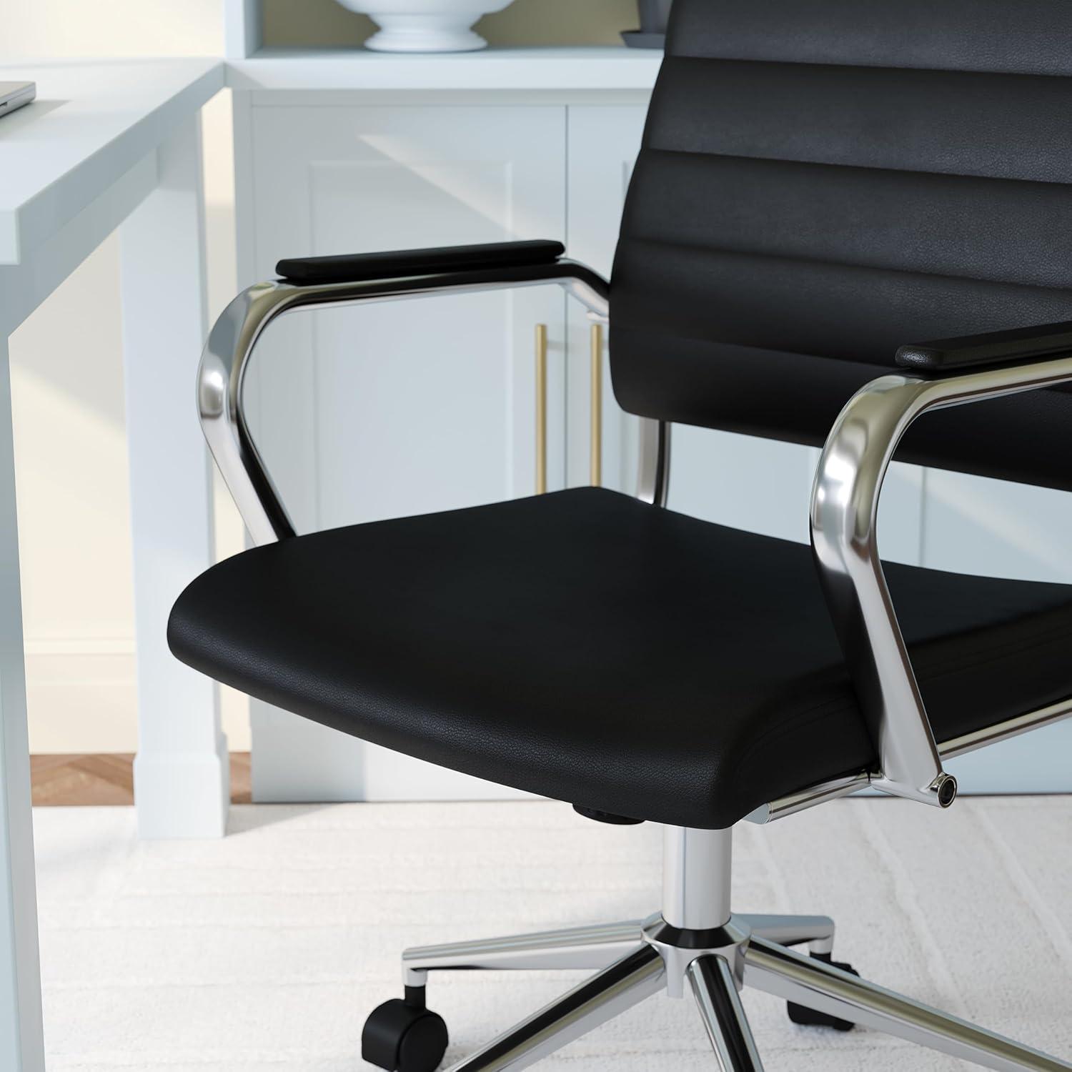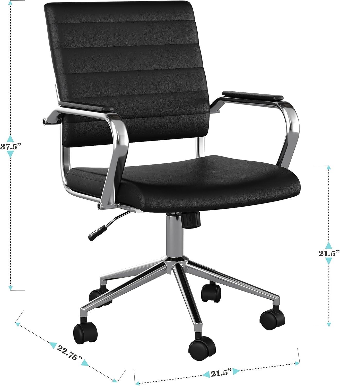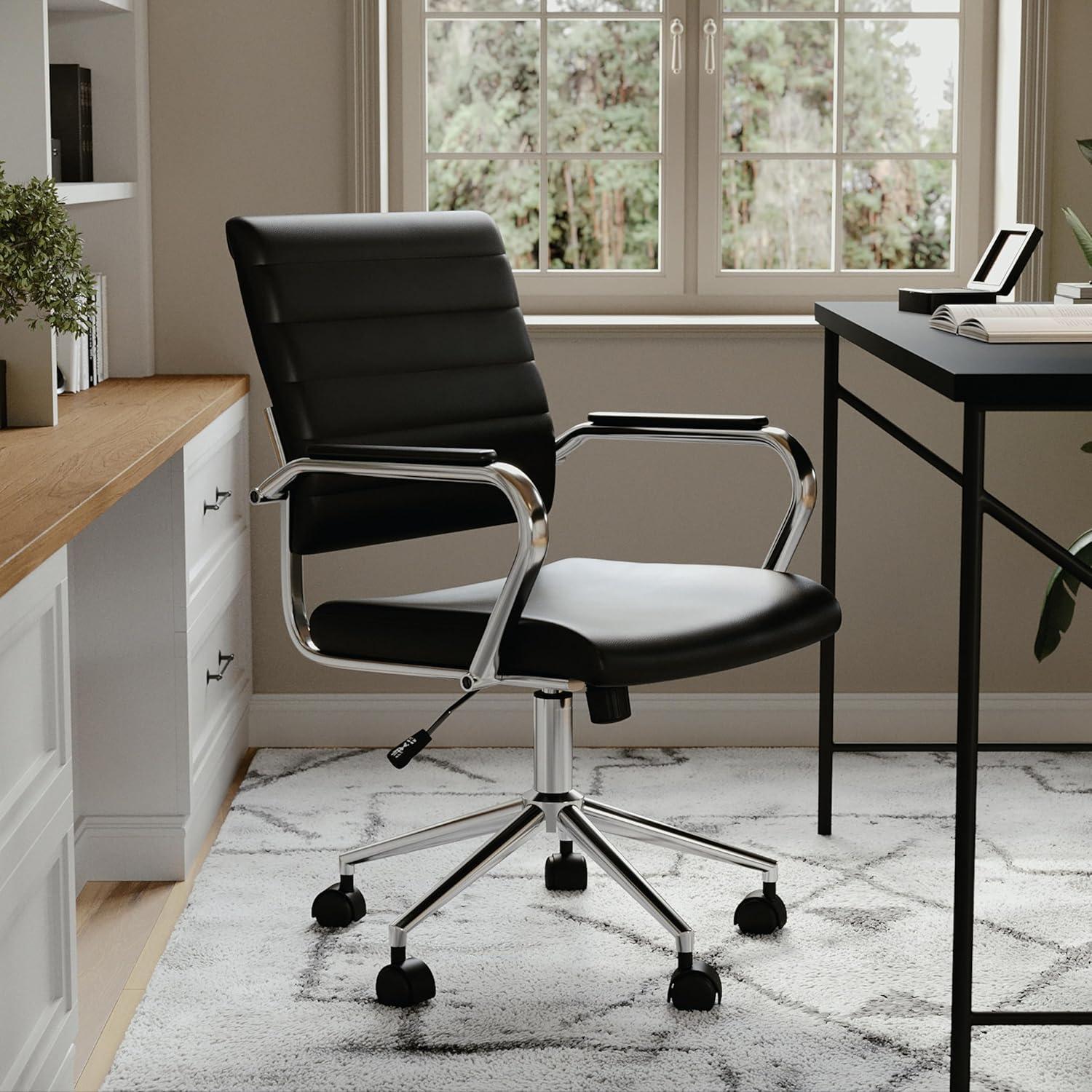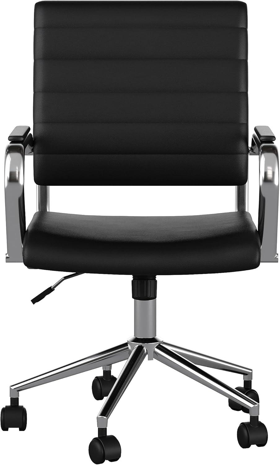 Martha Stewart Piper Swivel Task Chair with Armrests for Home Office in Saddle Brown Faux Leather with Polished Nickel Frame(Black Faux Leather/Polished Nickel)