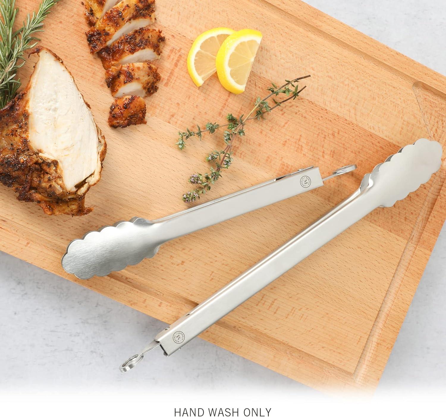 WHAT'S IN THE BOX: Two stainless steel tongs (9-inch, 12-inch)