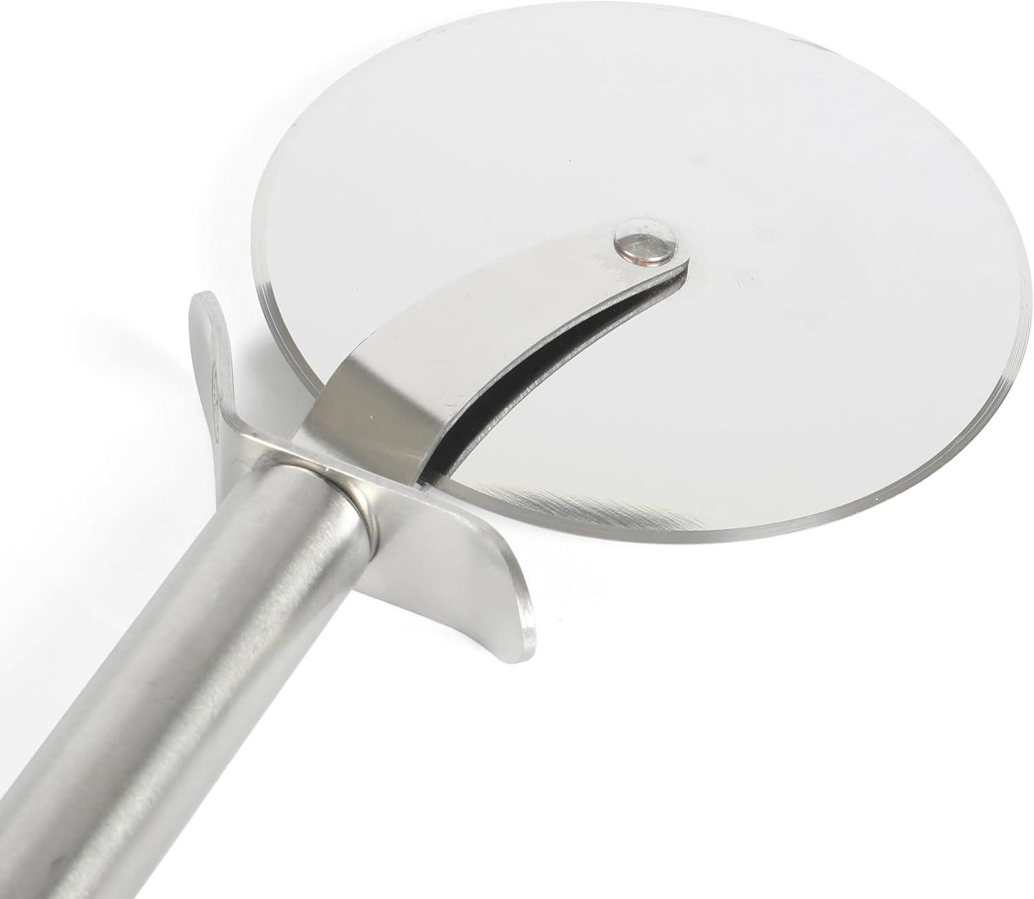 SHARP STAINLESS STEEL BLADE: Durable stainless steel pizza cutter easily slices through thick crusts, paninis, artisanal flatbreads, and more