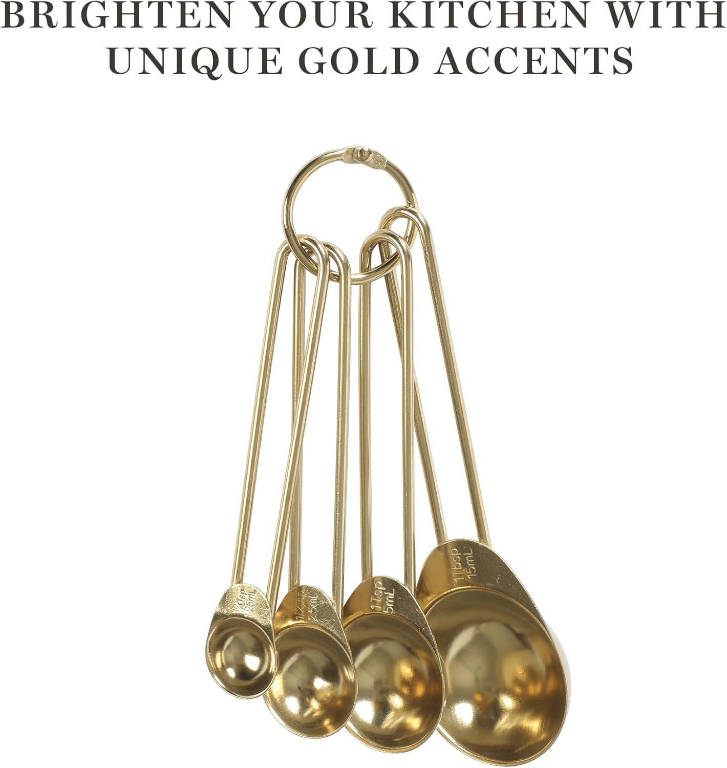 Martha Stewart Richburn 4-Piece Gold Stainless Steel Measuring Spoons Set – Durable and Stylish Kitchen Measuring Tools for Precise Baking and Cooking(Gold)