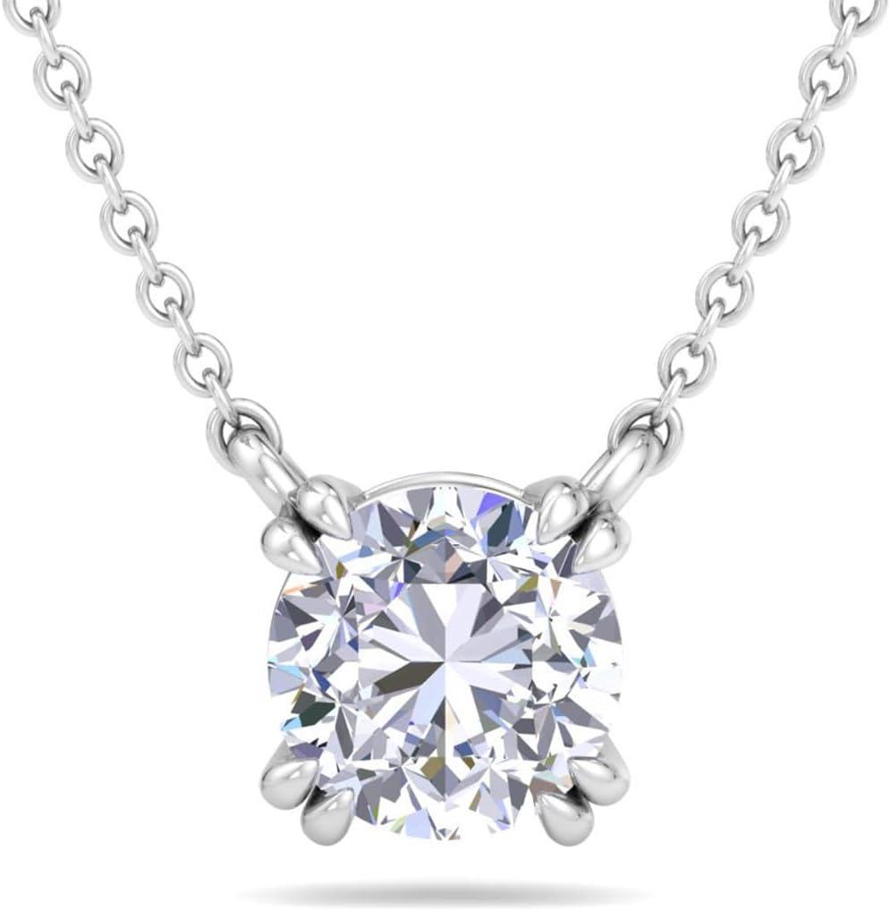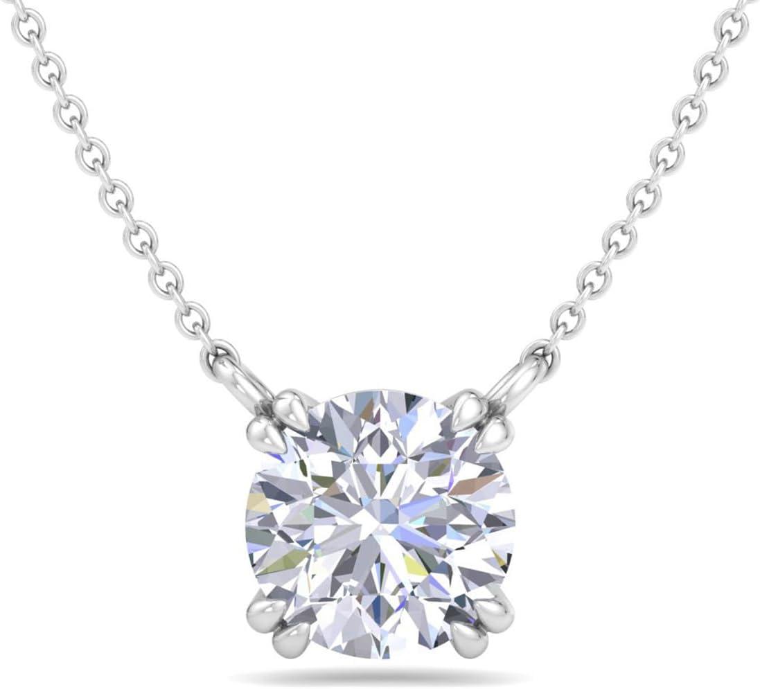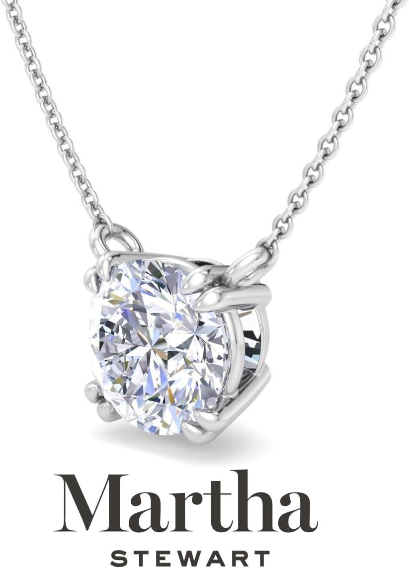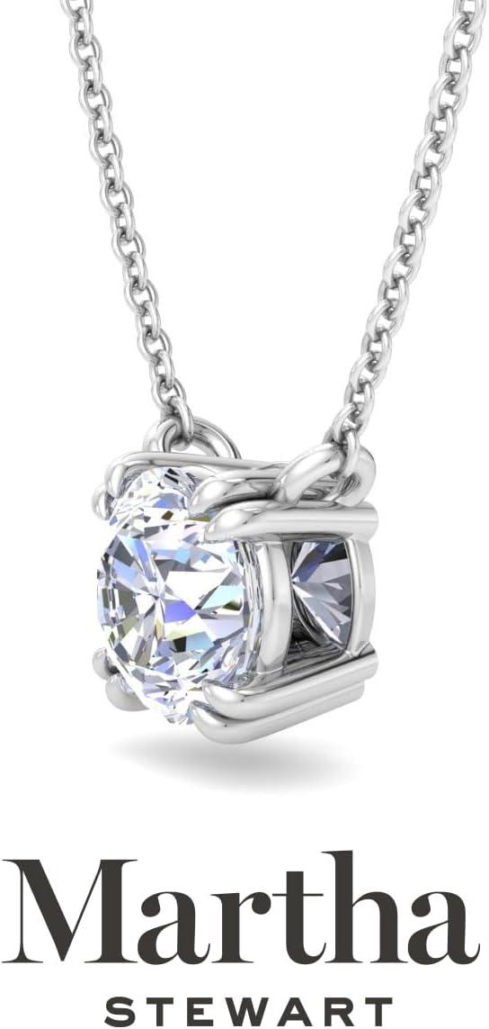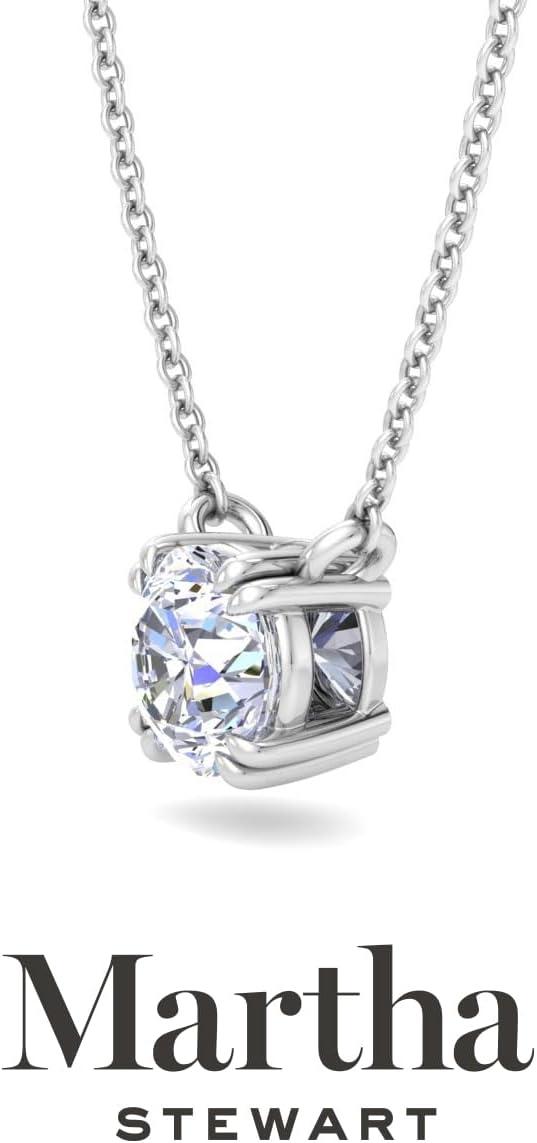 Martha Stewart Round Shape Lab Grown Diamond Solitaire Necklace In 14 Karat Gold(white-gold)