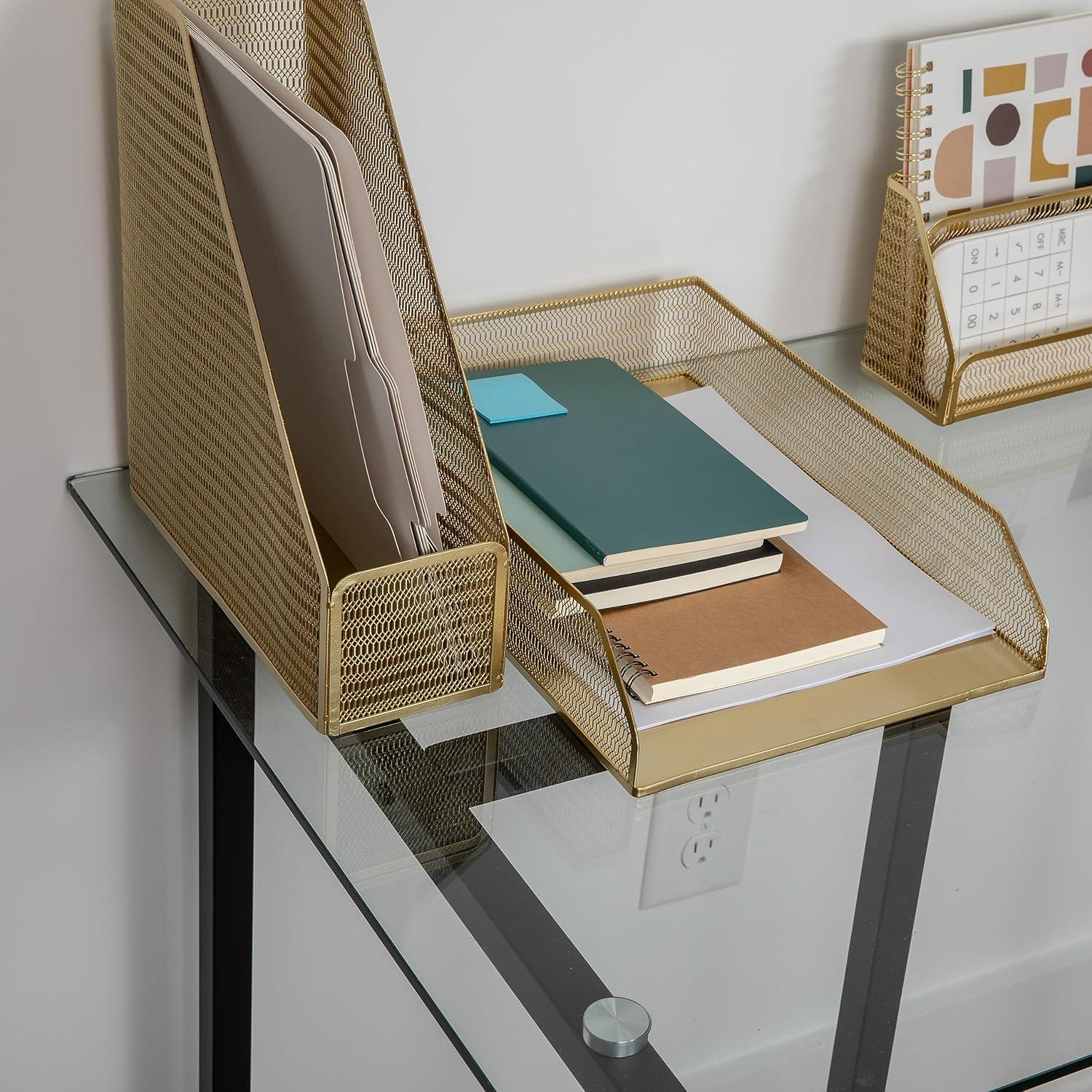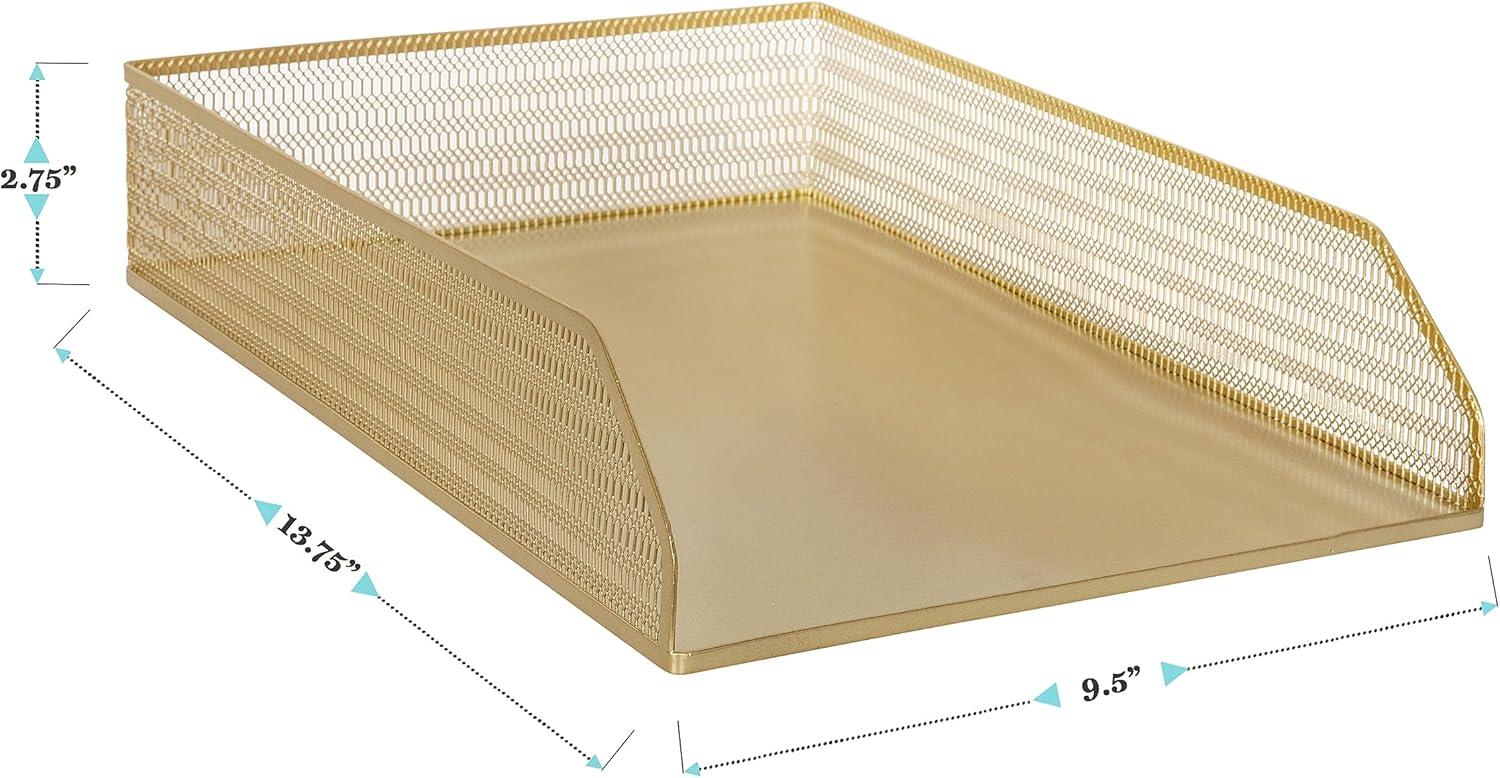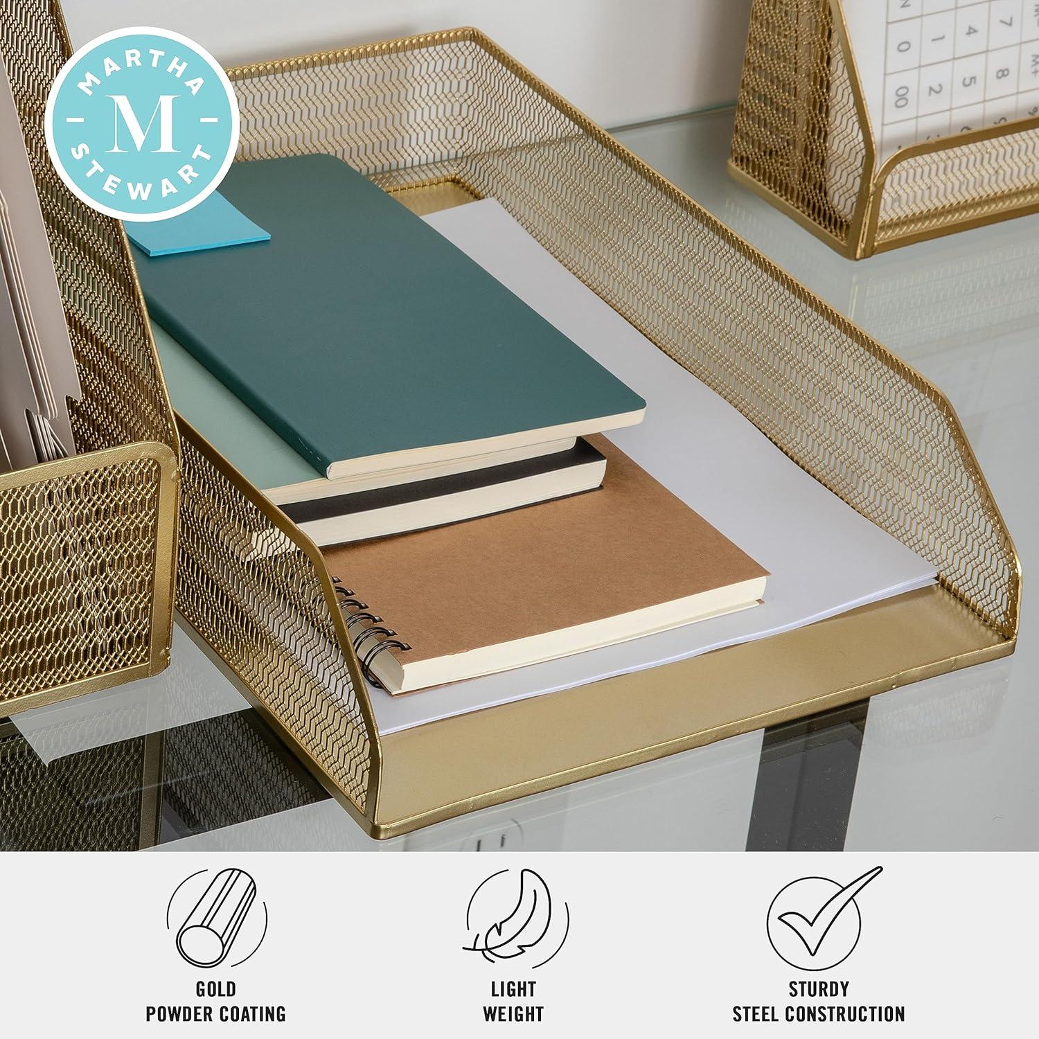 Martha Stewart Ryder 2 Pack Gold Mesh Metal Paper Letter Inbox Tray Desktop Organizer