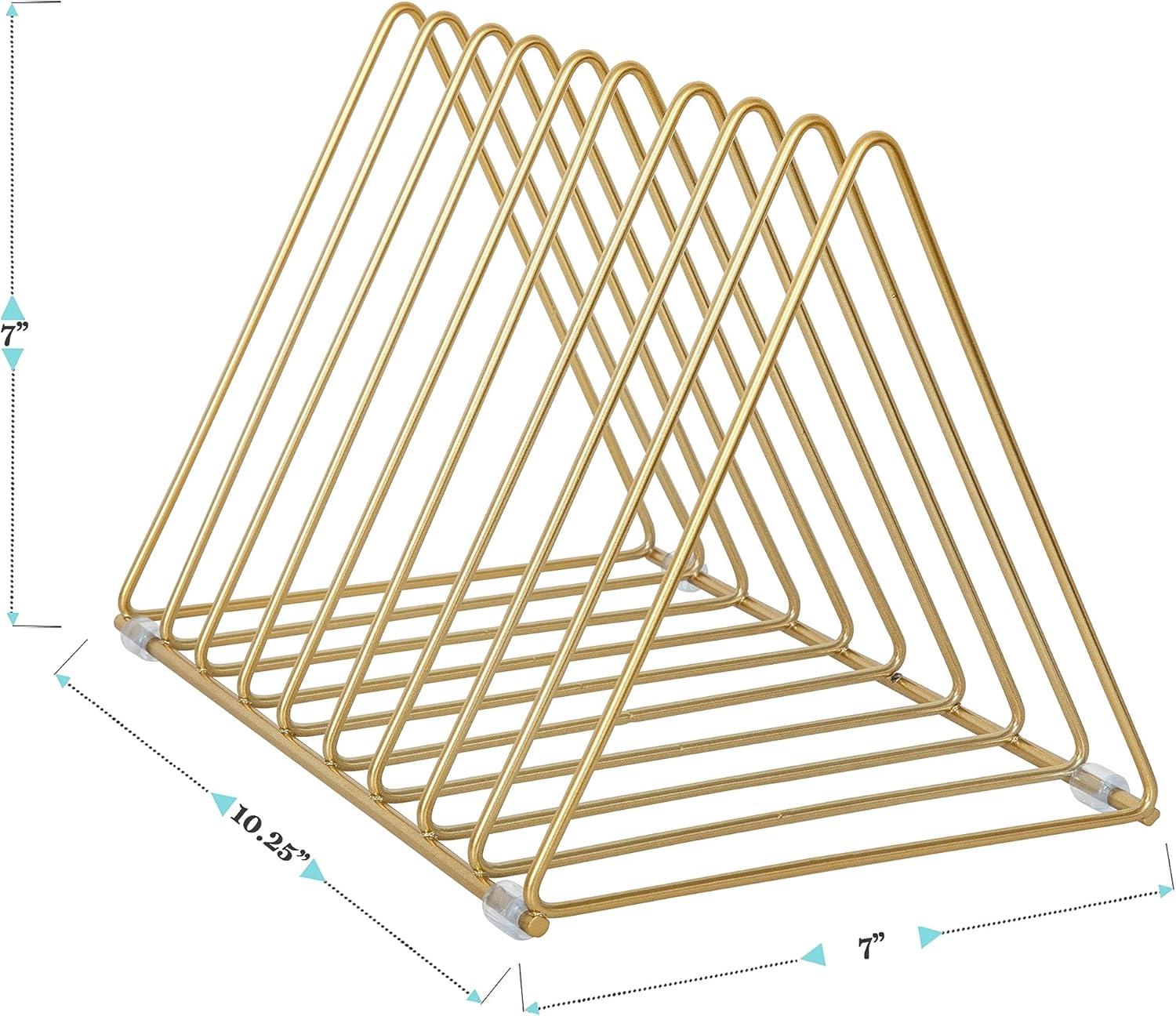 Martha Stewart Ryder Gold Mesh Metal 9 Slot Triangle Magazine File Holder, Desktop Organizer Sorter