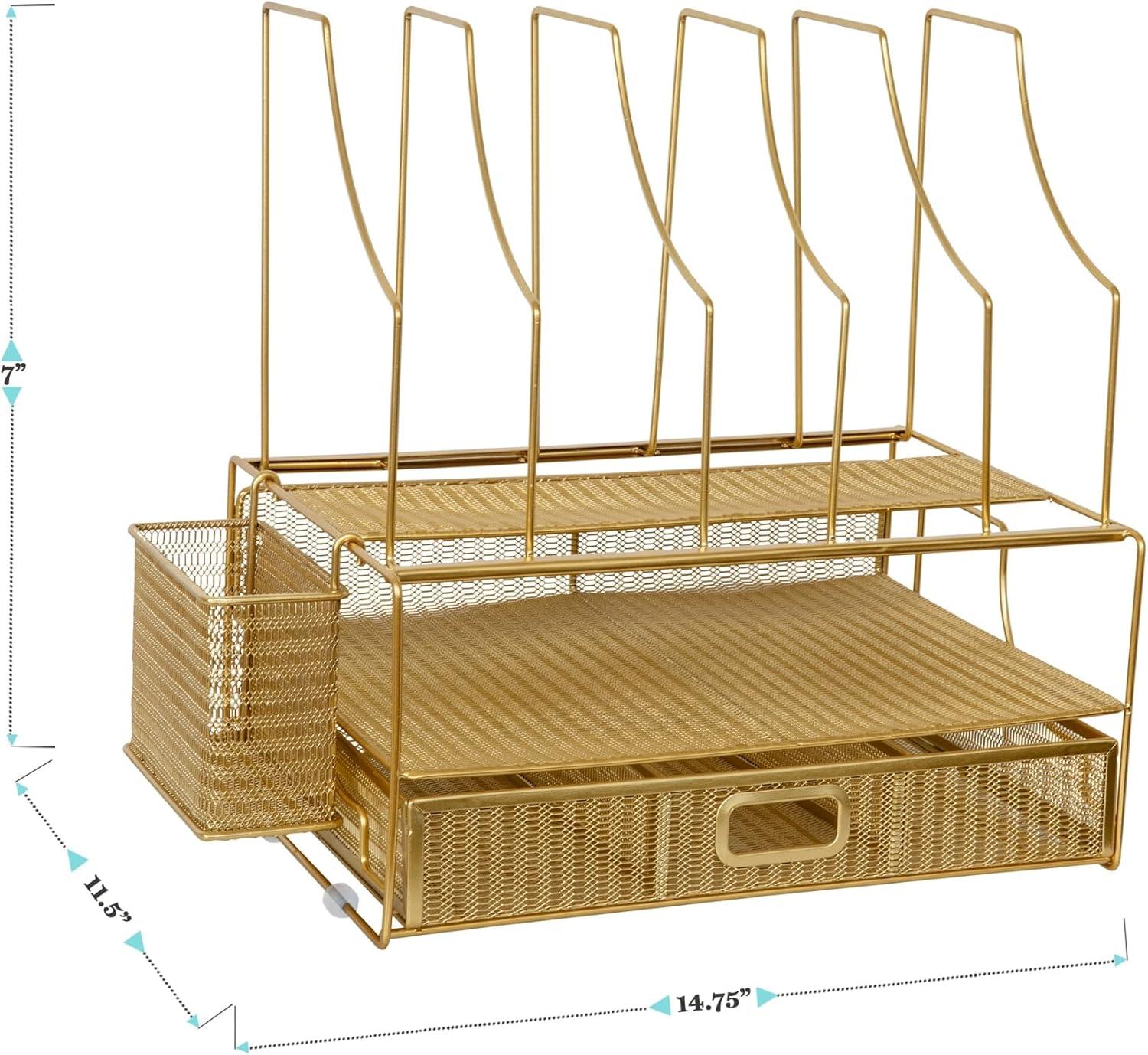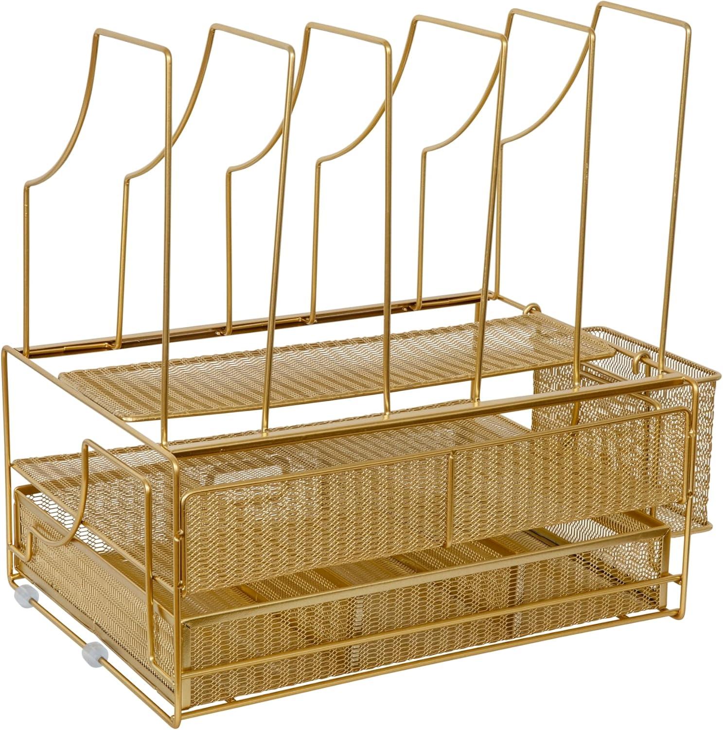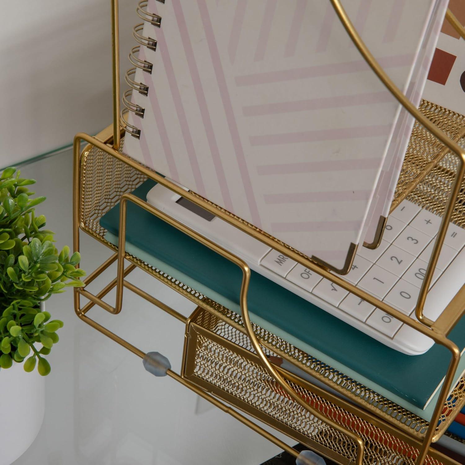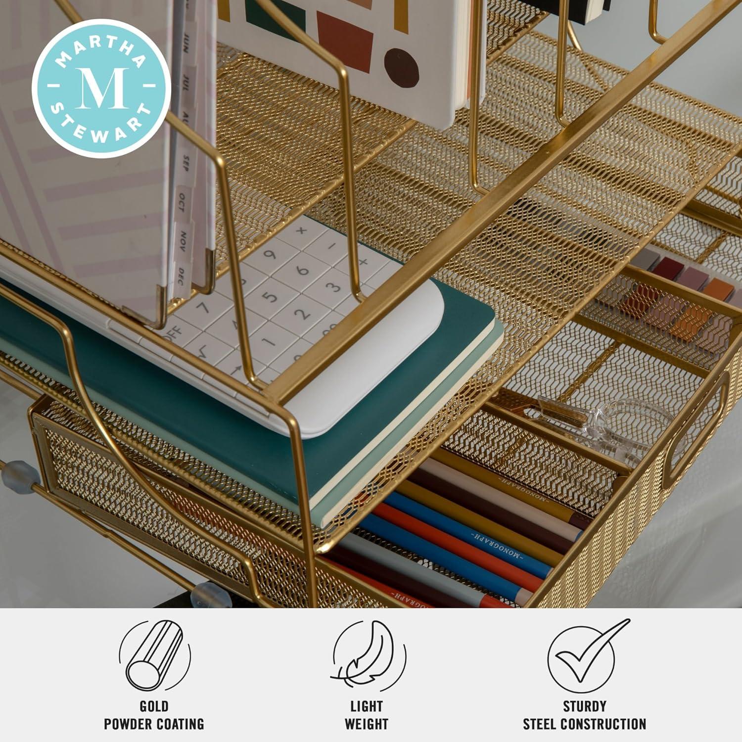 Martha Stewart Ryder Gold Mesh Metal Large Desktop Organizer With Paper File Letter Holder Organizer and Drawer