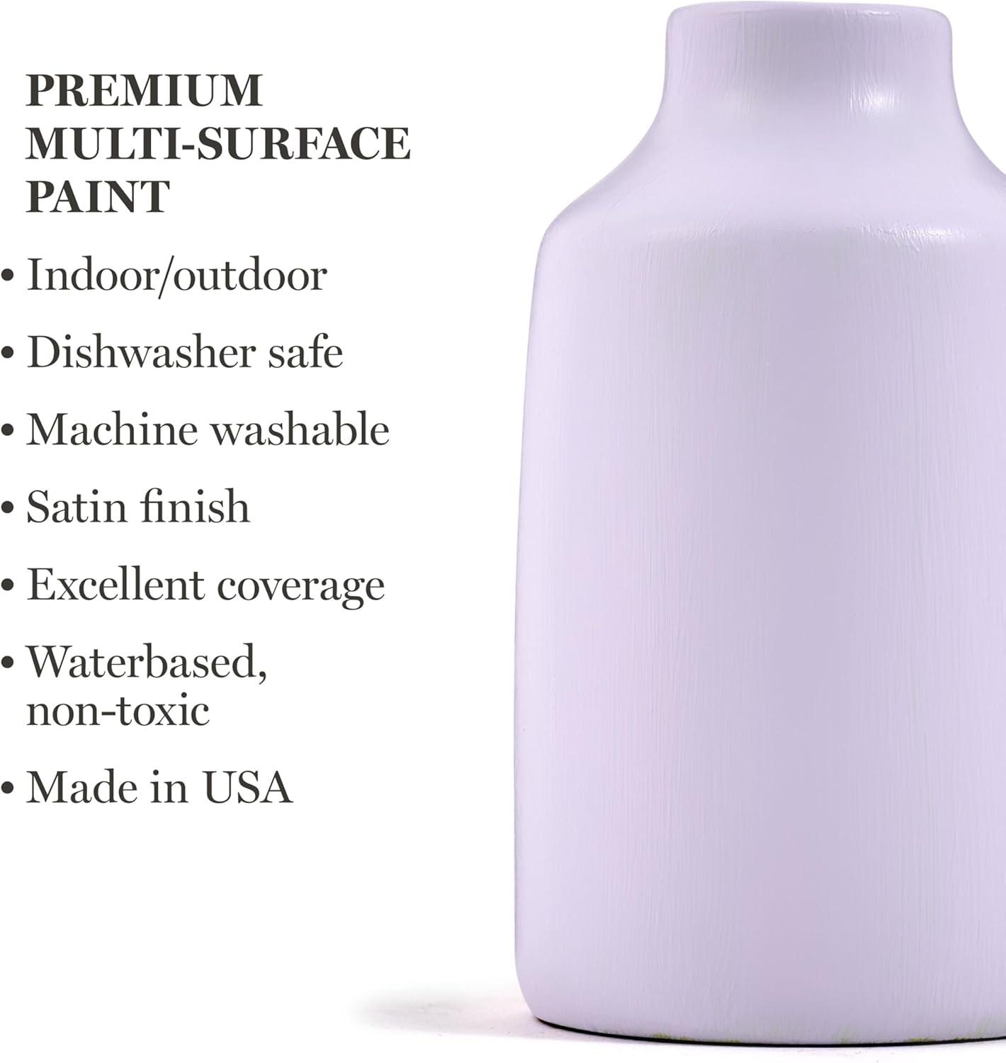 Elevate your craft projects with Martha Stewart Multi-Surface Satin Acrylic Paint. This highly pigmented, water-based, non-toxic paint offers superior coverage on a variety of surfaces. Whether you're working on wood, glass, ceramic, or fabric, this paint delivers vibrant, long-lasting color with a smooth satin finish. The 8 oz. size is perfect for DIY projects, large projects, and parties. It’s designed for effortless application and easy cleanup, allowing you to create with confidence and creativity. Additional Details: Martha Stewart Satin Paints can be used on glass and ceramics, making them dishwasher-safe on the top rack once cured. To cure, air dry the items for 1 hour then place them in a cool oven. Set the oven to 350 degrees Fahrenheit and bake for 30 minutes. Let them cool in the oven to room temperature and avoid using for 72 hours for best results. To cure Satin paint for machine washing, heat set painted fabric with an iron on cotton setting, no steam.