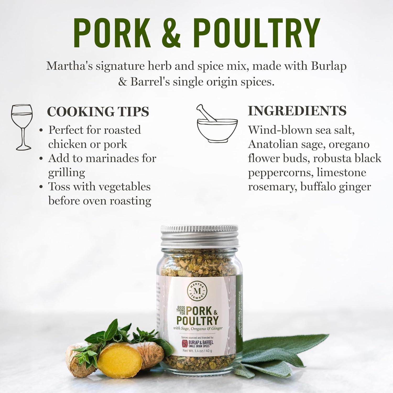 Martha Stewart Seafood & Chicken Seasoning – Bright, Zesty & Irresistible Handcrafted Blend of Single-Origin Spices from Burlap & Barrel – Fish, Shellfish & Poultry – Gift for Cooks – 2.3 oz Glass Jar(4-Spice Essentials Set)