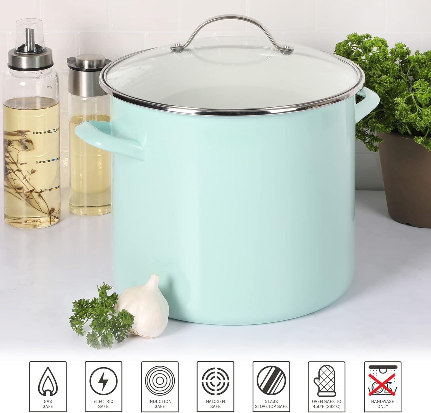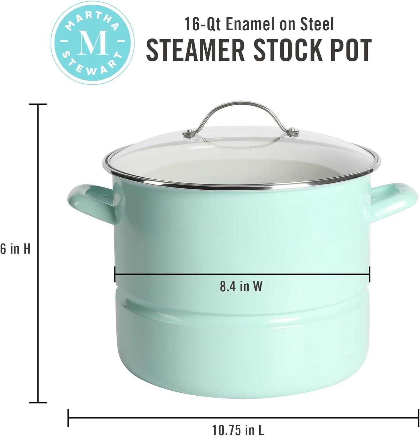 Martha Stewart Thayer 8-Quart Enamel On Steel Scratch Resistant Stock Pot w/Lid – Martha Blue(Martha Blue)