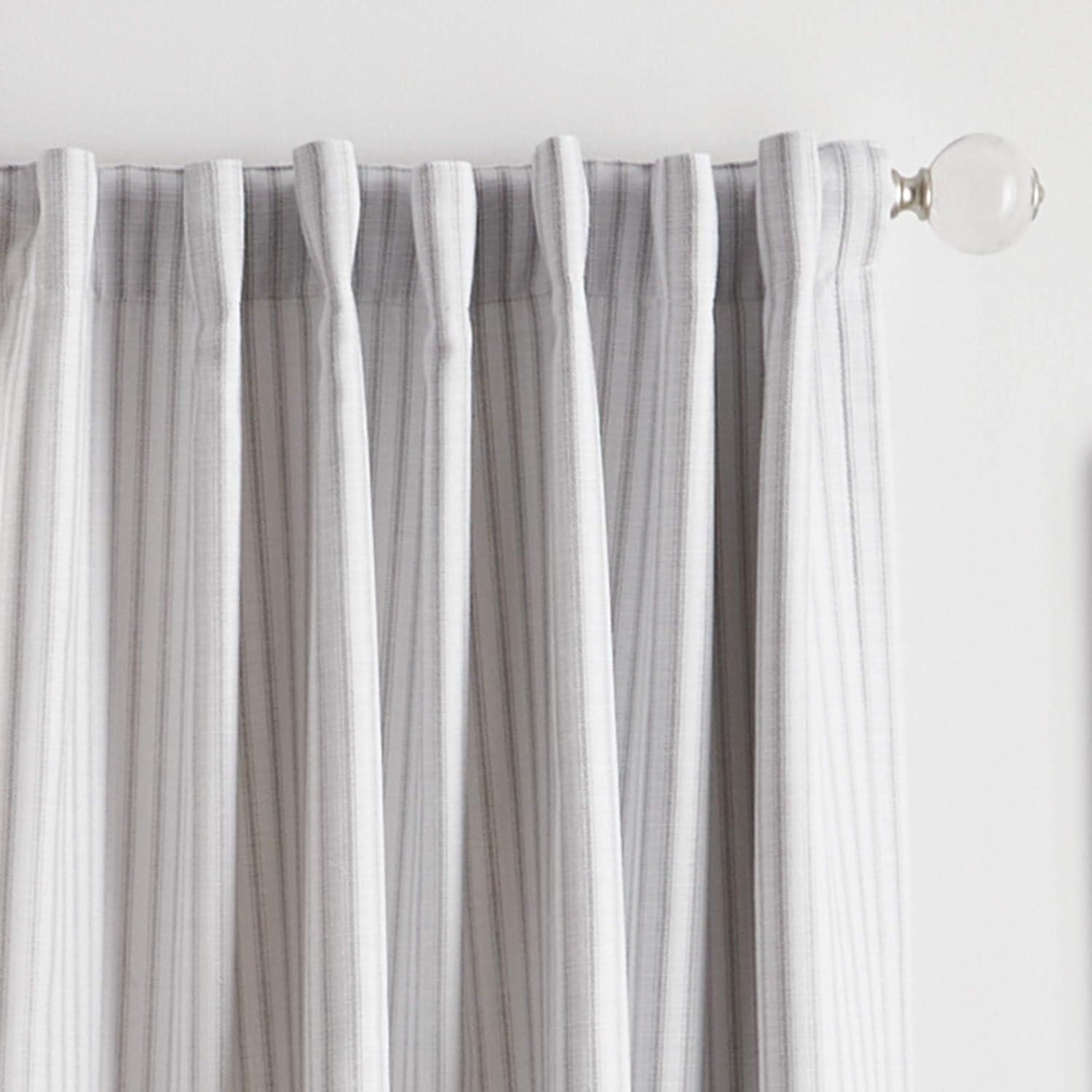 Martha Stewart Ticking Stripe Blackout Lining Rod Pocket/Back Tab Window Curtain Panel Pair, 84″, White/Grey