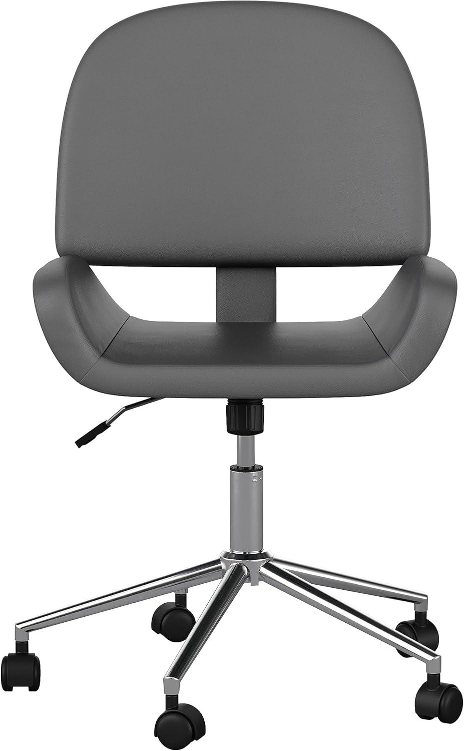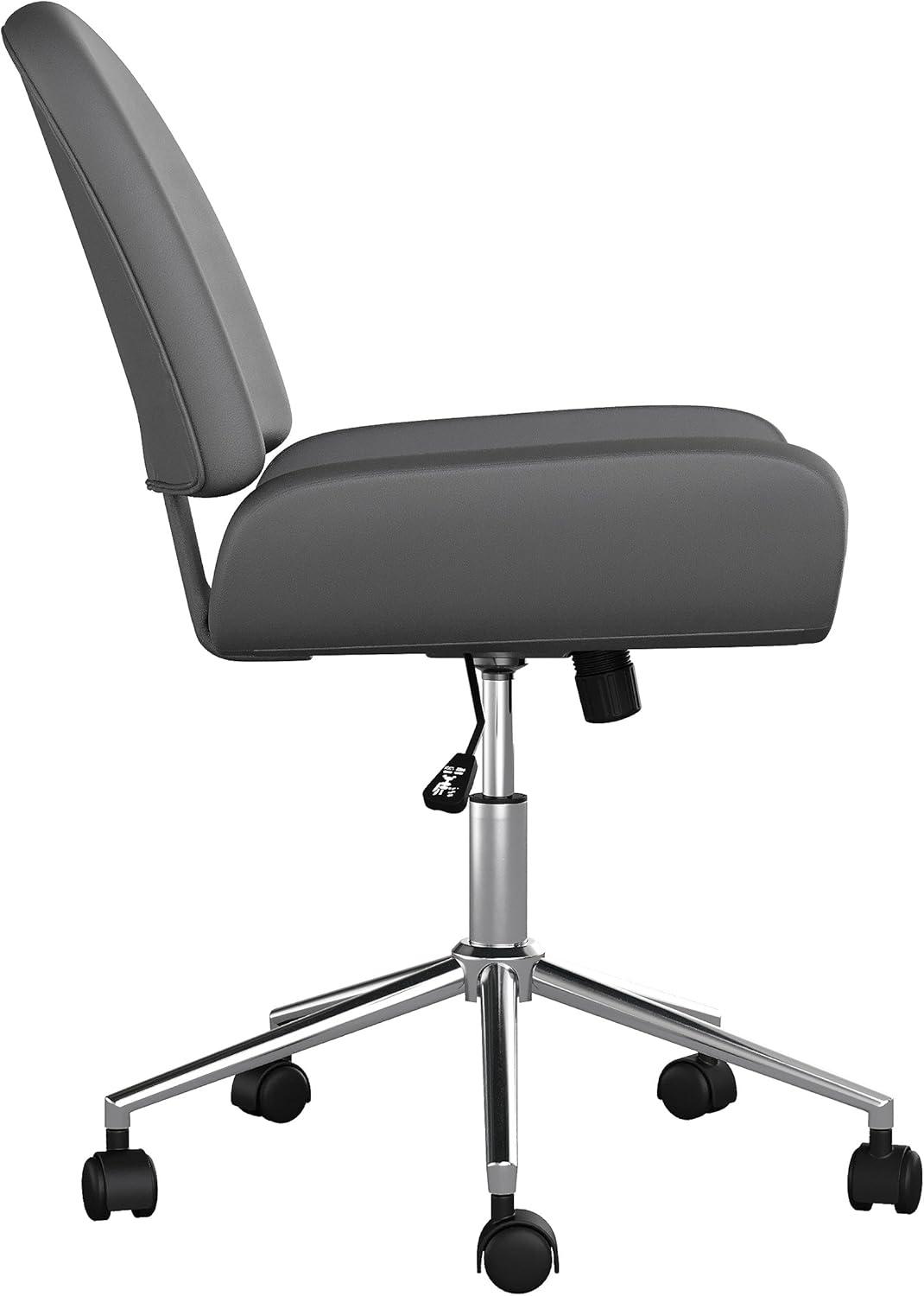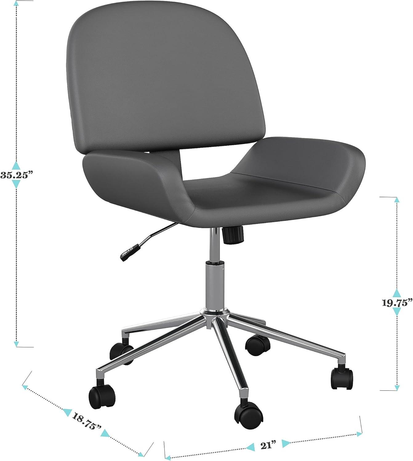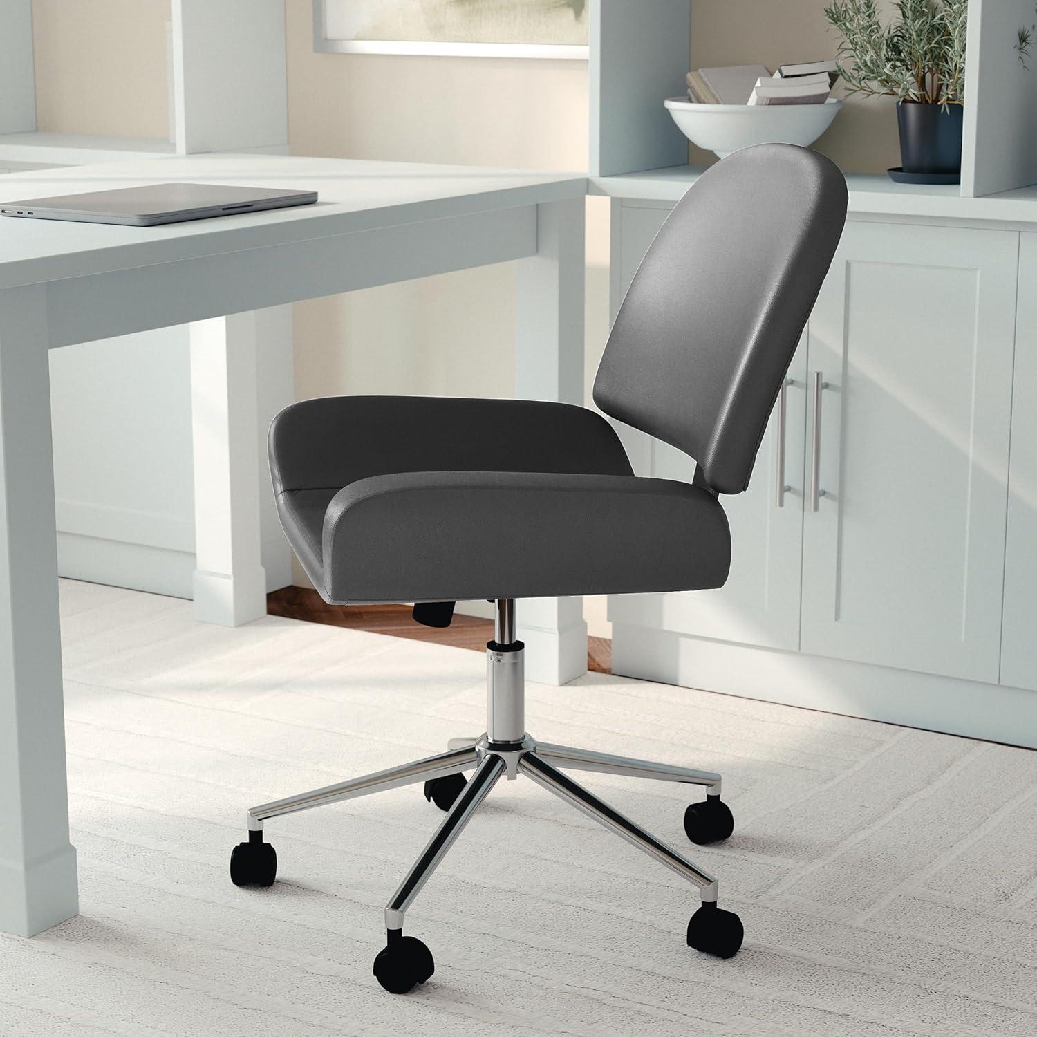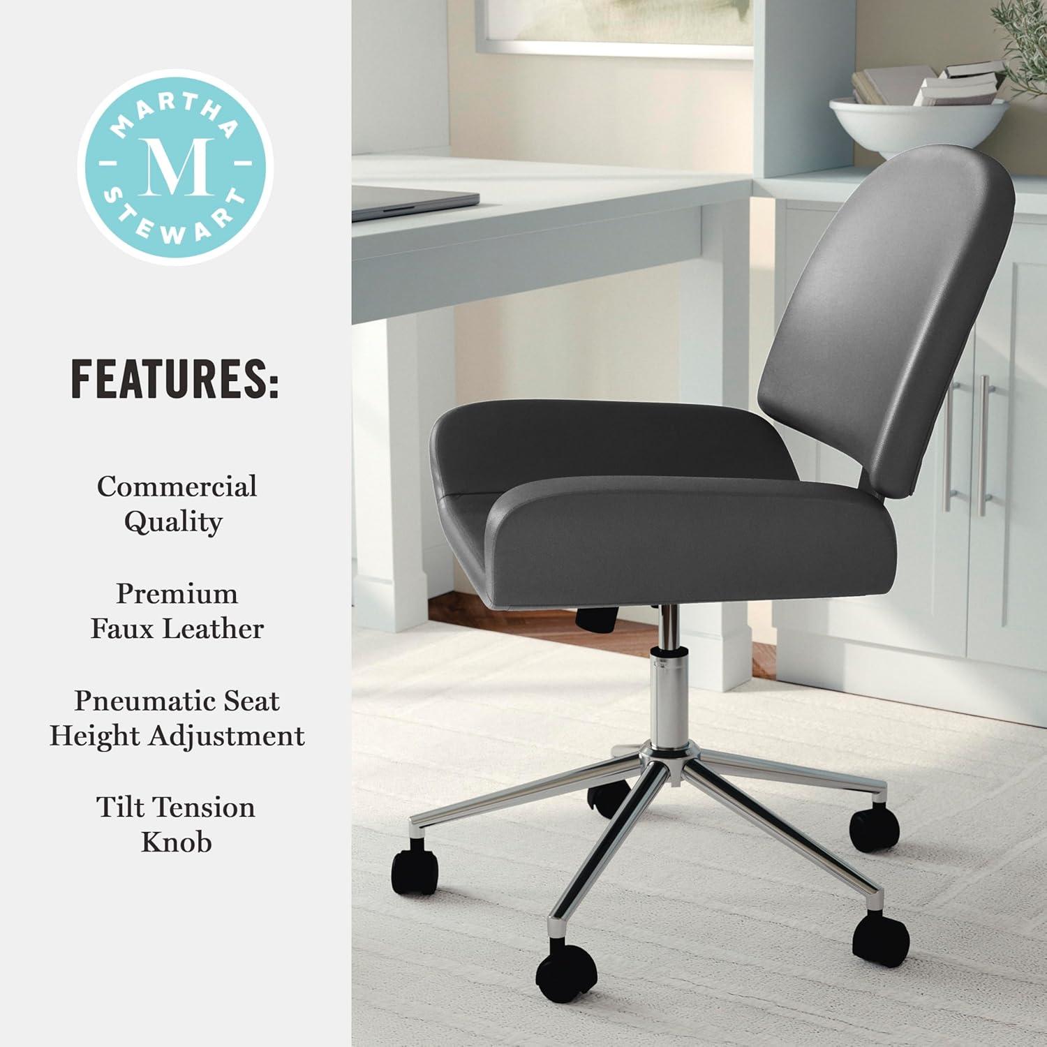 The Martha Stewart Tyla Office Chair is an updated classic that lends instant charm to your home office. This faux leather desk chair features an armless polished nickel frame that adds elevated sophistication to any decor. A pneumatic height adjustment lever tucked beneath the 360 swivel seat offers a custom seating experience to keep you comfortable throughout your workday. Assembly is easy with the included tools and step-by-step instructions.