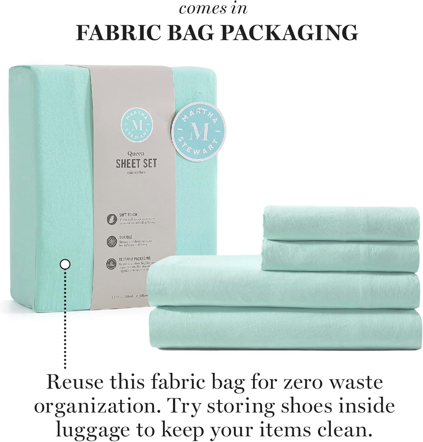 REFRESH YOUR BEDDING STYLE with this ultra-soft 100% microfiber sheet set. Brushed and washed for added softness, the flat sheet, fitted sheet, and pillowcases in this set have a cozy, lived-in feel you'll love. Pair this sheet set with quilts, duvets, and other designs by Martha Stewart.