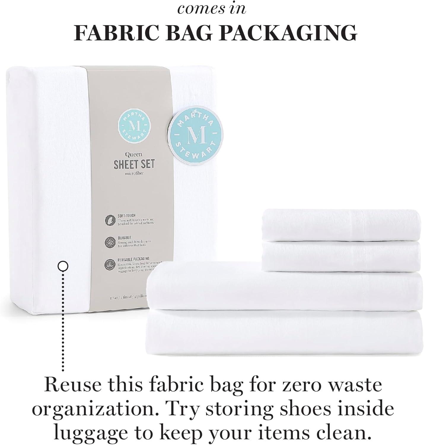 REFRESH YOUR BEDDING STYLE with this ultra-soft 100% microfiber sheet set. Brushed and washed for added softness, the flat sheet, fitted sheet, and pillowcases in this set have a cozy, lived-in feel you'll love. Pair this sheet set with quilts, duvets, and other designs by Martha Stewart.