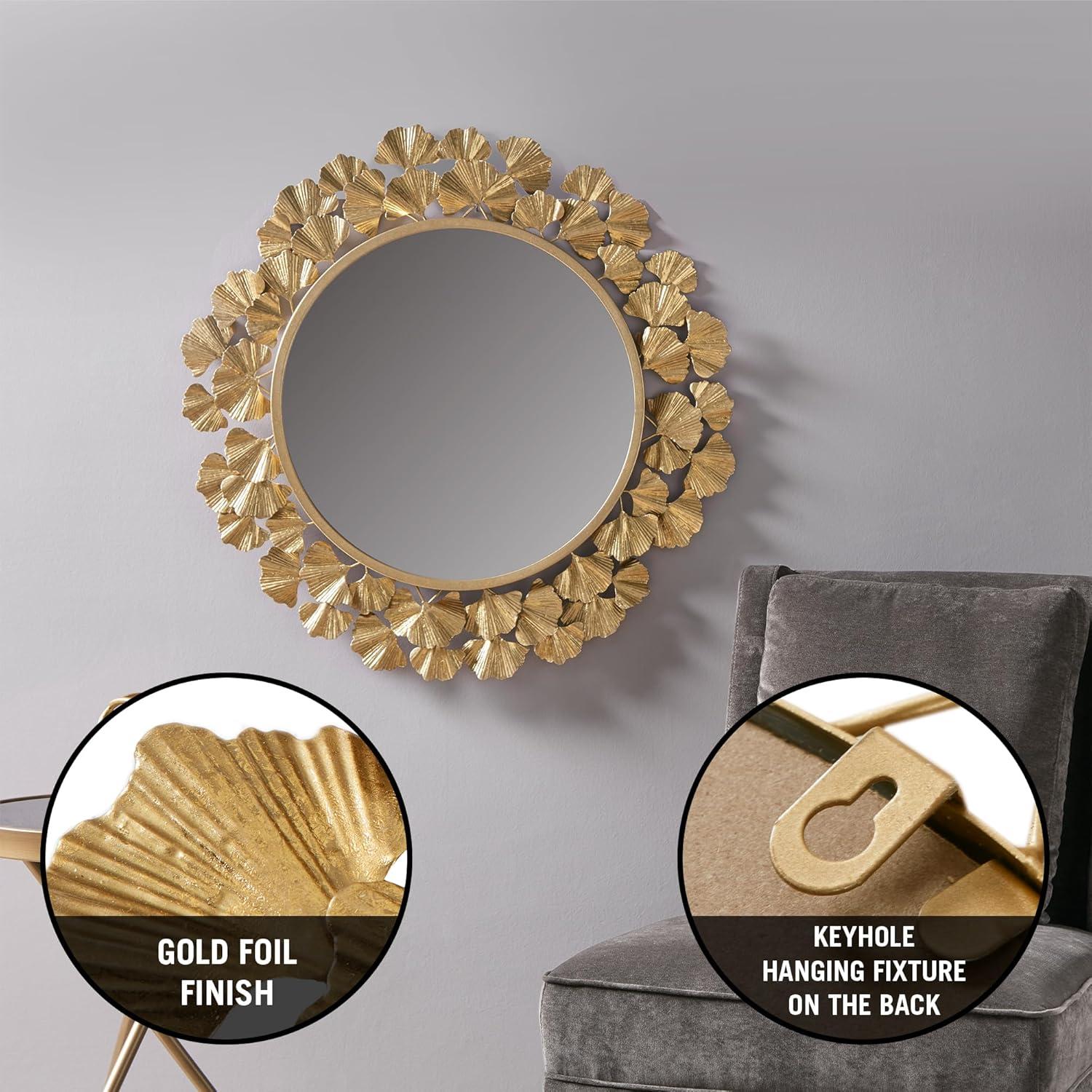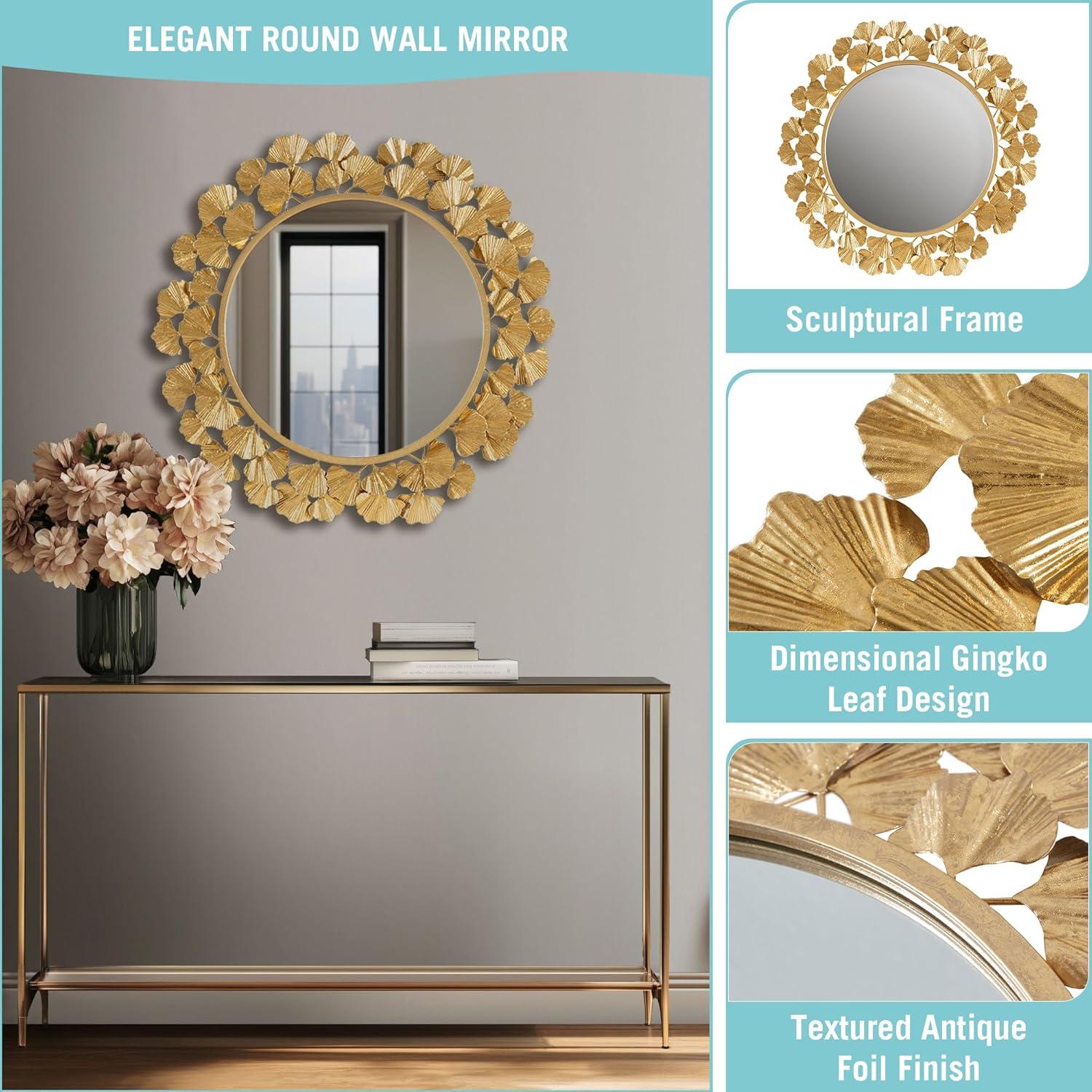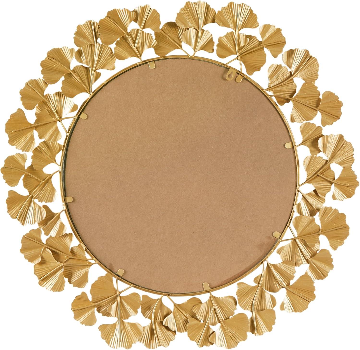 Martha Stewart Wall Décor Large Gingko Leaf Round Wall Mirror for Living Room, Iron Metal Plate Frame Antique Finish, Ready to Hang Bedroom Decoration, Eden, 30.5″, Gold(Gold)