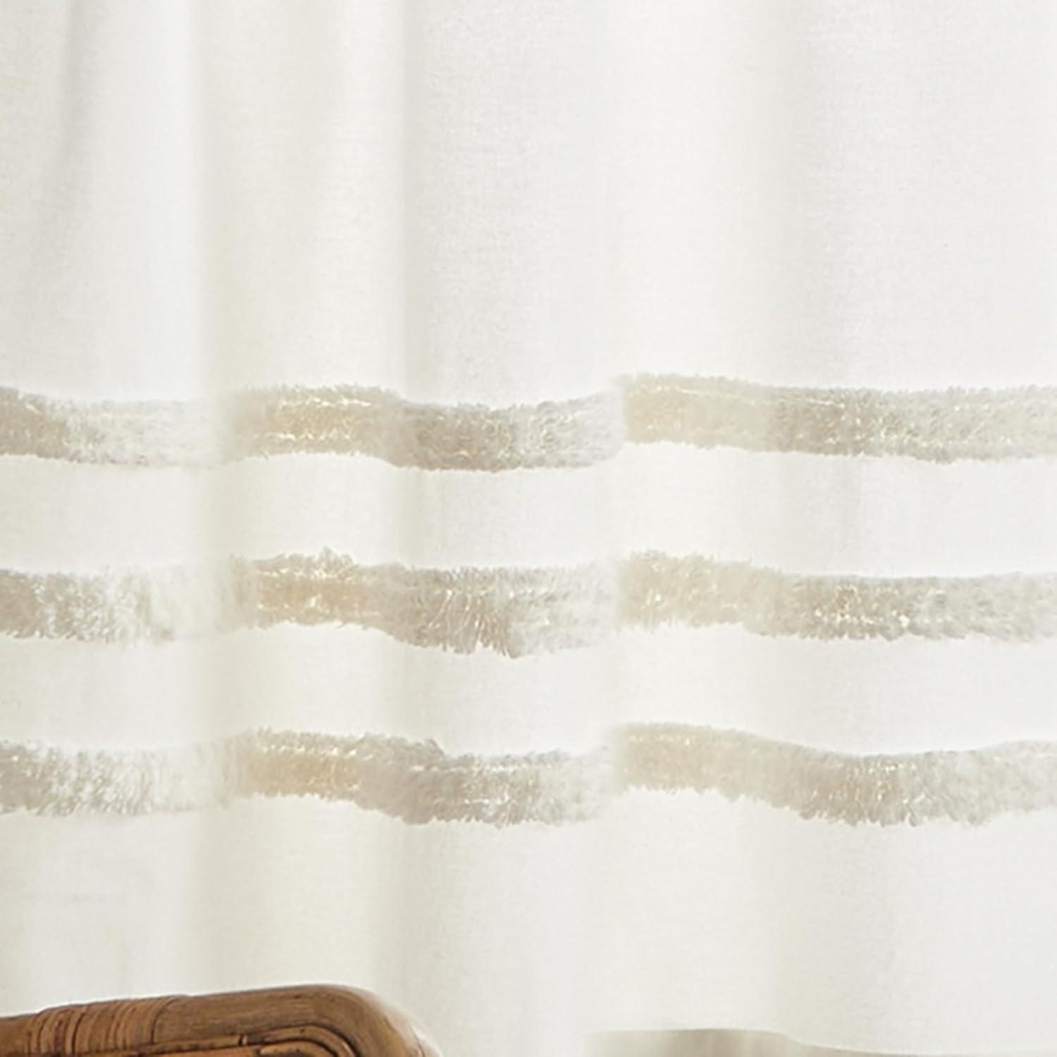 KITCHEN CURTAINS 3 piece tier and valance set; Tufted striped curtains from Martha Stewart's Lily Pond Coastal Window Collection; Unlined curtains softly filter sunlight; Creates a light and airy look