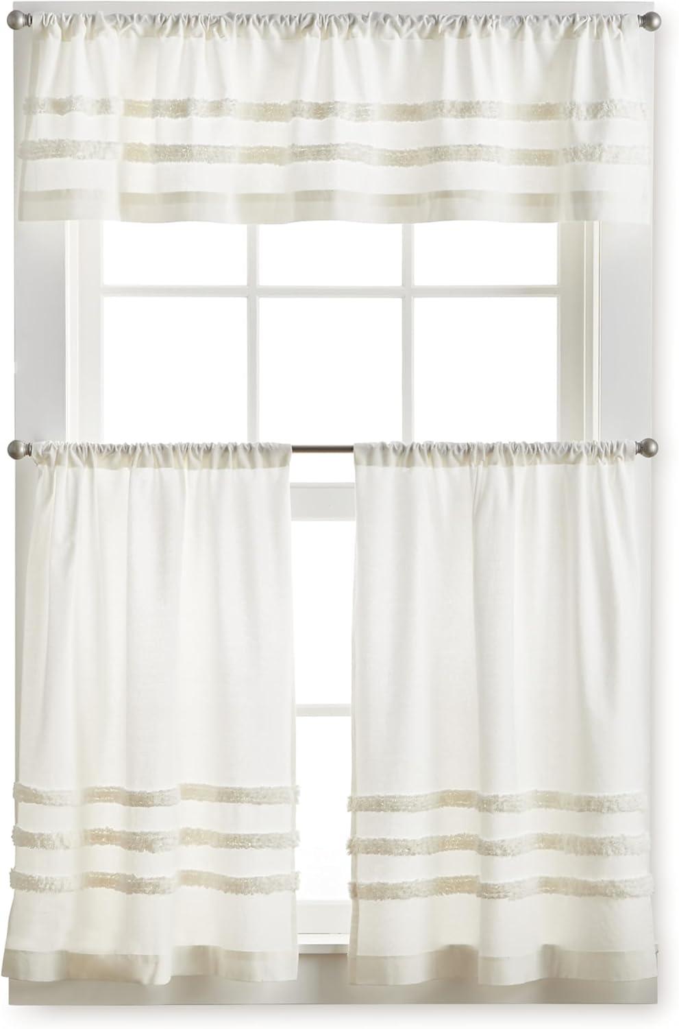 Martha Stewart Water’s Edge Tufted 3-Piece Window Curtain Valance & Tiers Set, 36″, White