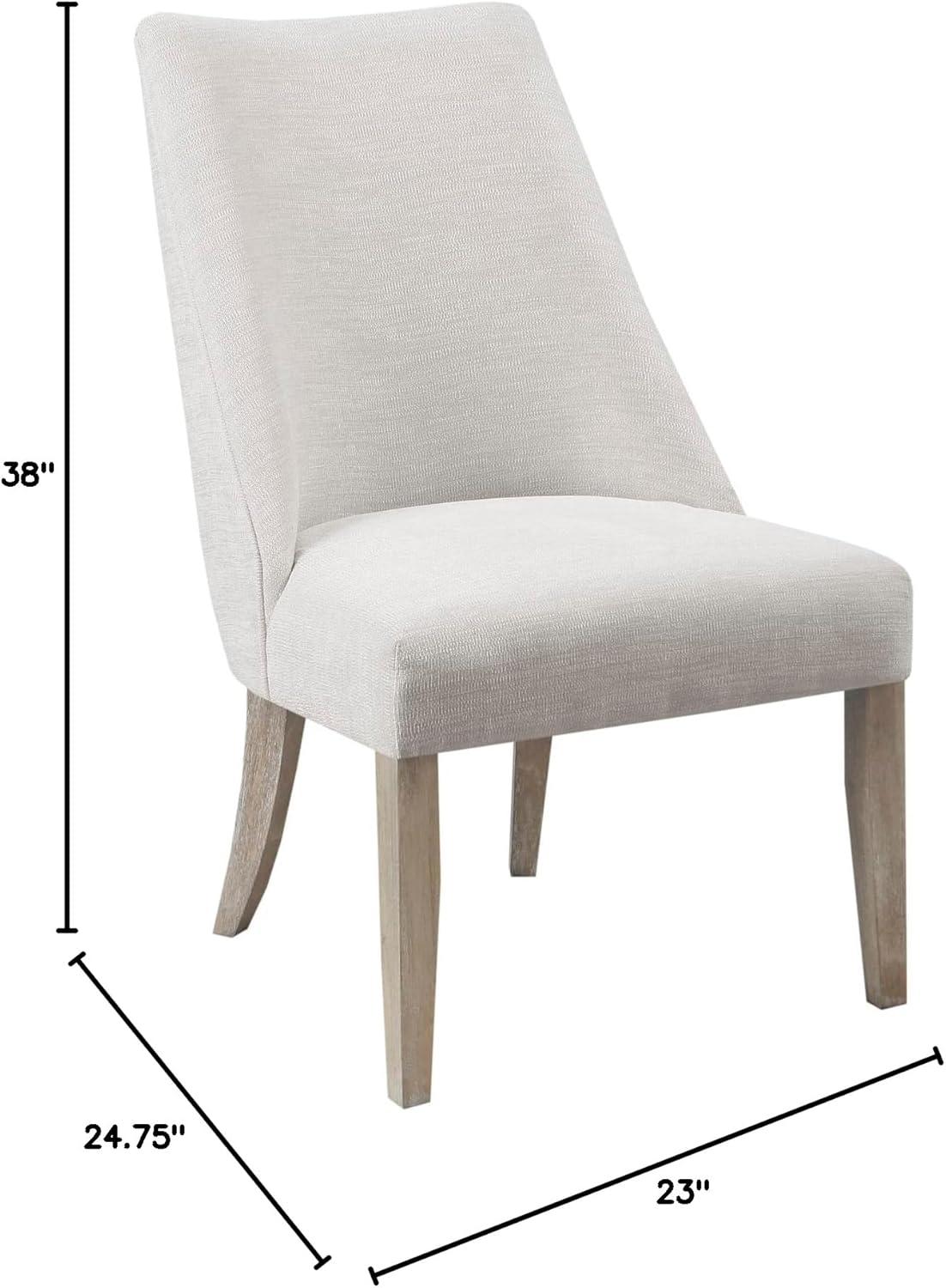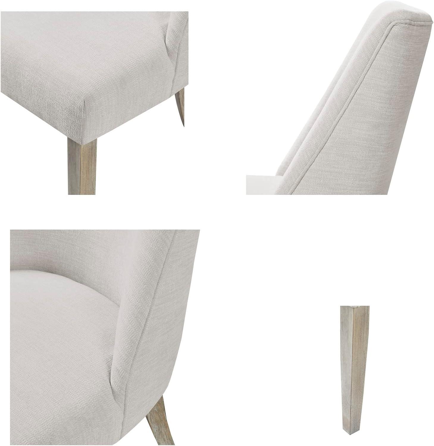 Martha Stewart Winfield Upholstered High Back Accent Dining Chairs Set of 2, Padded Seat, Solid Wood Legs, Chambray Jacquard Textured Fabric, Cottage, Farmhouse for Kitchen, Room, Light Grey(Winfield Ivory)