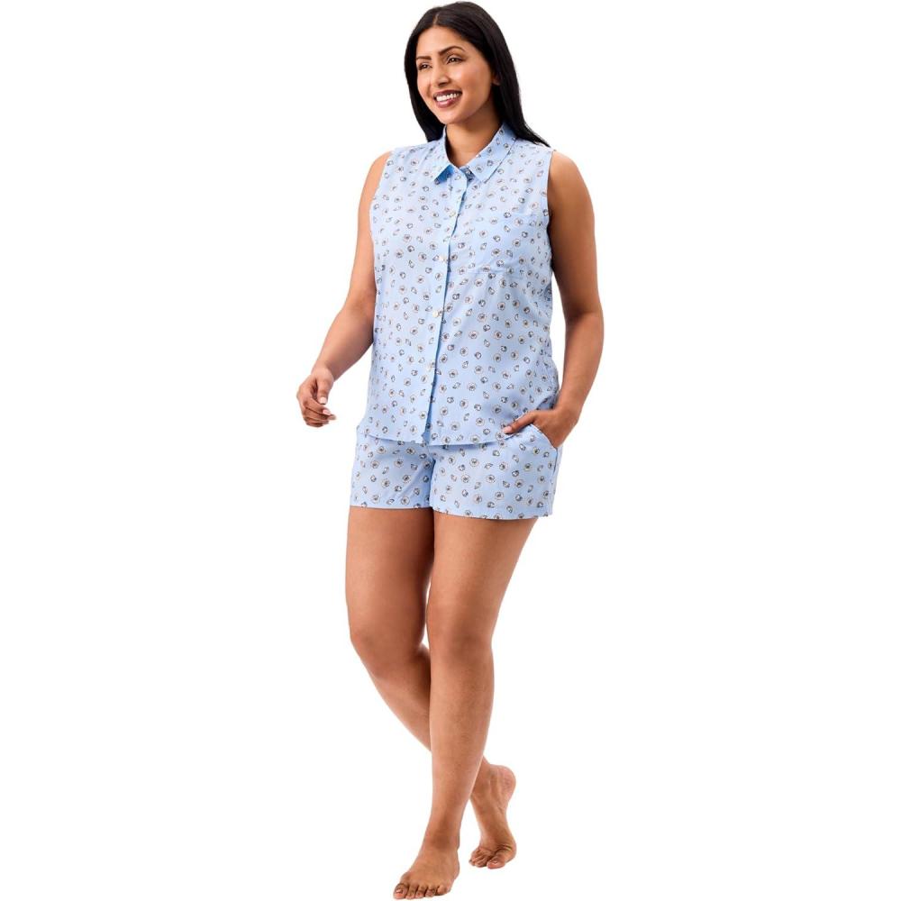 Martha Stewart Women’s Pajama Set | Soft, Breathable Sleepwear | 2-Pc Notch Collar Short Sleeve Button Down | Relaxed Comfort(Dutch Canal)