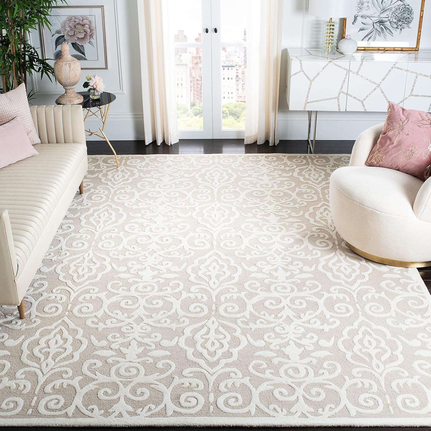 Martha Stewart x SAFAVIEH Area Rug Collection – 5′ x 8′, Whetstone Grey, Handmade Wool, Marais Scroll Design, Ideal for Living Room, Bedroom, Office, Dining Space (MSR4324A)(Fledgling)