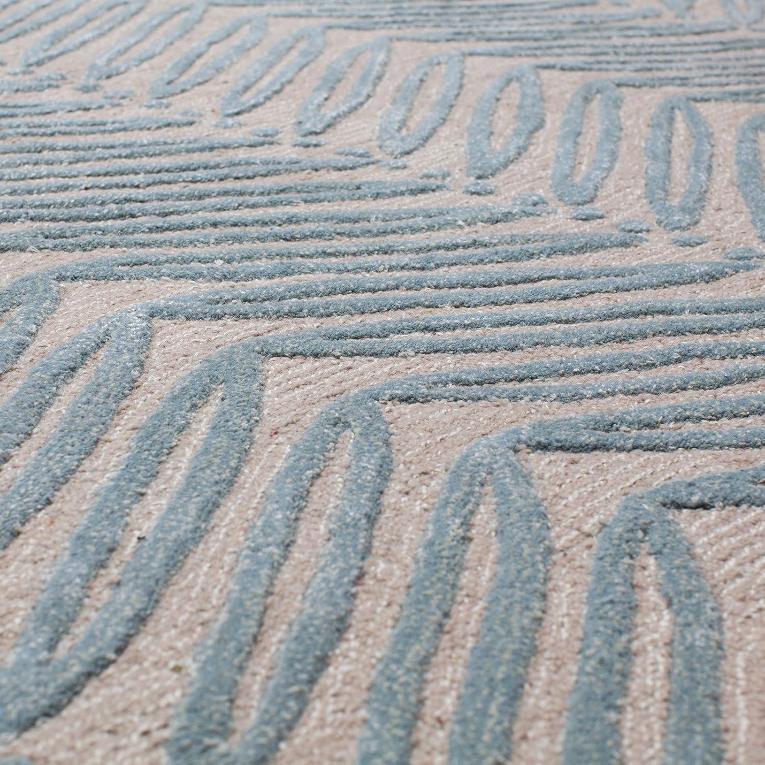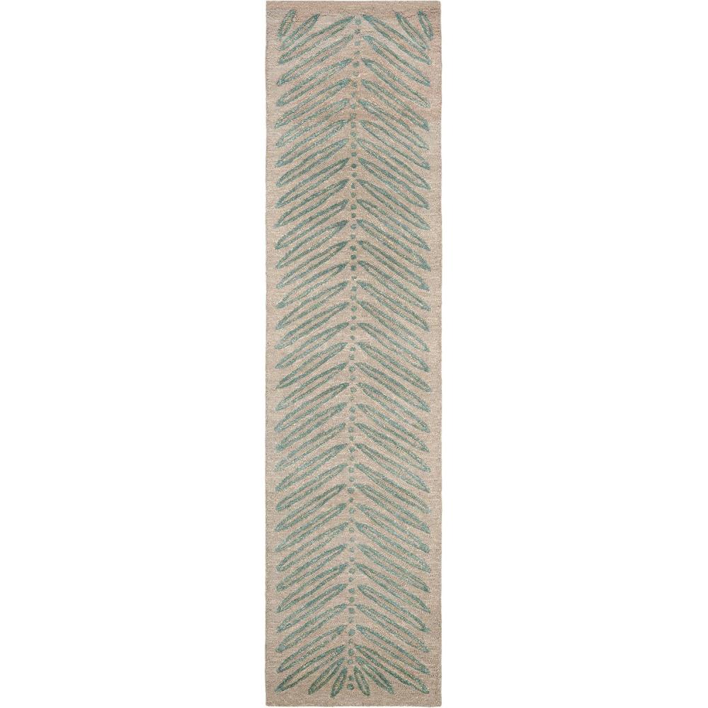 Inspired by a vintage printed paper, the foliage of Chevron Leaves has been dramatically increased in scale to create an unexpected yet decidedly elegant stripe. Cut-pile viscose yarns add depth and dimension to the loop pile New Zealand wool ground. Rendered in a palette of pale fashion colors, this transitional design is hand-tufted by skilled artisans in India.