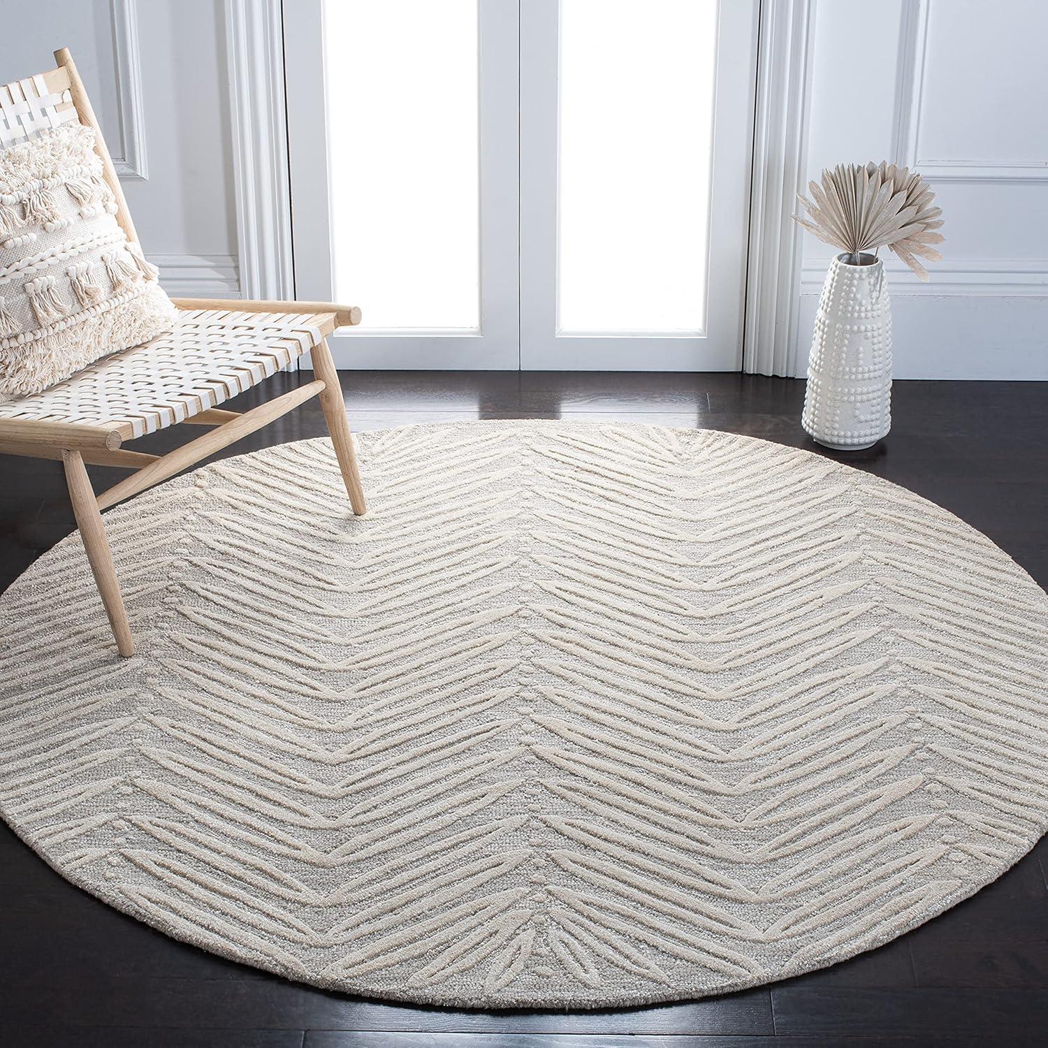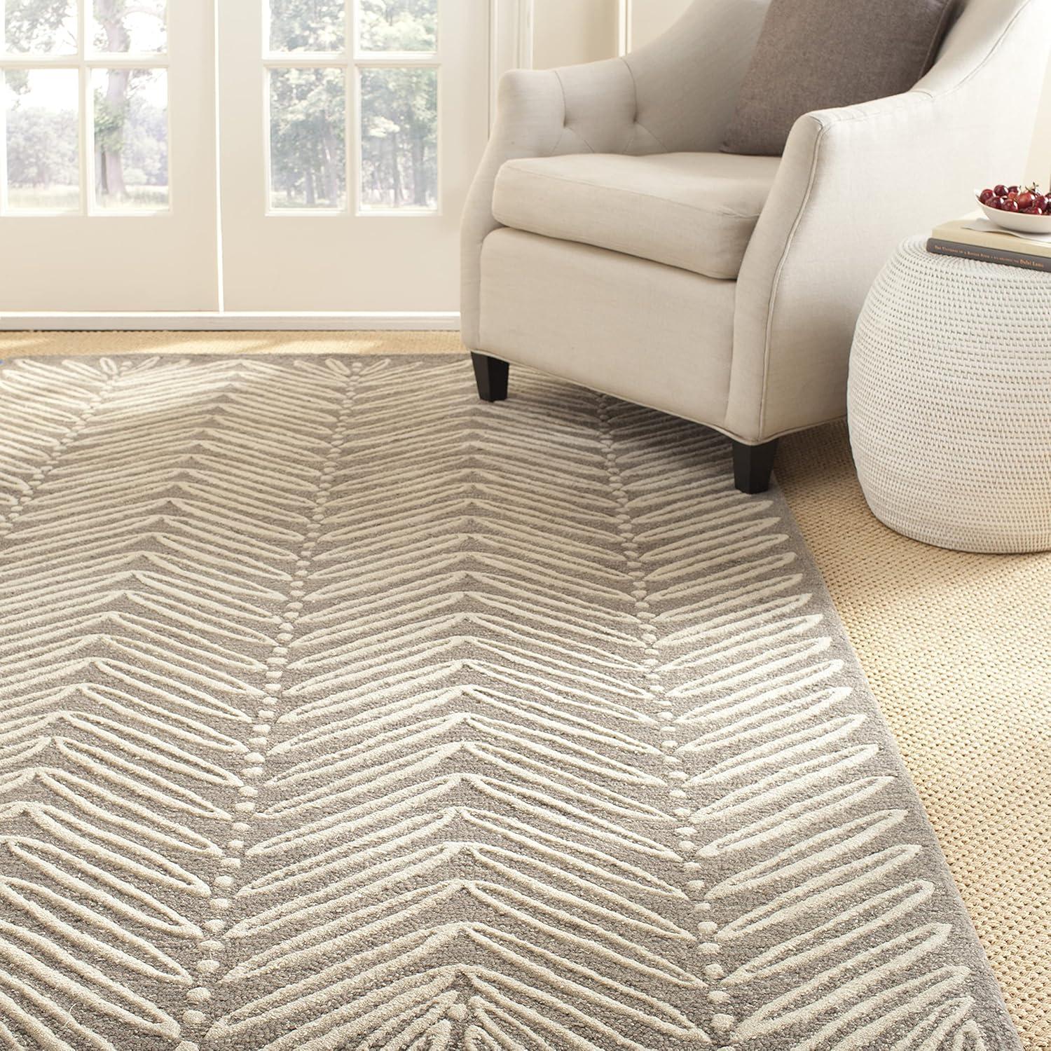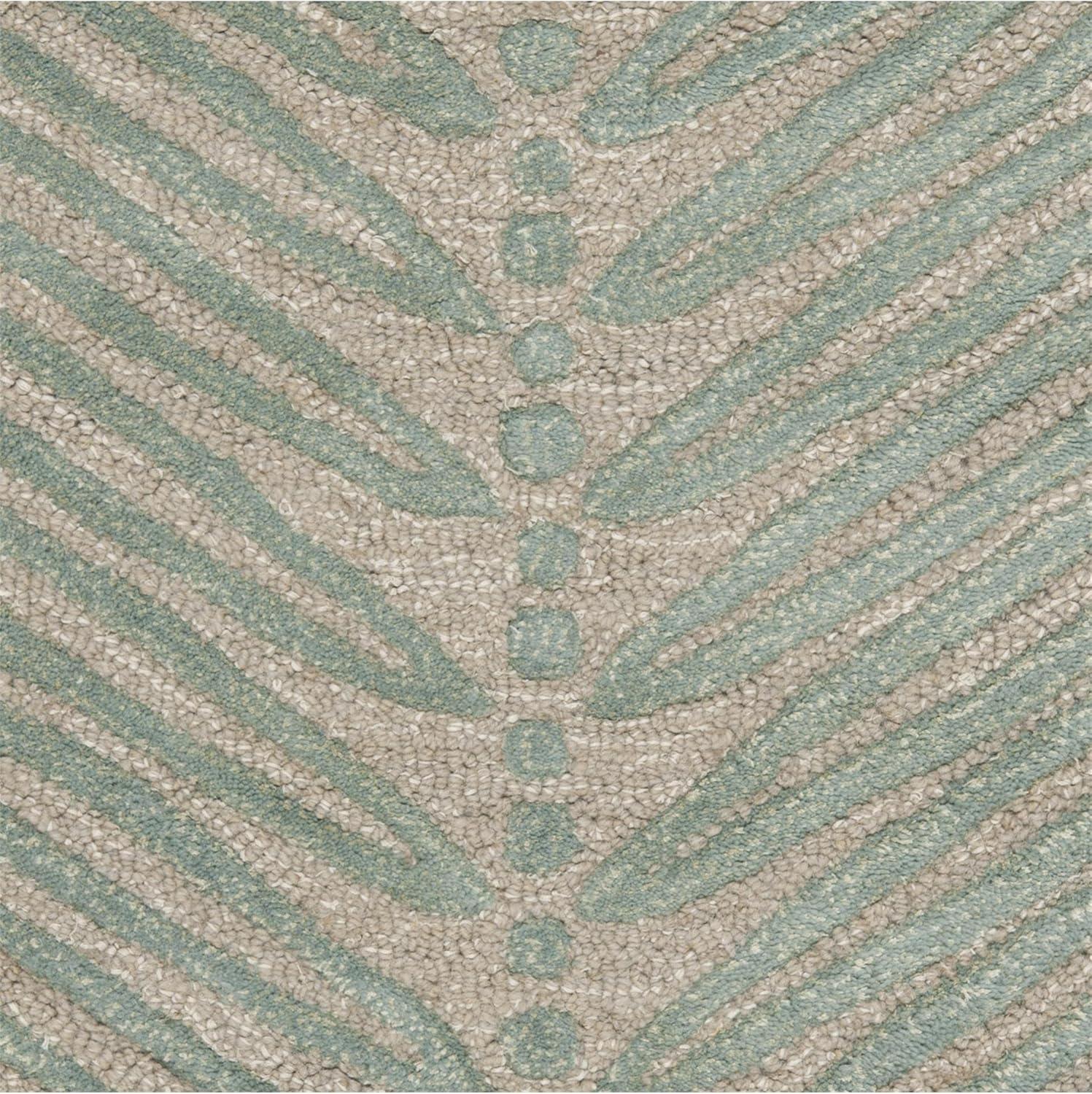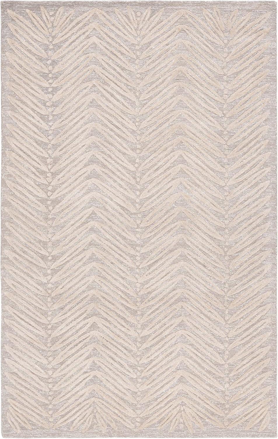Inspired by a vintage printed paper, the foliage of Chevron Leaves has been dramatically increased in scale to create an unexpected yet decidedly elegant stripe. Cut-pile viscose yarns add depth and dimension to the loop pile New Zealand wool ground. Rendered in a palette of pale fashion colors, this transitional design is hand-tufted by skilled artisans in India.