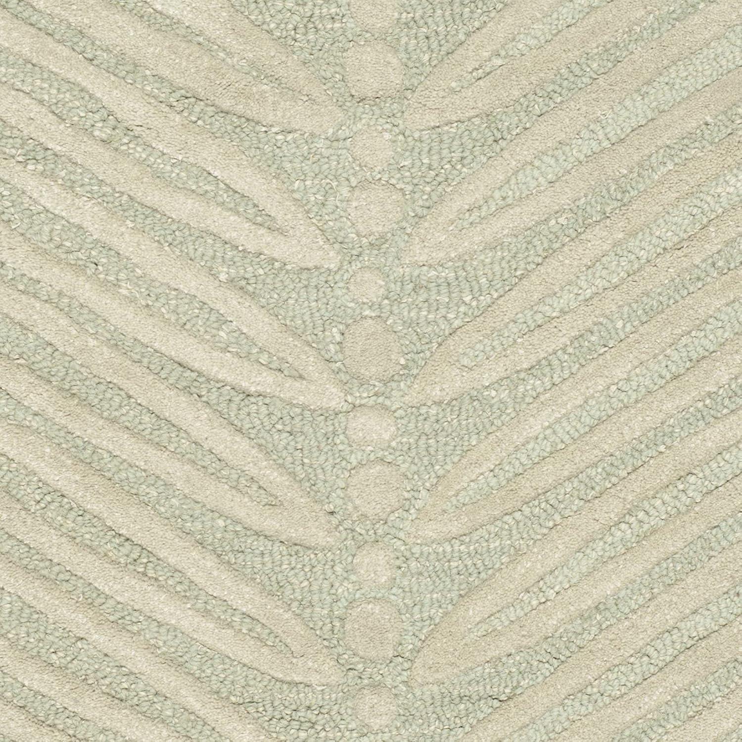 Inspired by a vintage printed paper, the foliage of Chevron Leaves has been dramatically increased in scale to create an unexpected yet decidedly elegant stripe. Cut-pile viscose yarns add depth and dimension to the loop pile New Zealand wool ground. Rendered in a palette of pale fashion colors, this transitional design is hand-tufted by skilled artisans in India.