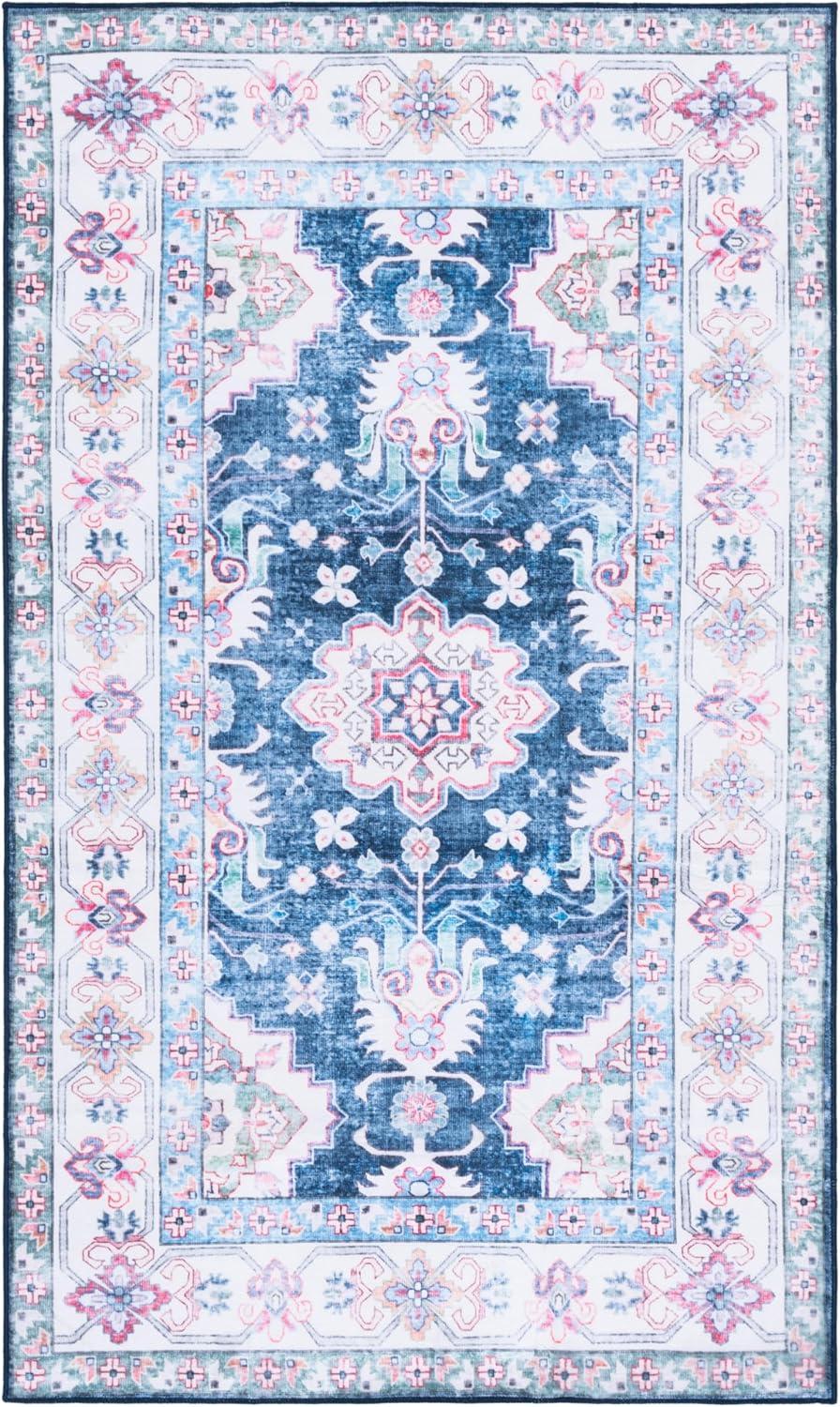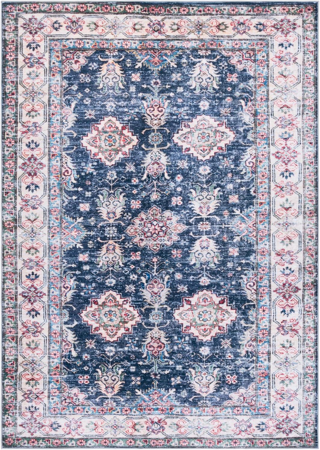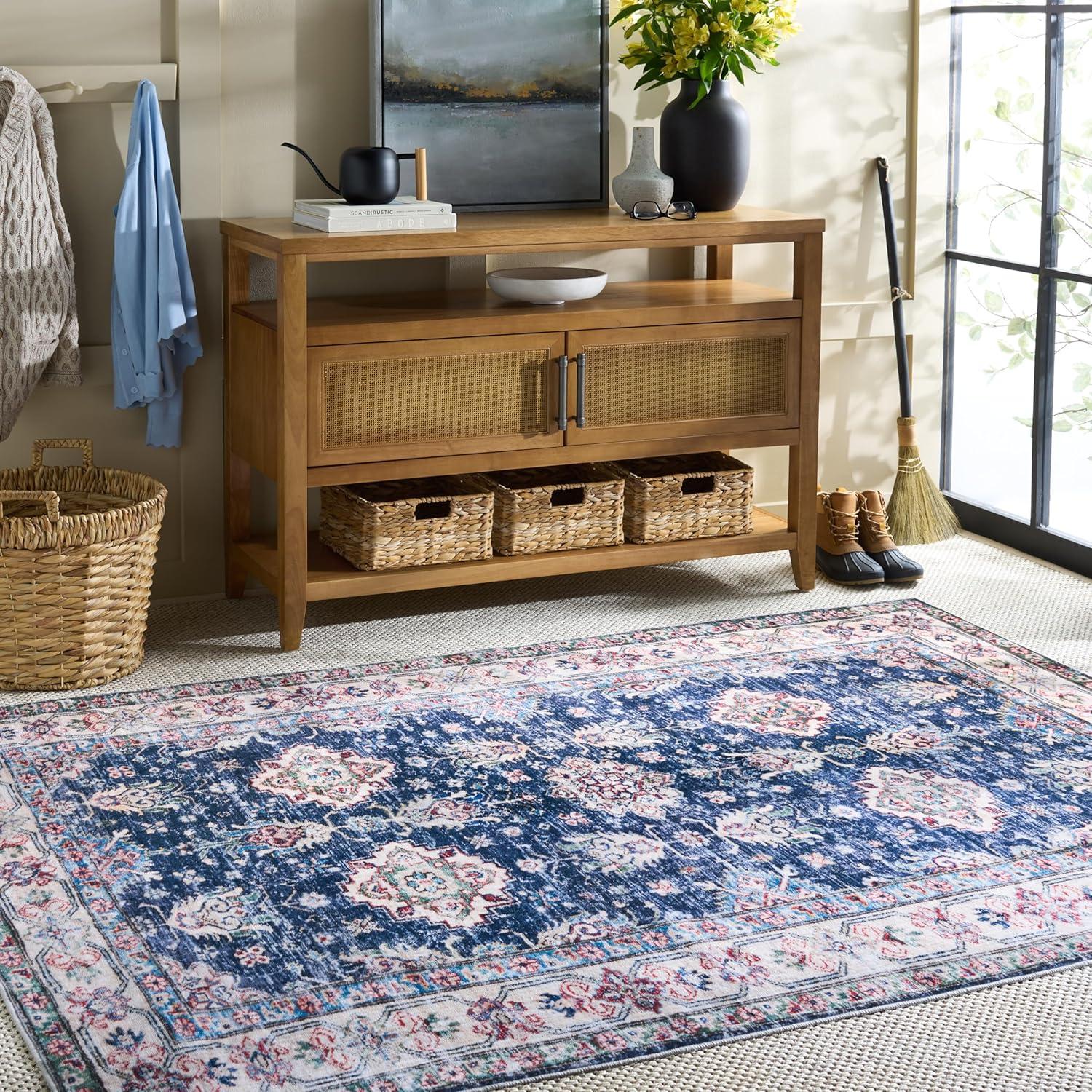 Martha Stewart x SAFAVIEH Machine Washable Area Rug Collection – 5′ x 8′, Navy & Beige, Slip Resistant & Easy Cleaning, Ideal for Ideal for Living Room, Bedroom, Dining Space (MSRW196N)(Navy/Beige)
