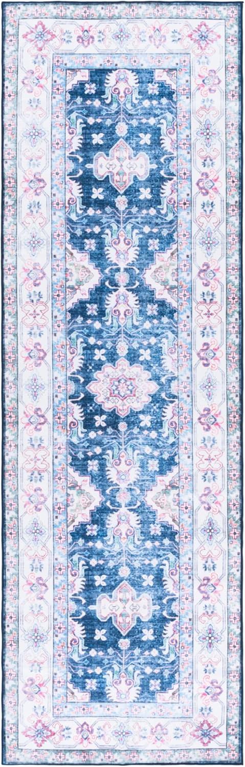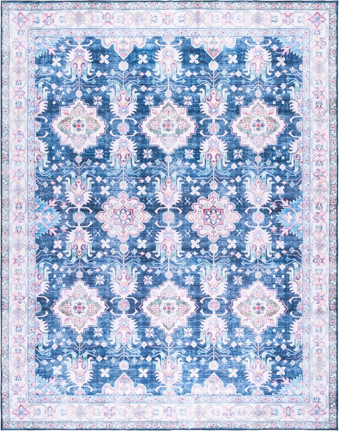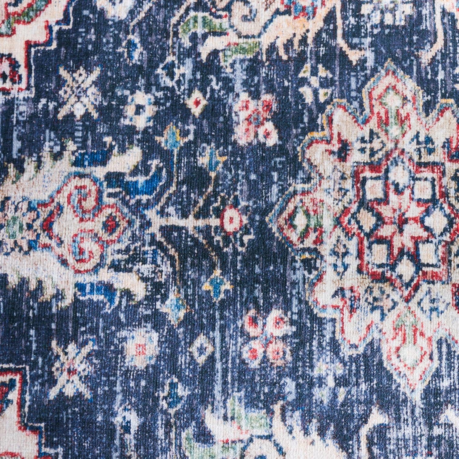 Martha Stewart x SAFAVIEH Machine Washable Area Rug Collection – 5′ x 8′, Navy & Beige, Slip Resistant & Easy Cleaning, Ideal for Ideal for Living Room, Bedroom, Dining Space (MSRW196N)(Navy/Beige)