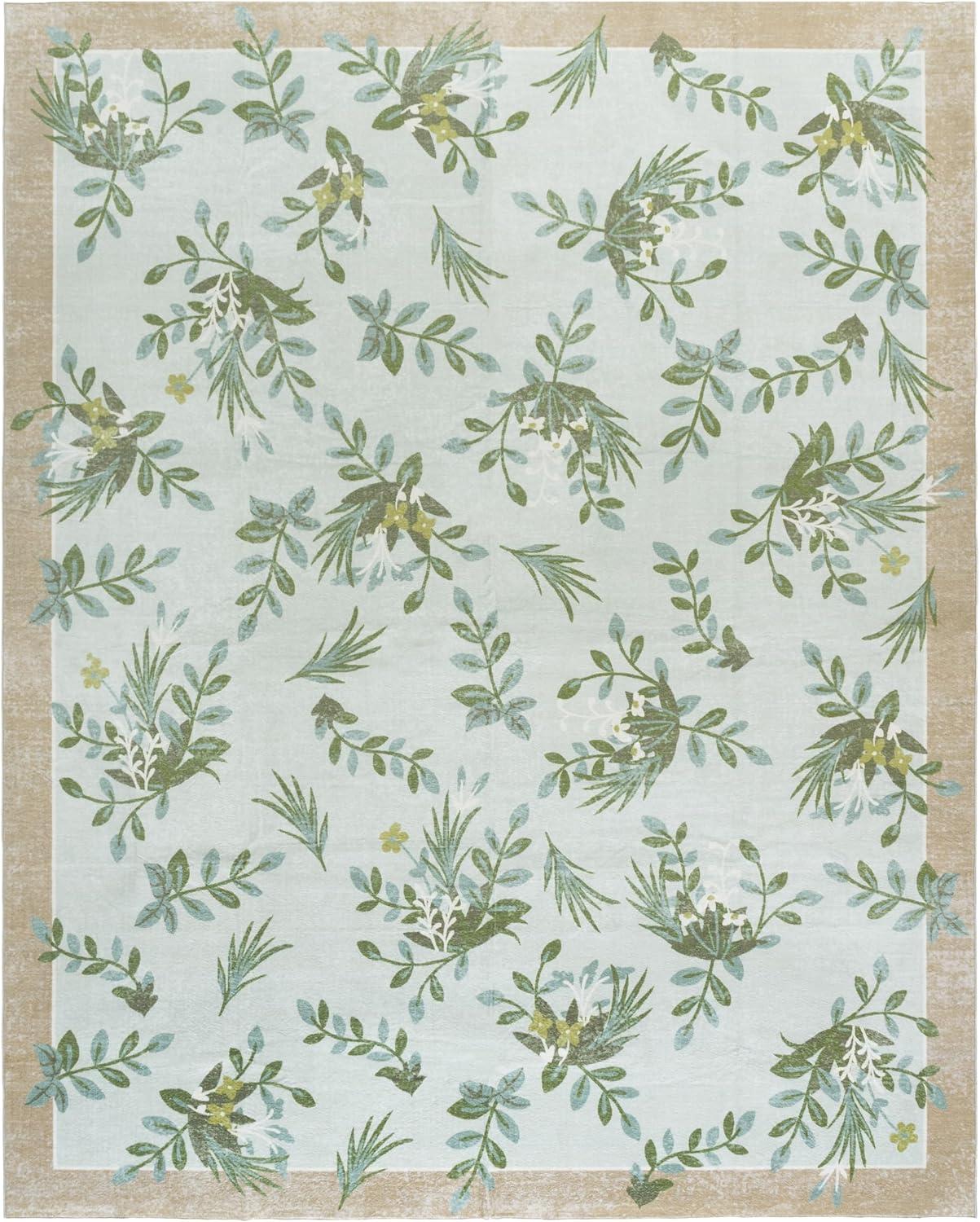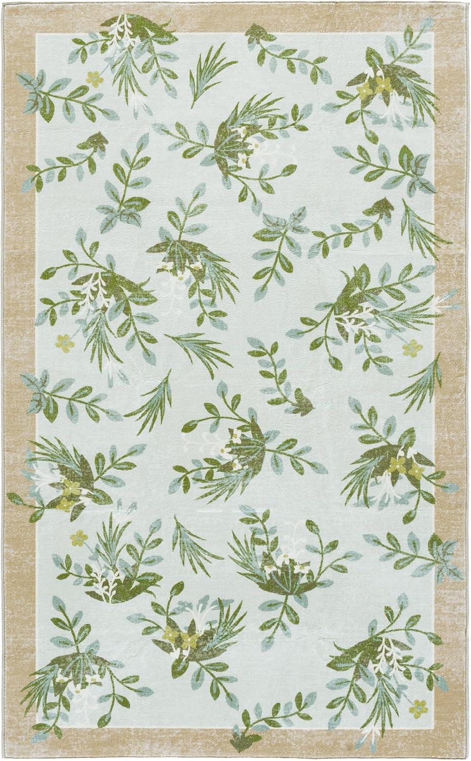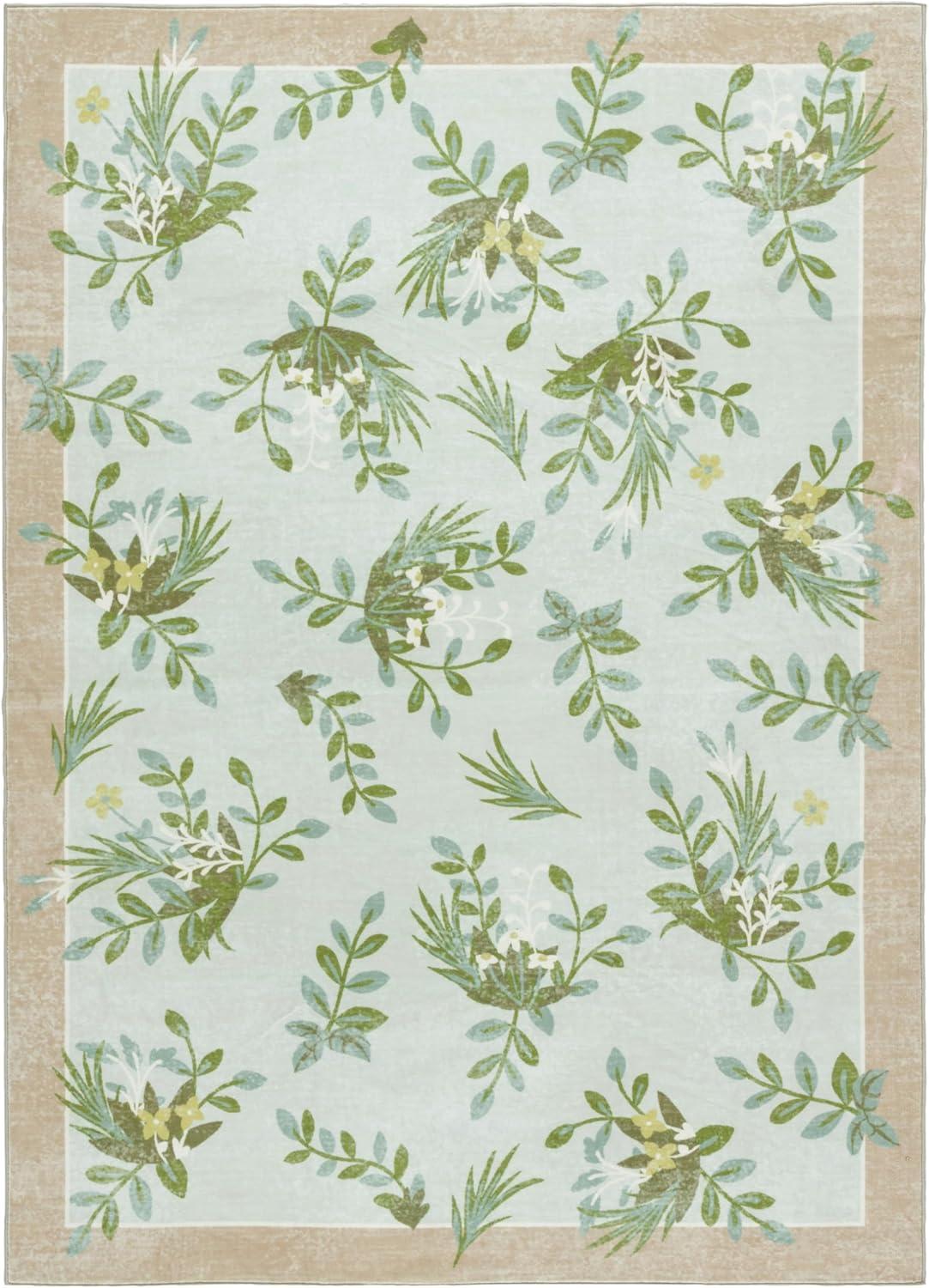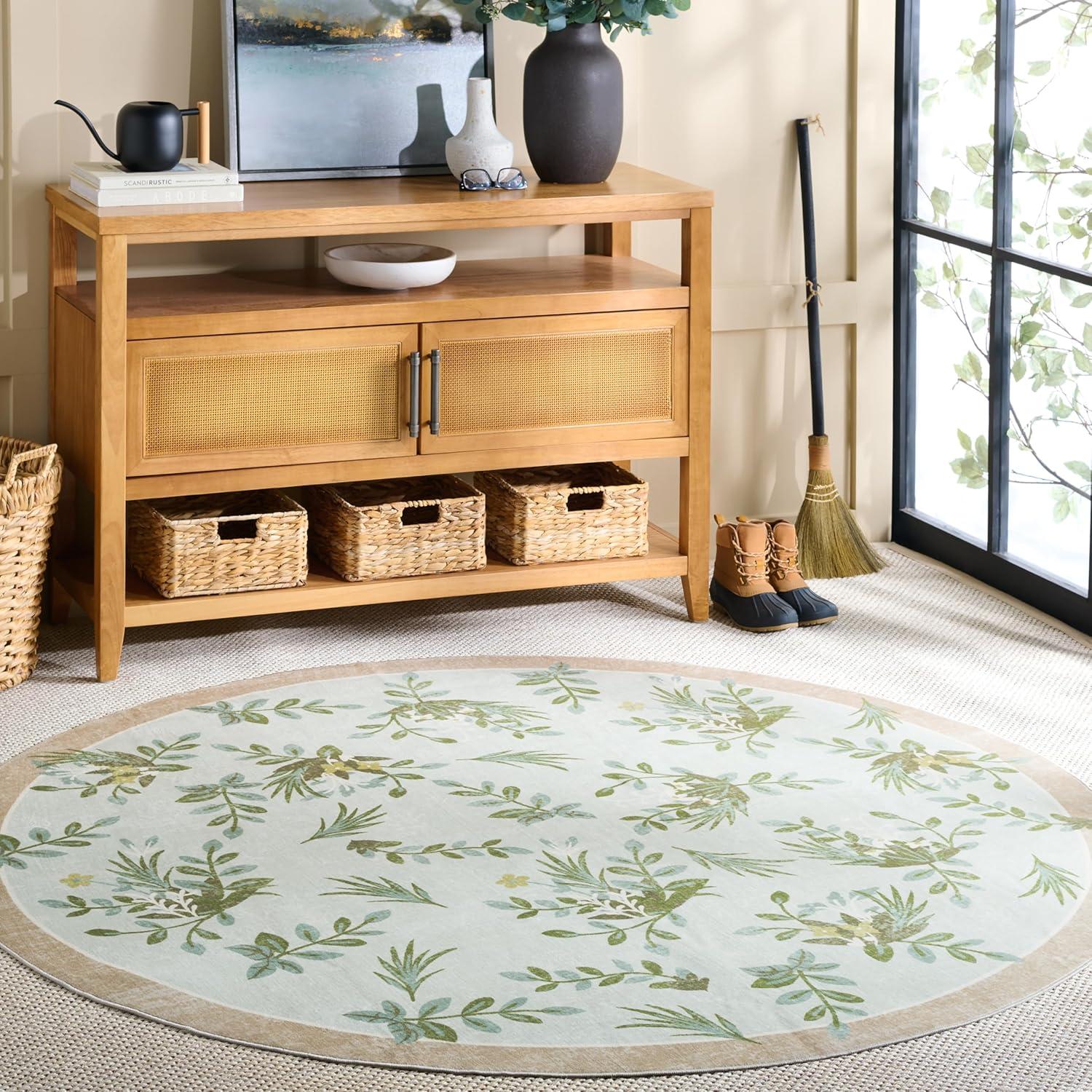 Martha Stewart x SAFAVIEH Machine Washable Area Rug Collection – 5′ x 8′, Taupe & Green, Slip Resistant & Easy Cleaning, Ideal for Ideal for Living Room, Bedroom, Dining Space (MSRW193E)(Taupe/Green)