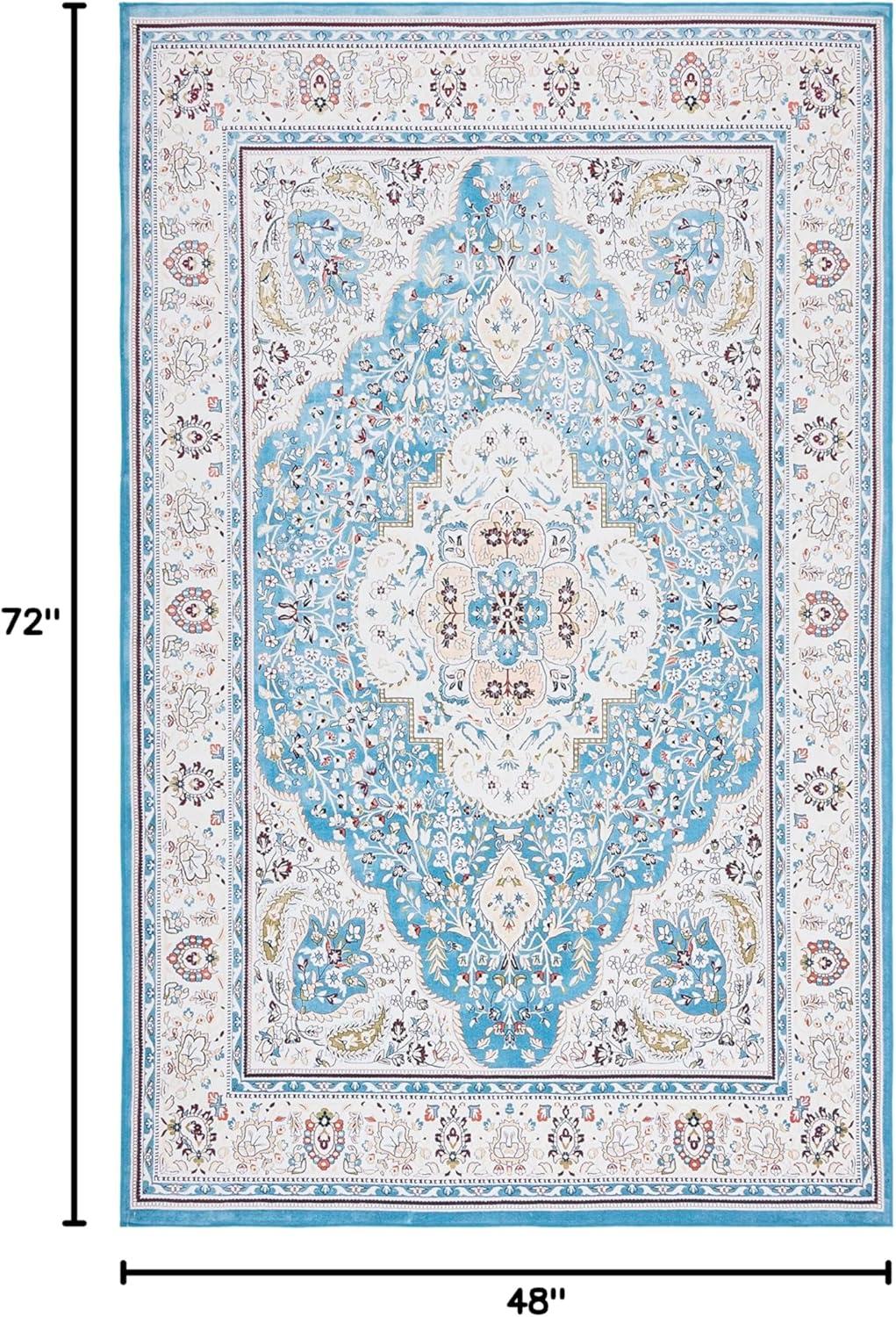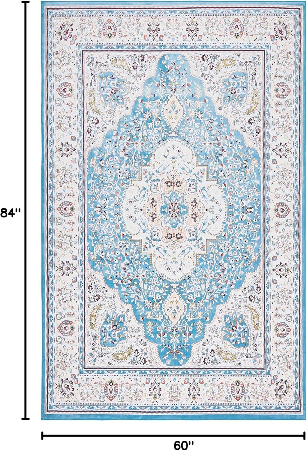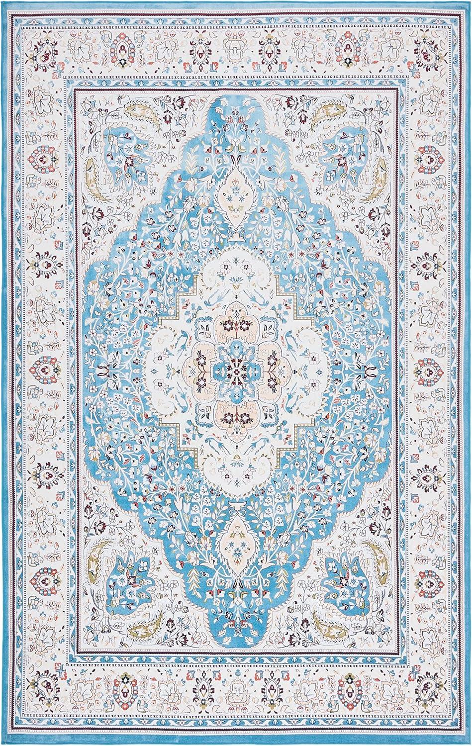 Martha Stewart x SAFAVIEH Machine Washable Area Rug Collection – 5′ x 8′, Turquoise & Beige, Slip Resistant & Easy Cleaning, Ideal for Ideal for Living Room, Bedroom, Dining Space (MSRW136K)(Turquoise/Beige)