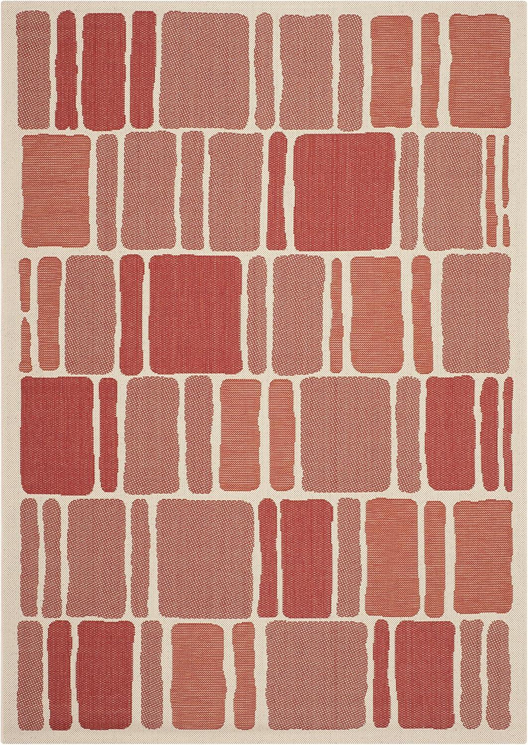 Martha Stewart x SAFAVIEH Outdoor Area Rug Collection – 8′ x 11’2″, Cream & Sweet Pea, Weather Resistant & Washable, Ideal for Patio, Backyard, Mudroom, Deck, Dining Space (MSR4289-325)(Beige/Red)