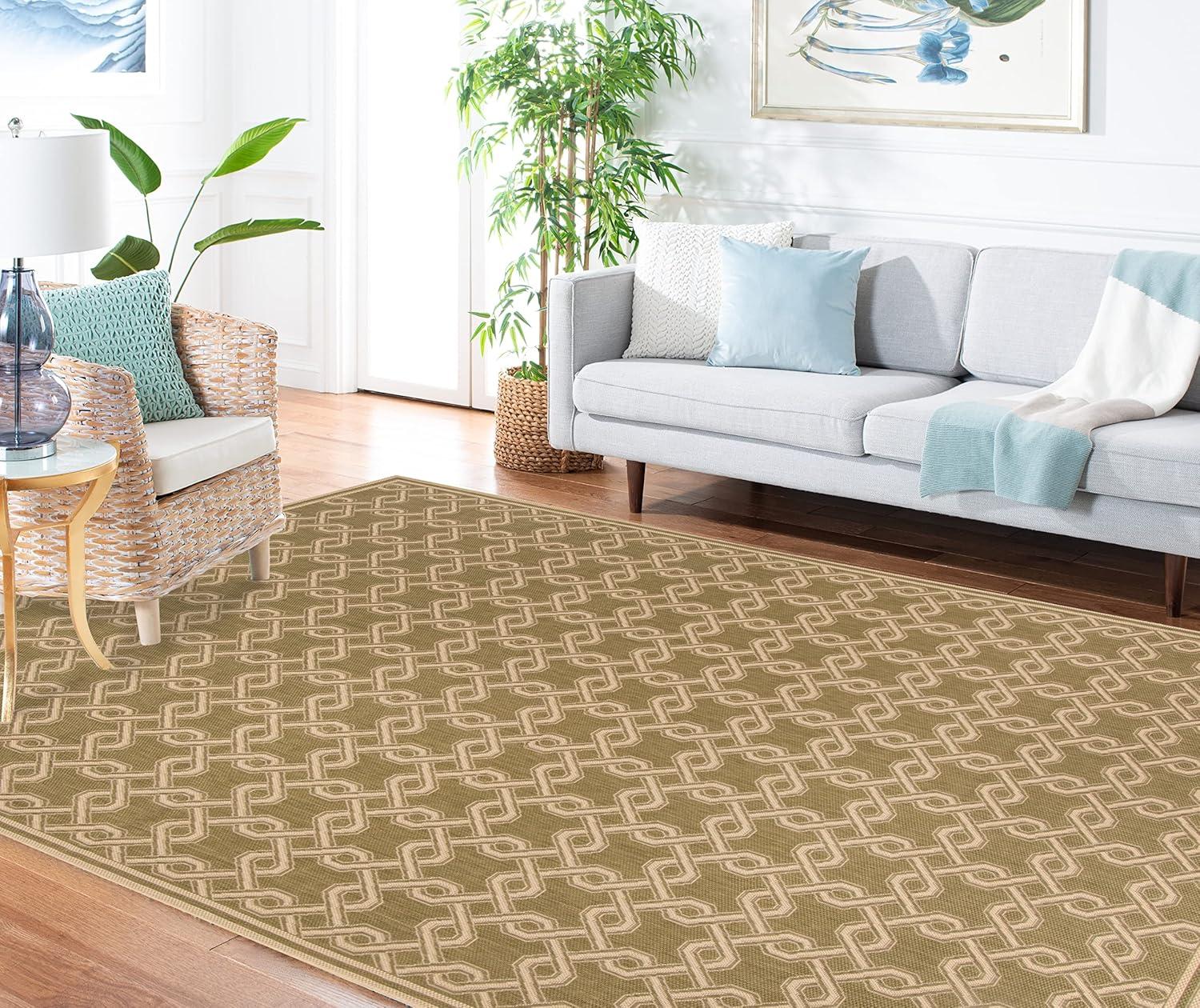 Martha Stewart x SAFAVIEH Outdoor Area Rug Collection – 8′ x 11’2″, Green & Cream, Weather Resistant & Washable, Ideal for Patio, Backyard, Mudroom, Deck, Dining Space (MSR4253-24)(Green/Creme)