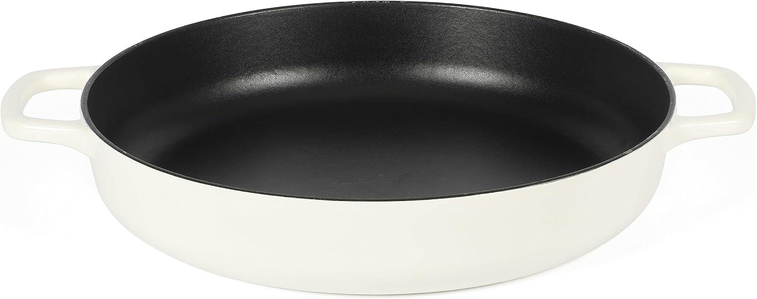 Sur La Table Kitchen Essentials 3.75 Quart Enamel Cast Iron All In One Multi-Purpose Non-Toxic Nonstick Braiser Pan W/Borosilicate Glass Lid – Red(Linen White)