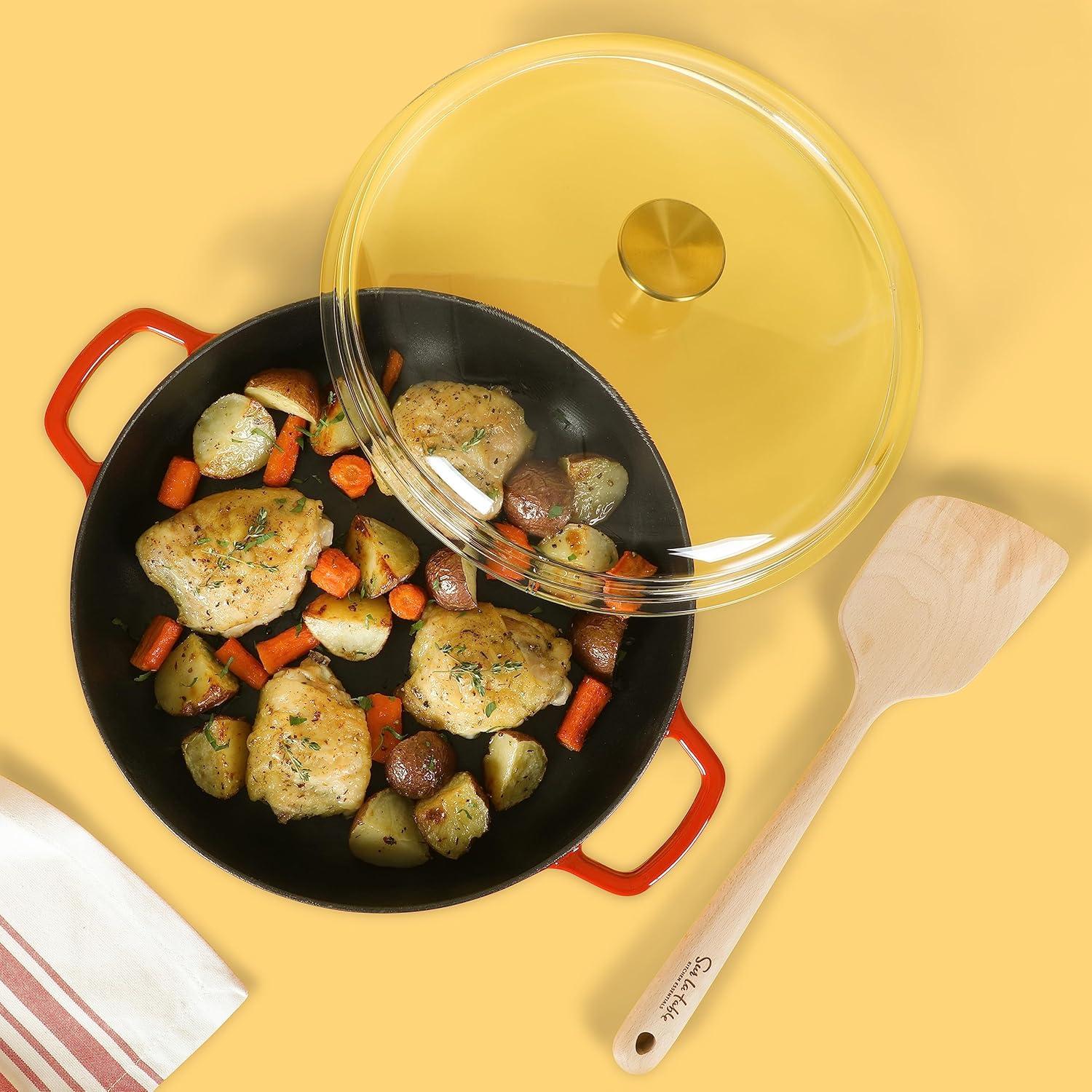 Sur La Table Kitchen Essentials 3.75 Quart Enamel Cast Iron All In One Multi-Purpose Non-Toxic Nonstick Braiser Pan W/Borosilicate Glass Lid – Red(Red)
