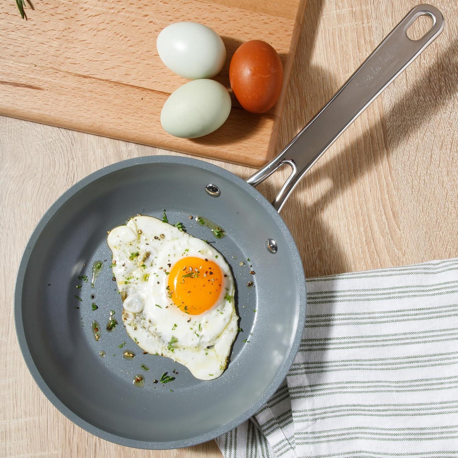 Sur La Table Kitchen Essentials Cool Commune Hard Anodized 10 Piece PFA Free Ceramic Non stick Interior Forged Durable Aluminum Pots and Pans Cookware Set – Green – Induction Compatible(Green (Hard Anodized Aluminum))