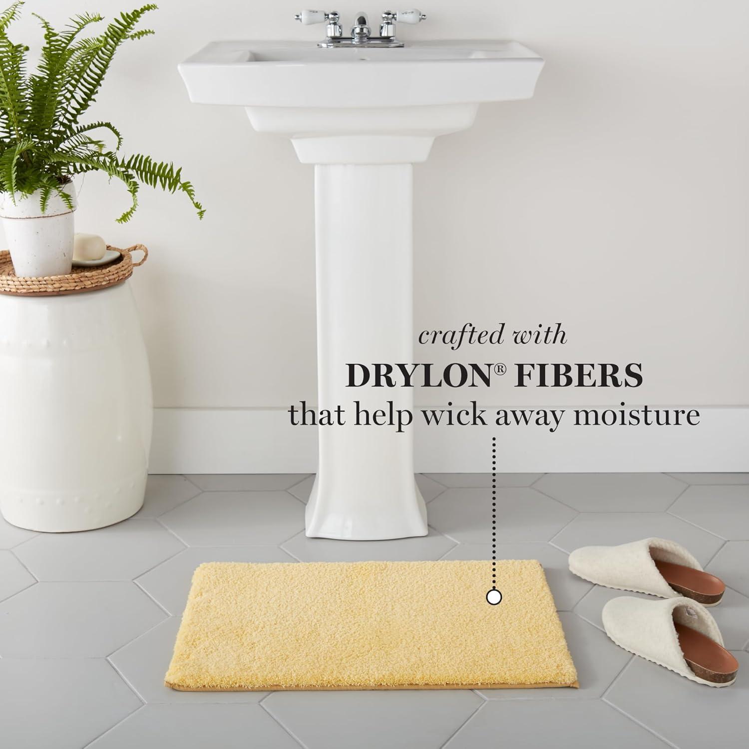 MARTHA STEWART Drylon Microfiber Bath Rug – 1 Piece, Ultra Soft Plush, Non-Slip, Thick, Washable Bathroom Rugs, Home Decor Accessories, Household Essentials, Large Bath Mat, 21″ x 34″, Navy Blue(Yellow)