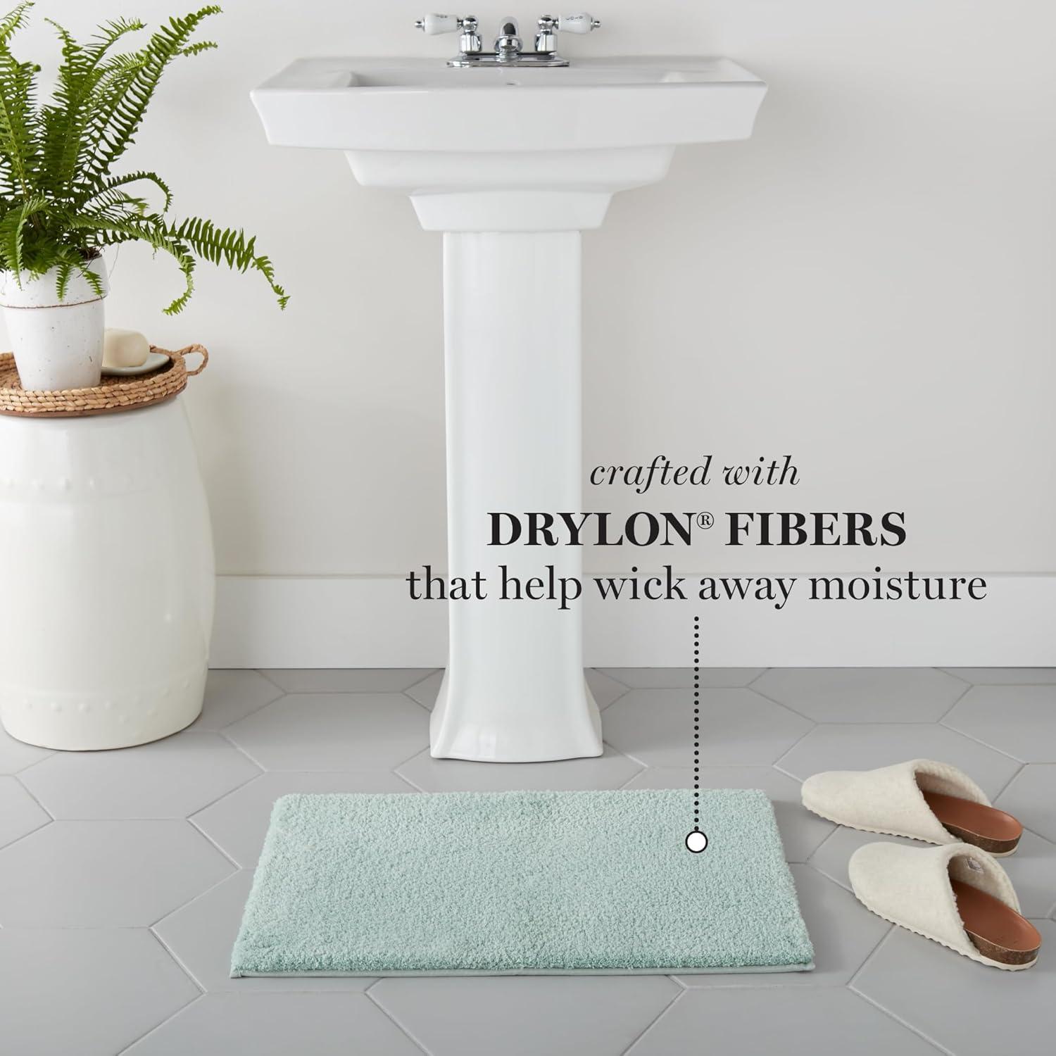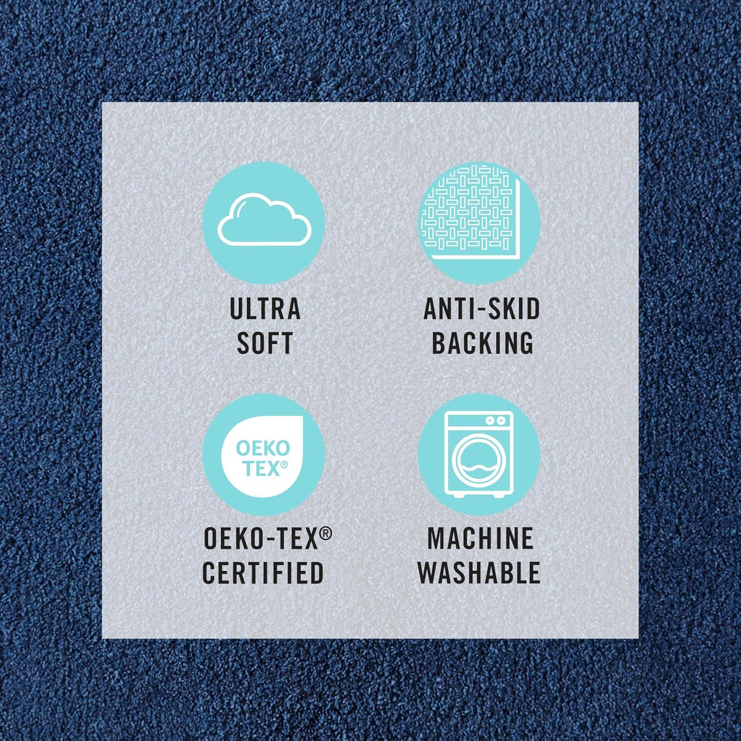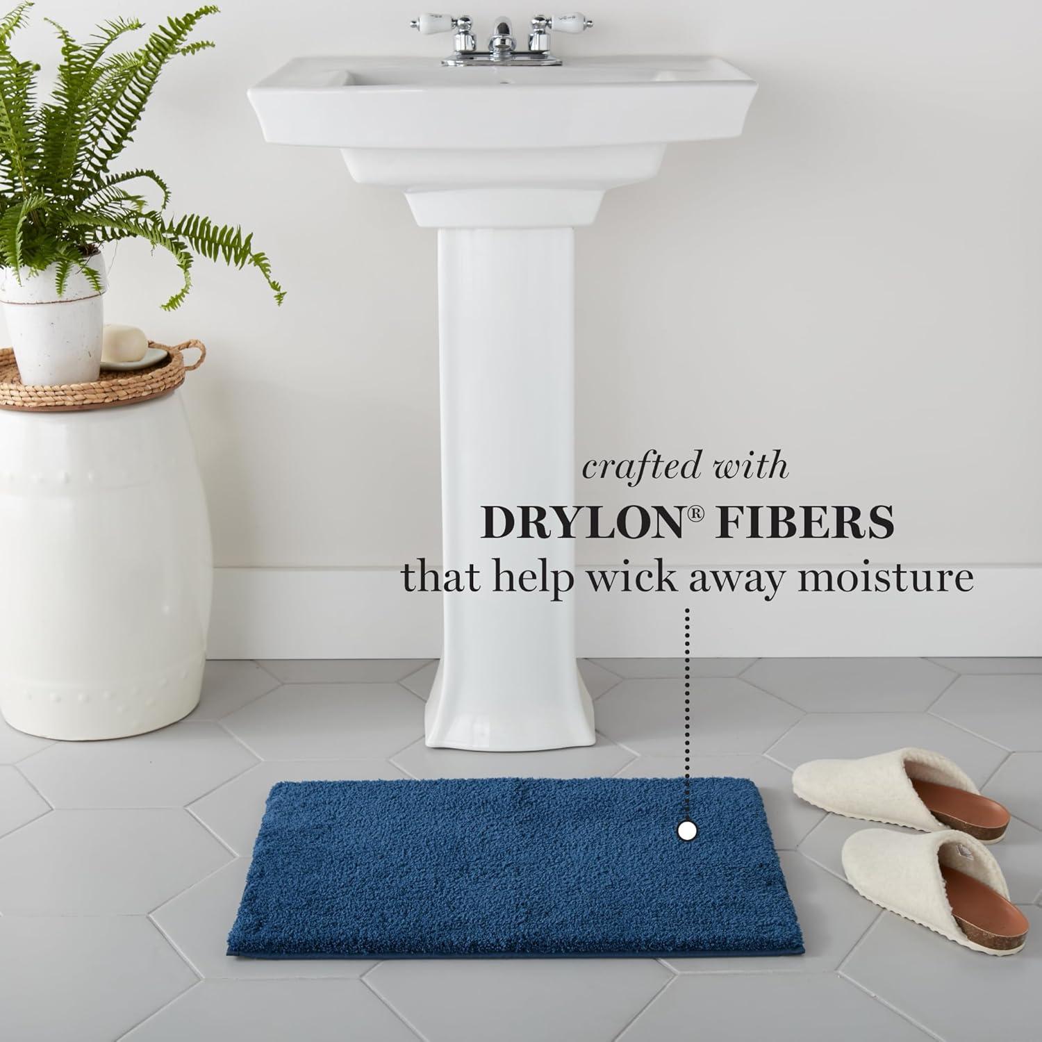 MARTHA STEWART Drylon Microfiber Bath Rug – 1 Piece, Ultra Soft Plush, Non-Slip, Thick, Washable Bathroom Rugs, Home Decor Accessories, Household Essentials, Large Bath Mat, 21″ x 34″, Navy Blue(Aqua)