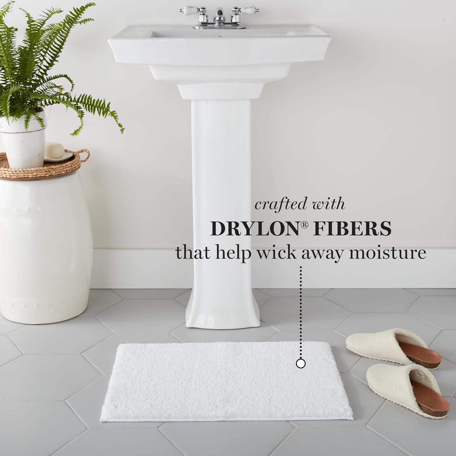 MARTHA STEWART Drylon Microfiber Bath Rug – 1 Piece, Ultra Soft Plush, Non-Slip, Thick, Washable Bathroom Rugs, Home Decor Accessories, Household Essentials, Large Bath Mat, 21″ x 34″, Navy Blue(White)