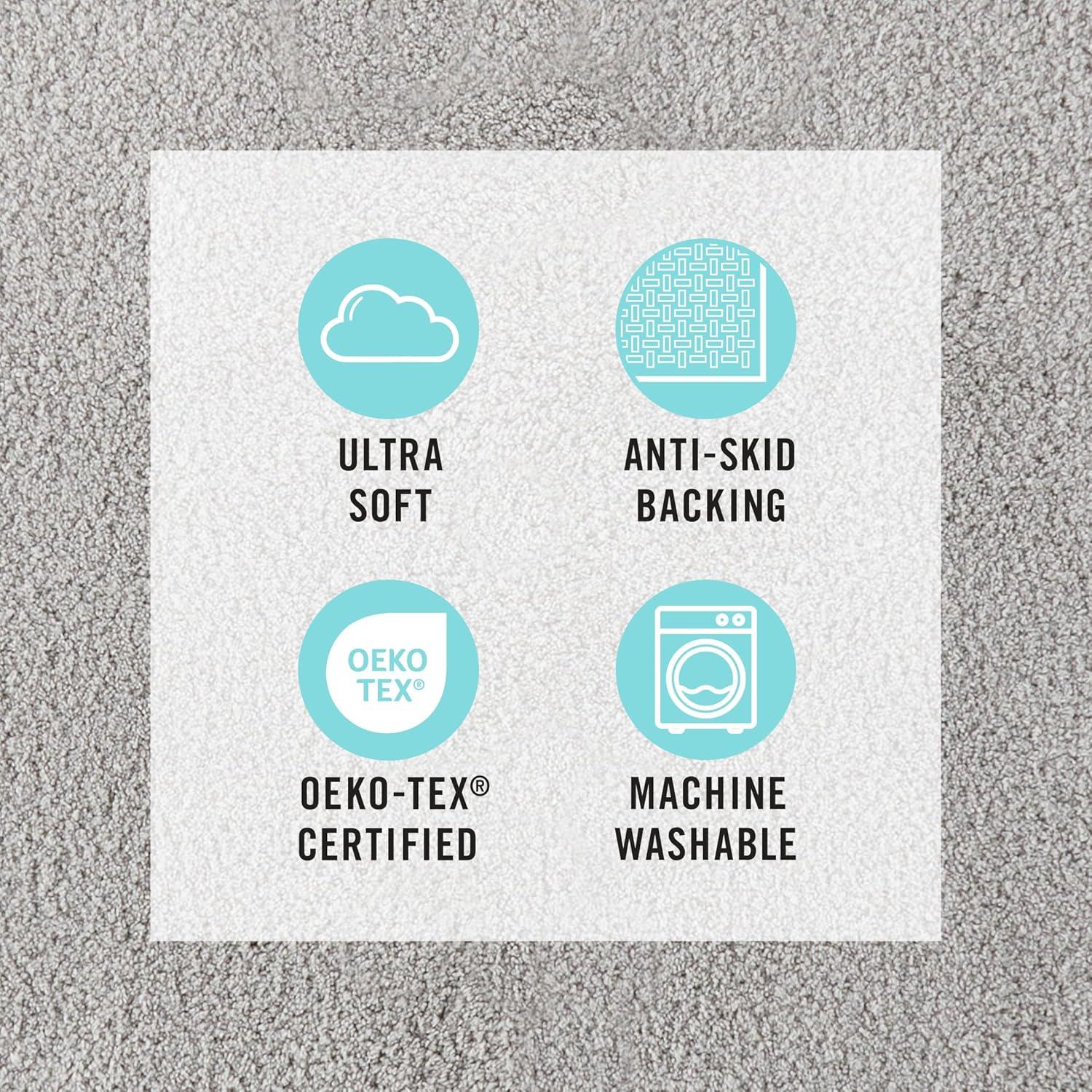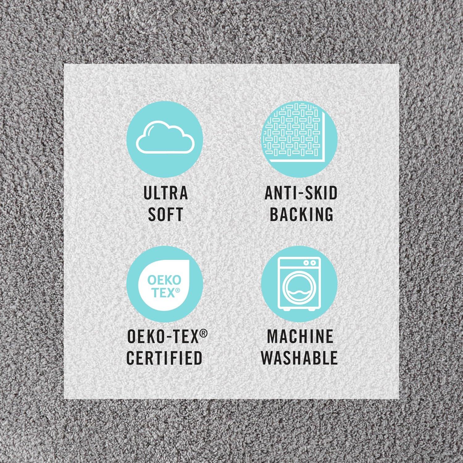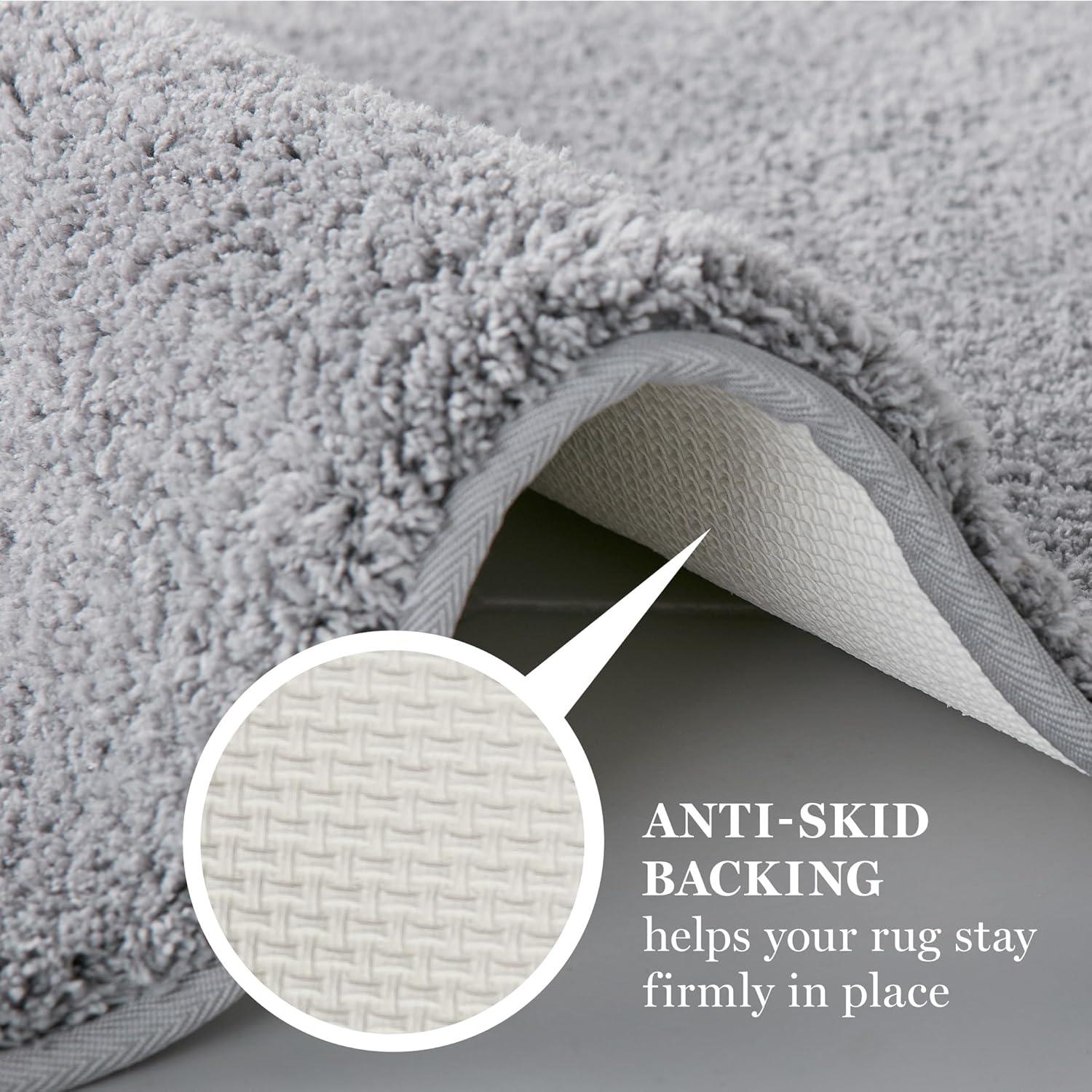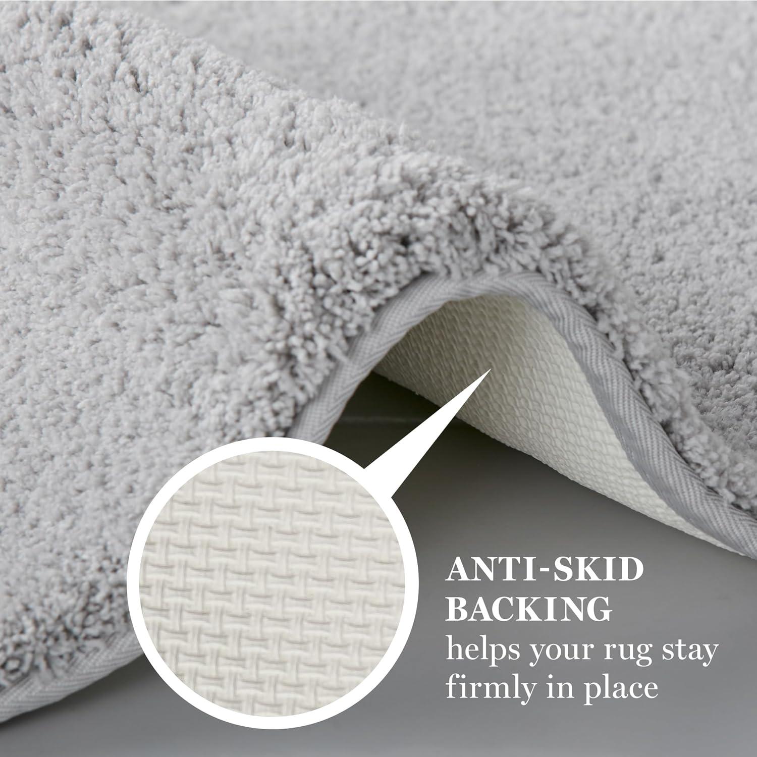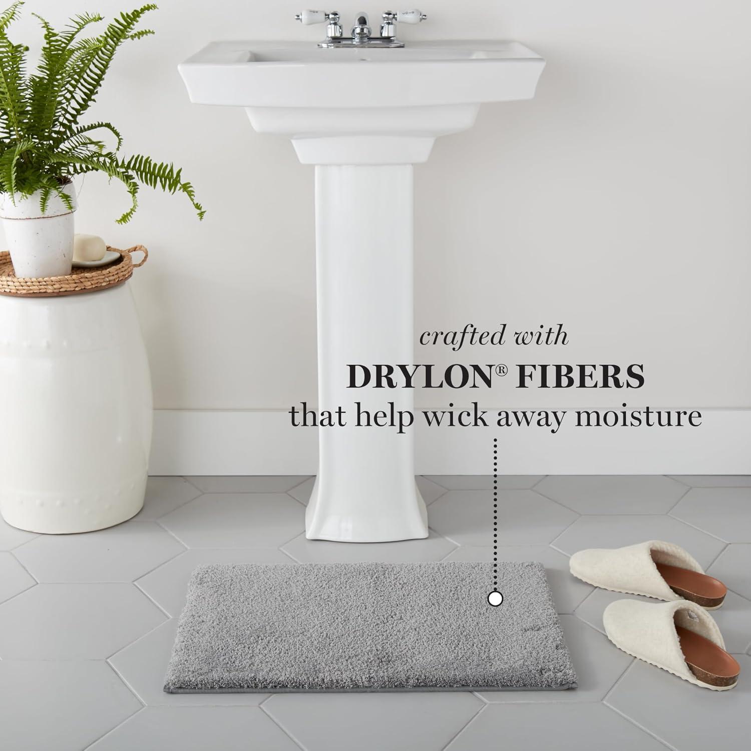 MARTHA STEWART Drylon Microfiber Bath Rug – 1 Piece, Ultra Soft Plush, Non-Slip, Thick, Washable Bathroom Rugs, Home Decor Accessories, Household Essentials, Large Bath Mat, 21″ x 34″, Navy Blue(Light Grey)