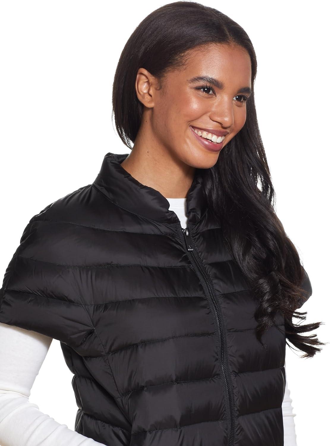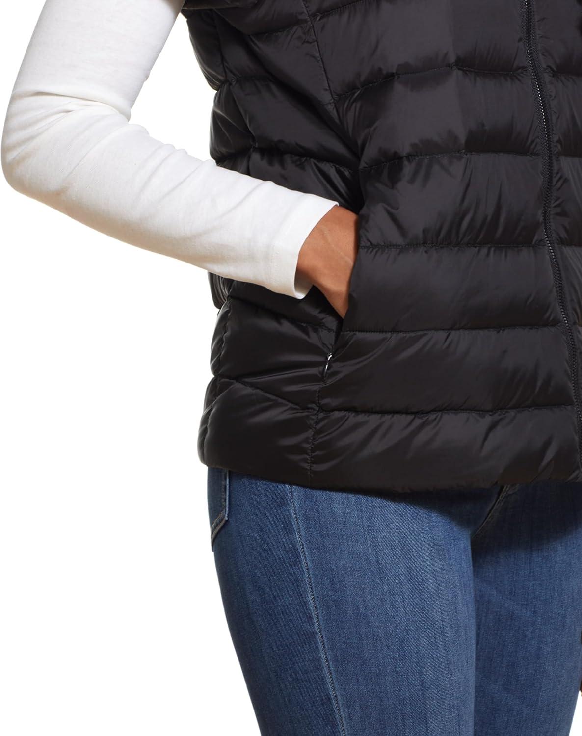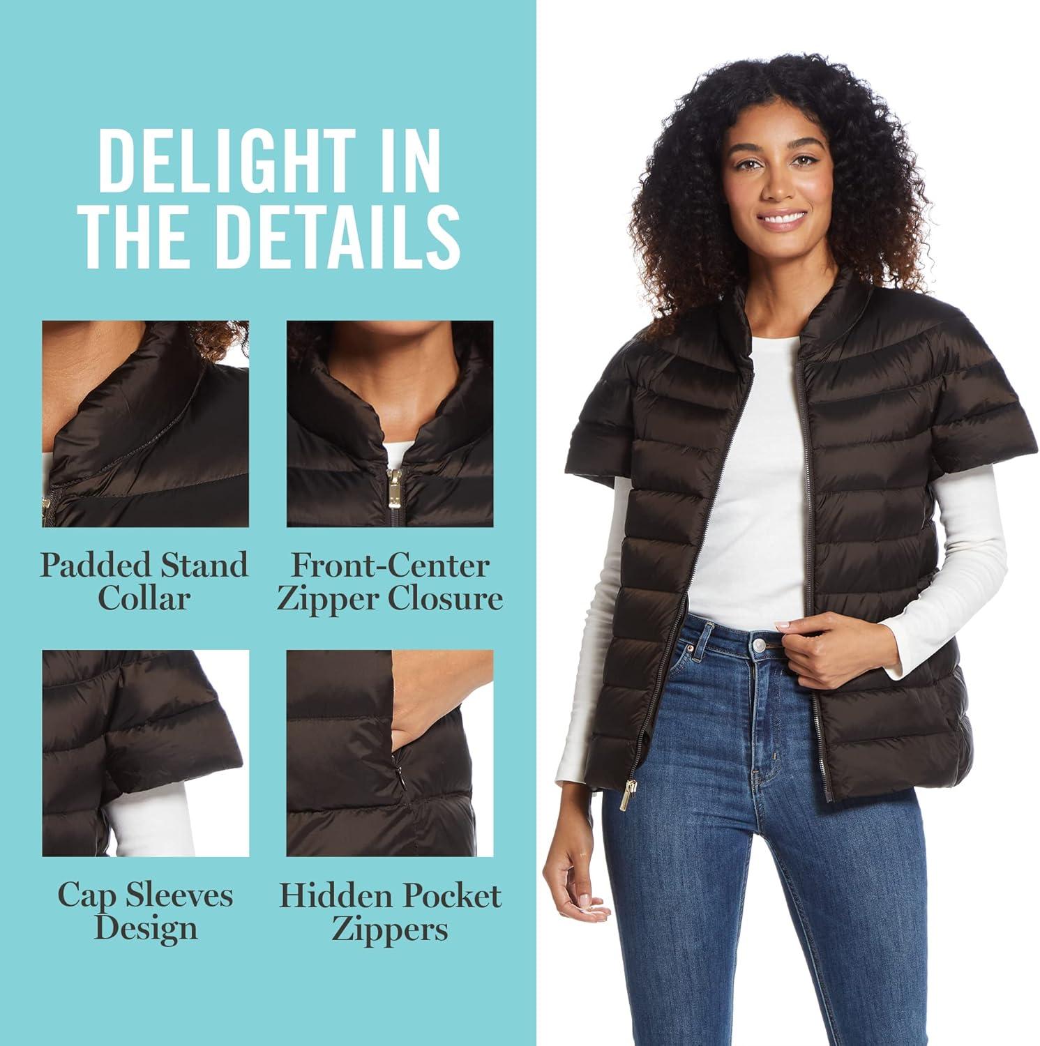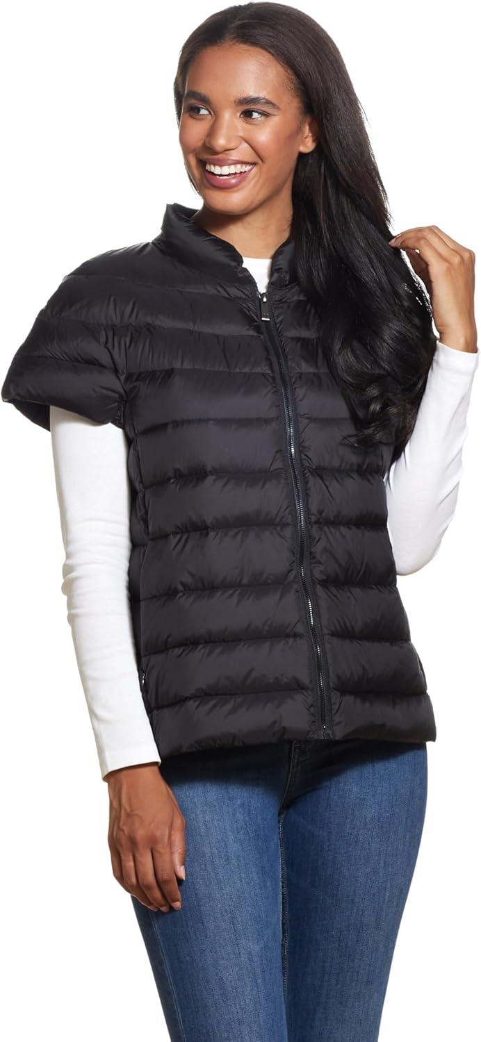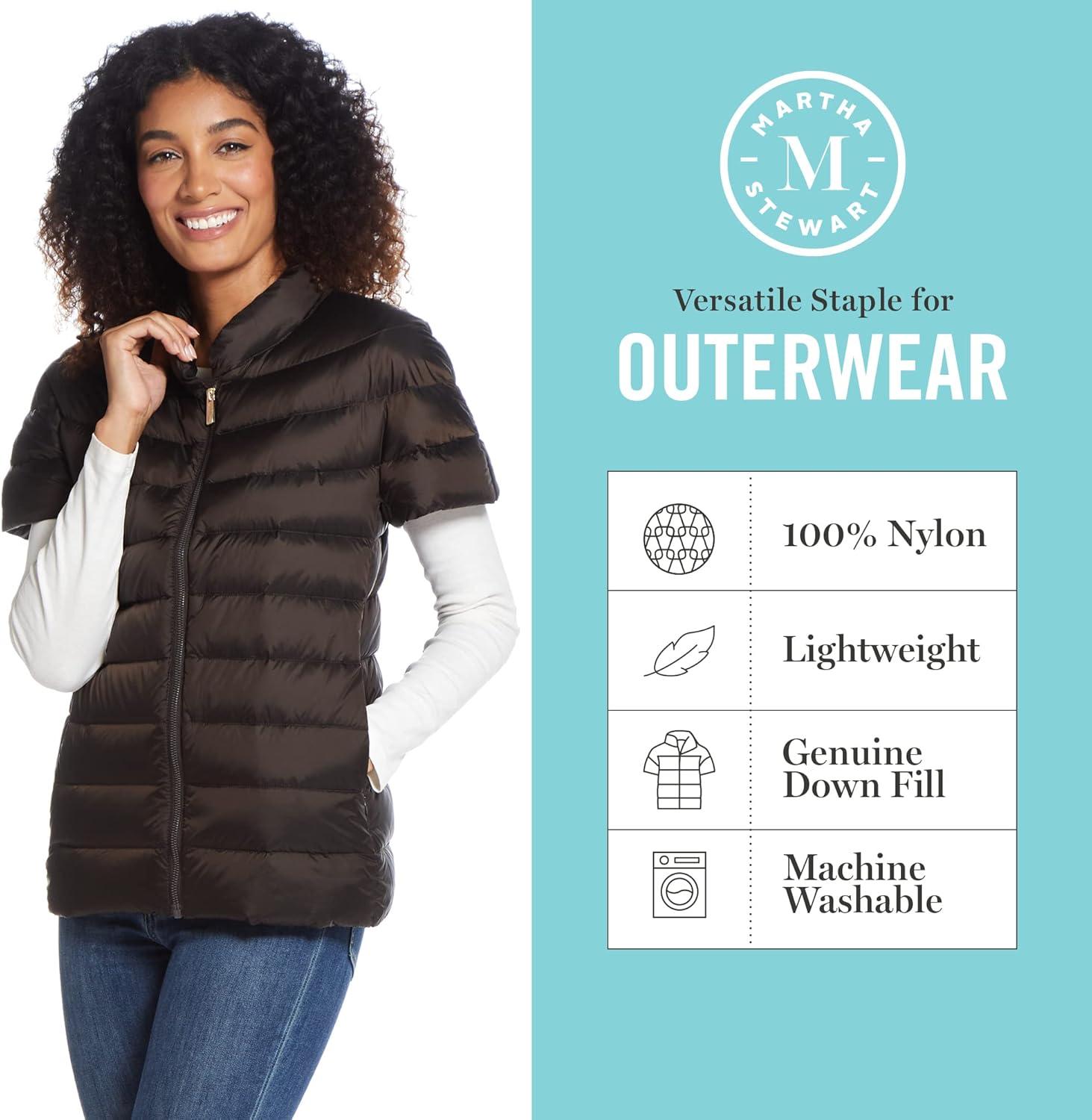 Martha Stewart Women’s Quilted Down Puffer Vest, Lightweight Short Sleeve Packable Jacket with Pockets, Warm Winter Outerwear(Black)
